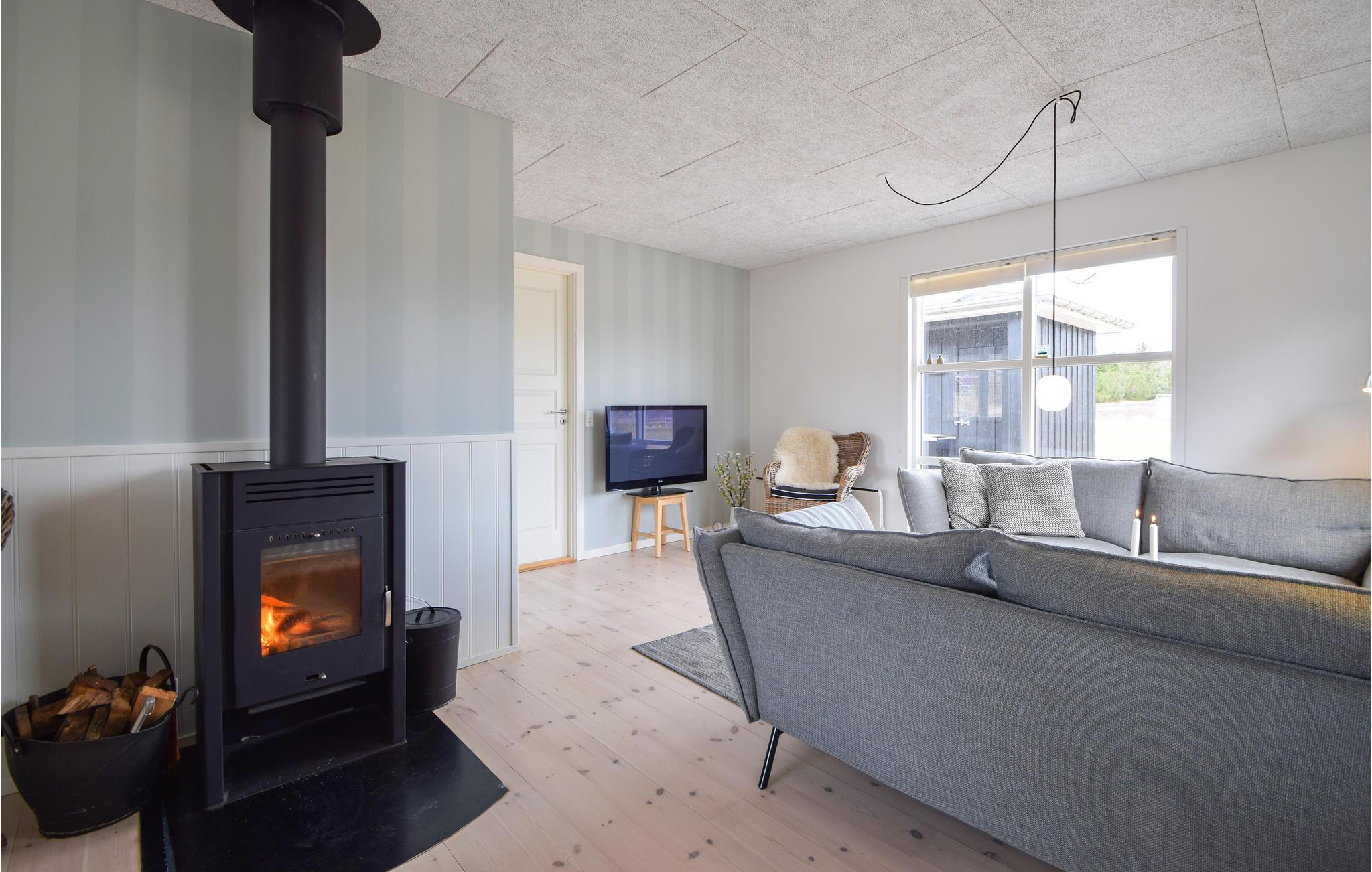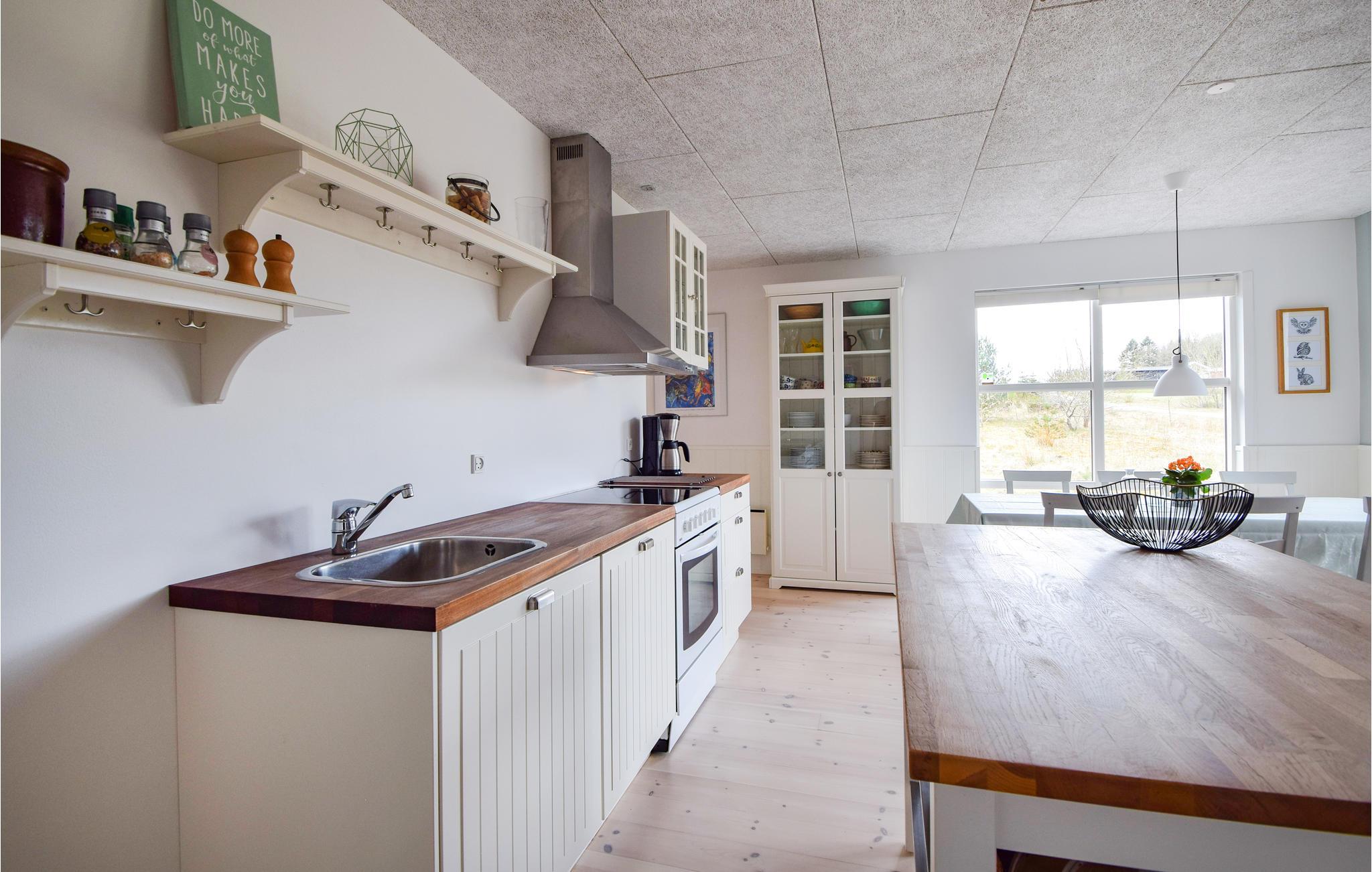 Feriehuset rummer dejligt køkken-alrum i åben forbindelse med spise afdeling i den ene ende og opholdsstue i den anden. Der er to gode badeværelser, tre dejlige soveværelser, hvoraf det ene på 22 kvm. Der er bordfodbold i rummet.