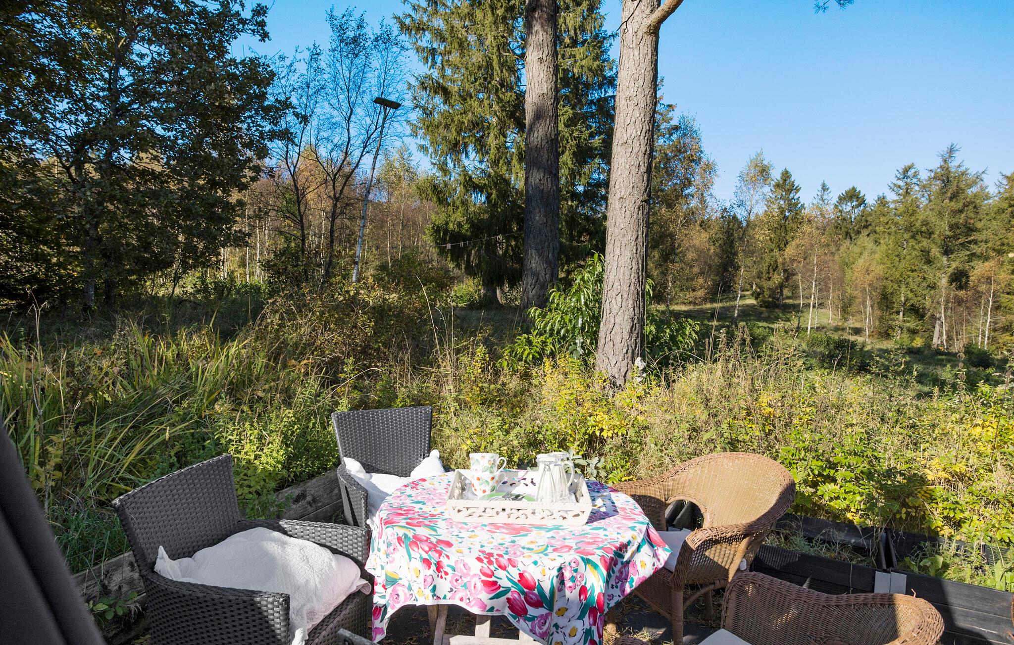 Feriehuset her har en helt unik beliggenhed midt i Jylland, med den smukkeste natur, på en meget stor naturgrund, og med naturstien Hærvejen lige uden for døren. Har I lyst til at fiske, ligger Rørbæk Sø i nærheden. Fiskeri i Rørbæk sø er kun tilladt i den ene del af søen, der kan købes fisketegn på stedet. For at komme til huset køres der ad en lang grusvej, så allerede på vejen ind til huset, sænker roen sig, og tempoet bliver lidt langsommere, som det skal være på en dejlig ferie. Selv om der er naboer og andre huse i nærheden, vil I helt ugenert kunne opholde jer både i huset og på grunden. Huset er bygget i meget rustik stil, og når I træder ind, byder huset velkommen med stor personlig stil og charme. Den dejlige, store stue med dybe lænestole og en flot udsigt til landskabet giver mulighed for familiehygge. Der er en havestue med hyggelige små sprossede vinduer, hvor I kan nyde udsigten, fordybe jer i læsning eller spille brætspil. Køkkenet er opdelt i to afdelinger, en til madlavning og en til opvask. Det ene soveværelse er meget stort, og der er nemt plads til en barneseng til de små. I er meget velkomne til at medbringe husdyr, dog skal alle hunde være i snor udendørs. Der er meget vildt i området, og er I heldige, kan et rådyr hilse på. Husets badeværelse er indrettet i gammel stil, der passer til huset. Inden for kort køreafstand fra huset ligger Vejle med både kulturtilbud, restauranter og shoppingmuligheder. Der er ikke langt til Legoland, og hvis der er børn med på ferie, kan den attraktion absolut anbefales.