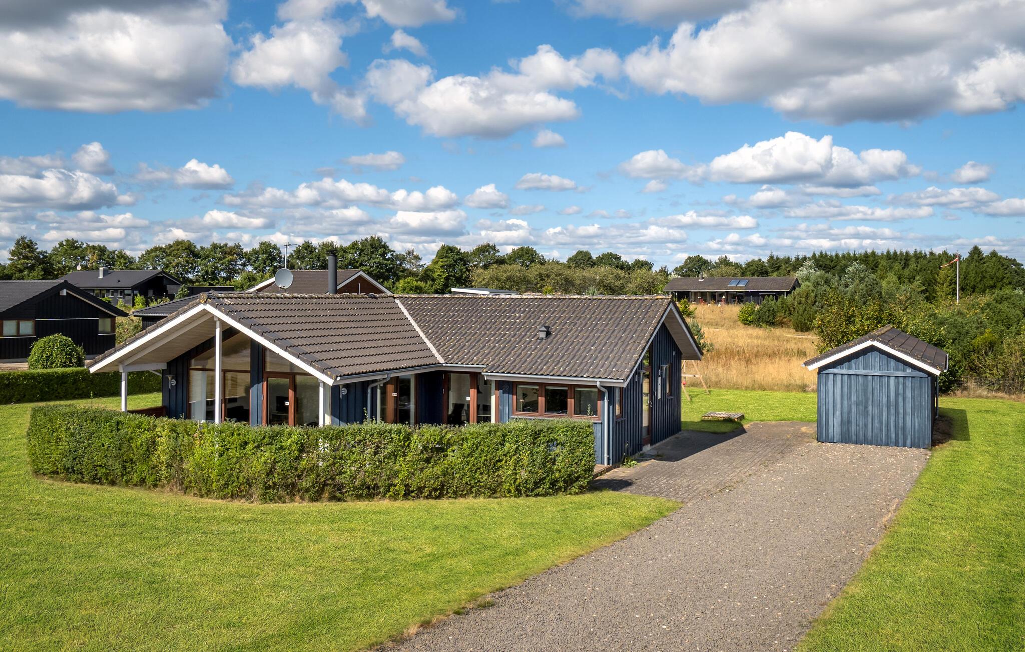 Flot feriehus ved Rørbæk Sø med sauna, stor terrasse og moderne komfort i naturskønne omgivelser.