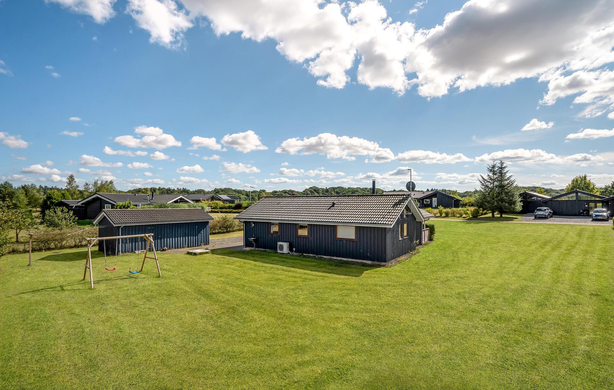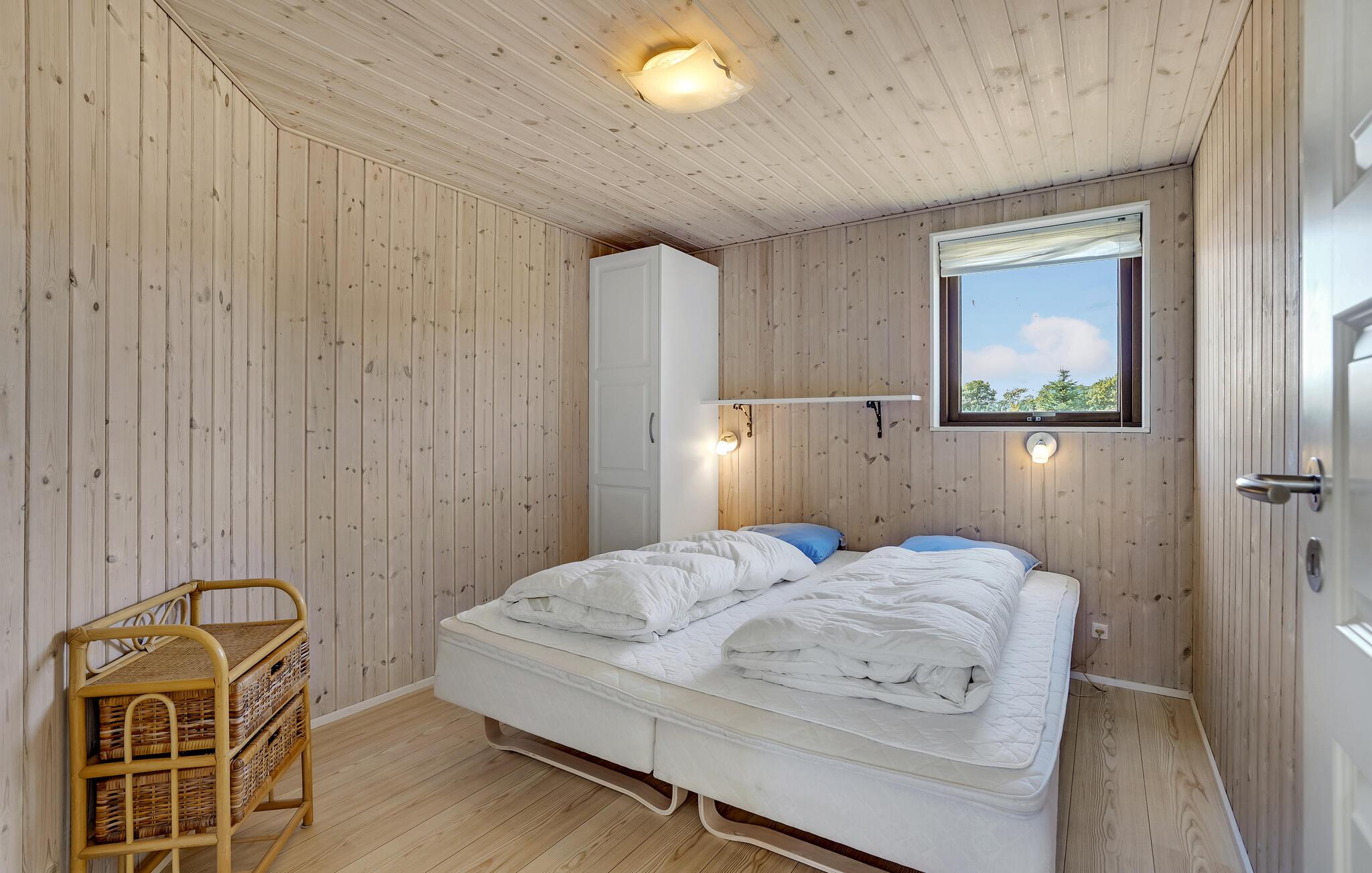 I et naturskønt område ved Rørbæk Sø ligger dette flotte feriehus. Huset er indrettet med moderne og komfortable møbler. Her er sauna, og hvis I kommer uden for sommerperioden, er det herligt at kunne få varmen her efter en frisk gåtur. Huset er rummeligt, og den store terrasse indbyder til hygge med god mad og hyggeligt selskab. Her er mange muligheder, hvis I har lyst til at fiske eller tage på udflugter, og ikke mindst naturen i området er betagende. Fiskeri i Rørbæk Sø er kun tilladt i den ene del af søen, fiskekort kan købes på stedet. I søen findes bl.a. gedde, brasen og de mest almindelige ferskvandsfisk. Rørbæk Sø er omgivet af fredede skove og bløde bakker, hvor I kan dyrke friluftslivet fuldt ud.