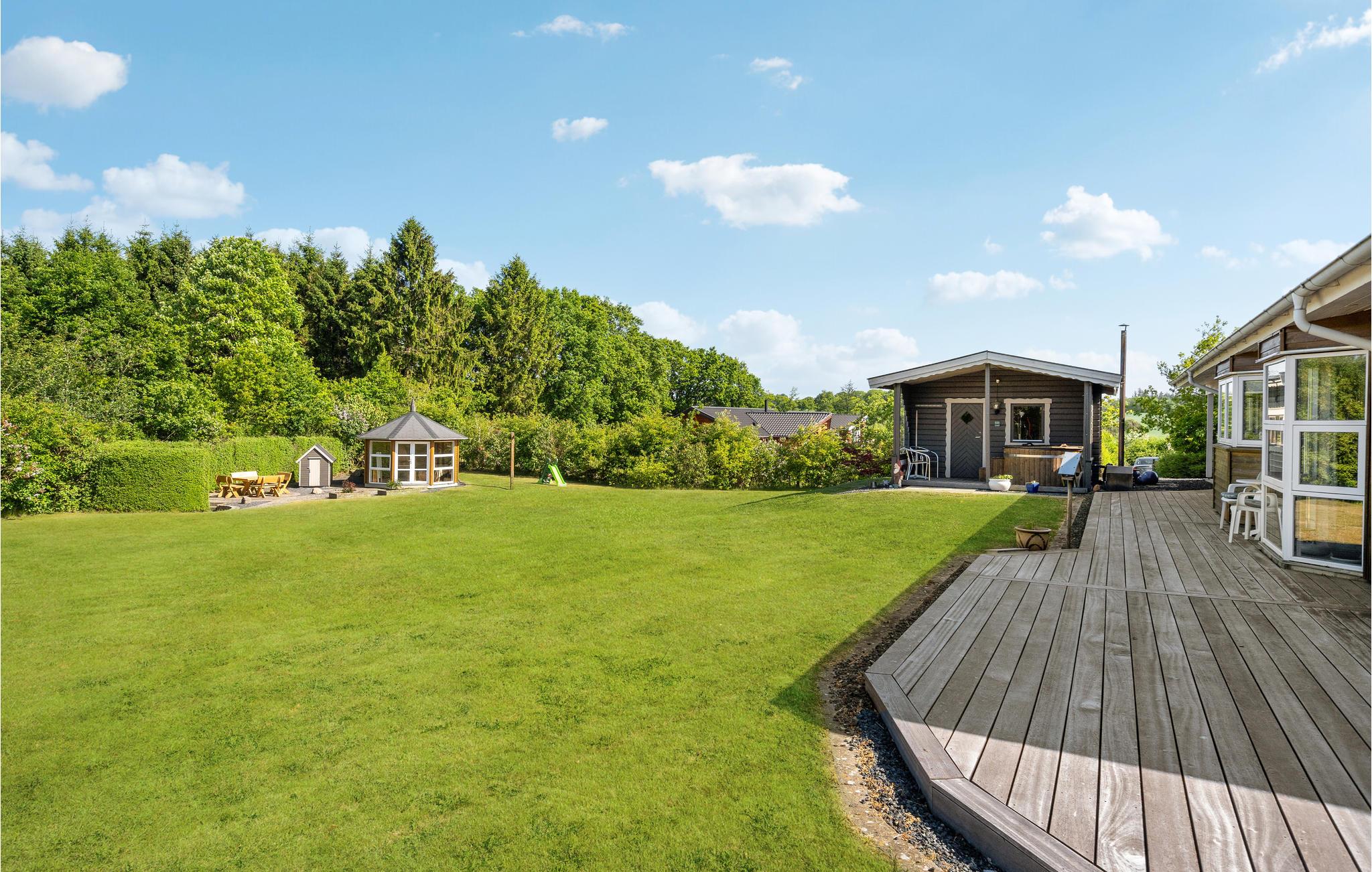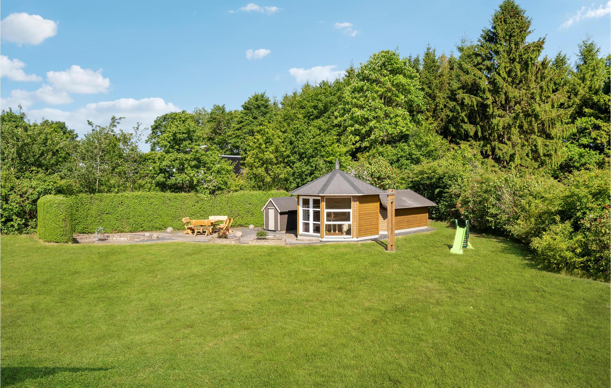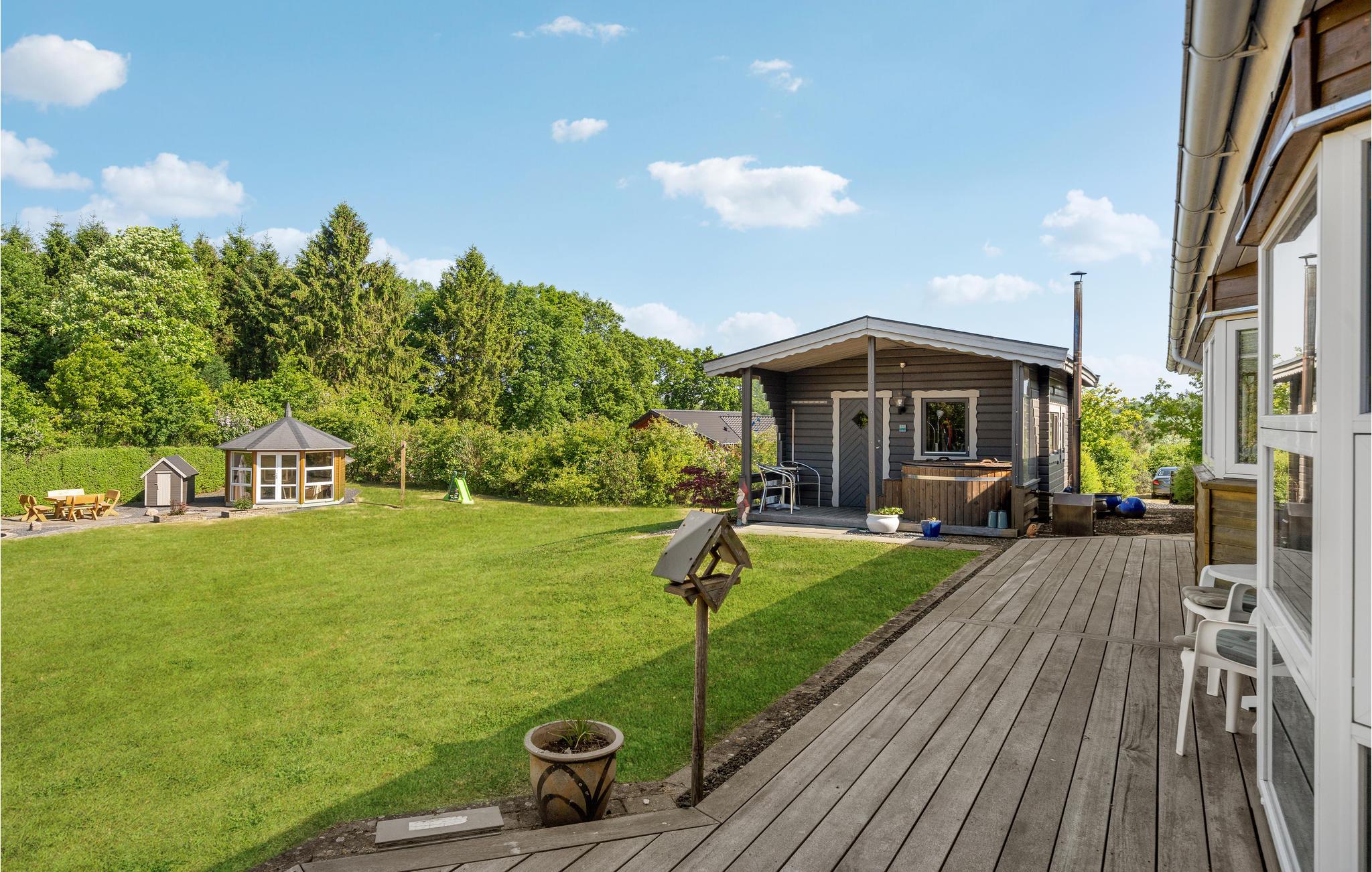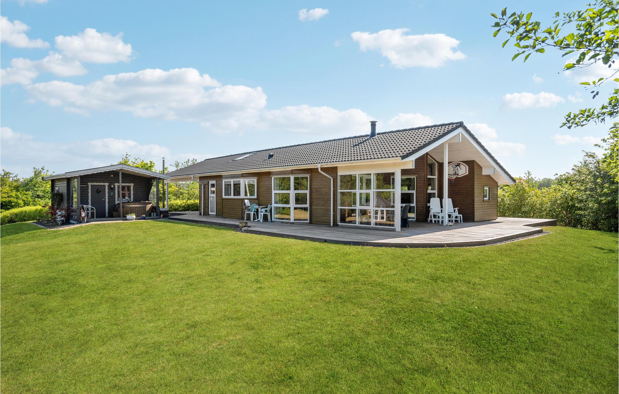 Her kan I nyde livet i fulde drag sammen med jeres børn, og der er masser af plads til leg på husets lille bakketop. Det familievenlige hus er veludstyret og byder på en dejlig træterrasse og en skøn have. Den lyse, smagfulde, åbne planløsning med klinkegulv, loft til kip og store vinduer indgyder hygge og en rolig atmosfære. Glæd jer til aftener med gæt og grimasser og spillehygge ved spisebordet. Nyd solen i græsset med kig til drivende lammeskyer, mens børnene leger i den flotte have med mange gode gemmesteder. Nyd jeres måltider udenfor og mærk, hvordan skuldrene kommer ned. Måske står den på BBQ med efterfølgende koldskål i aften? Senere på aftenen kan de voksne forkæle sig selv med wellness i saunaen og i vildmarksbadet. Slut aftenen af med et glas rosé i havens pavillon.