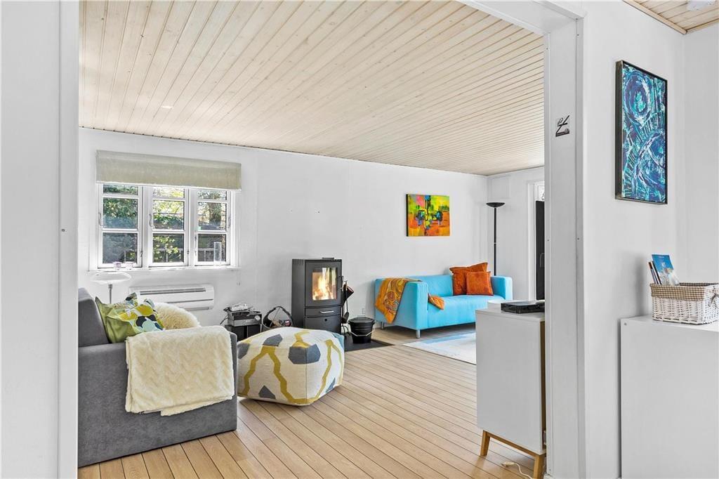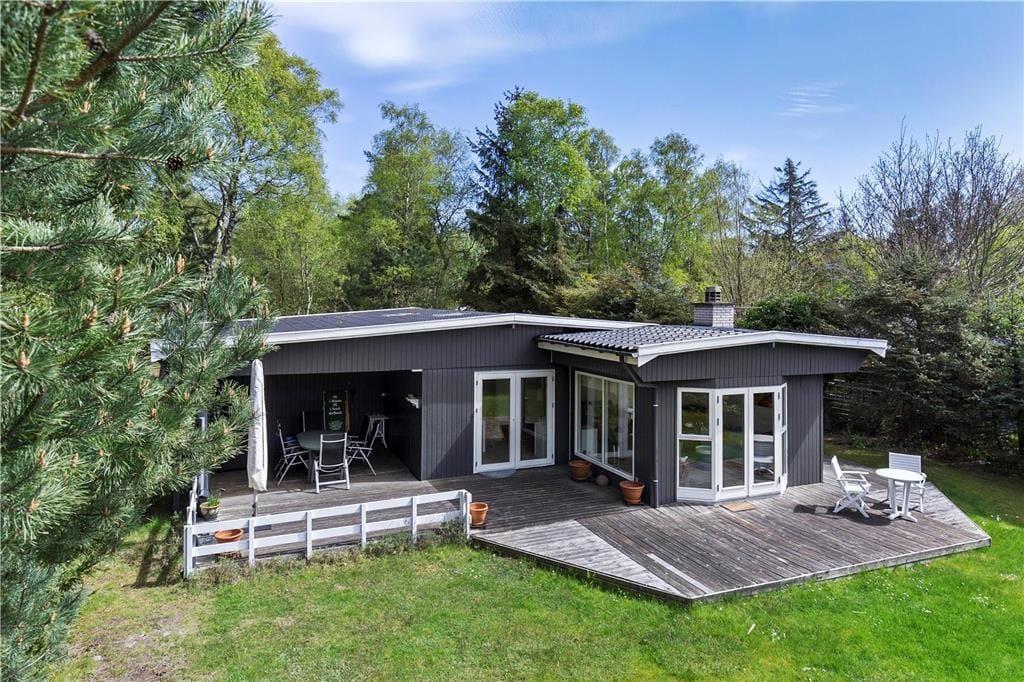 Dette dejlige sommerhus indbyder til aktiviteter og afslapning i rolige omgivelser. Attraktiv beliggenhed kun 5. min. fra en af områdets bedste sandstrande.