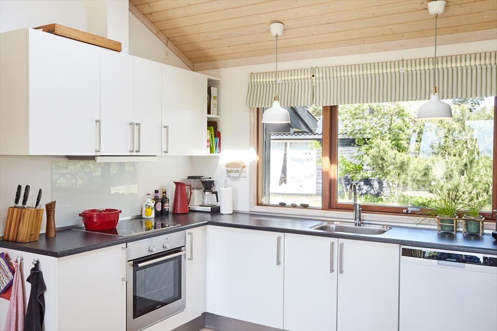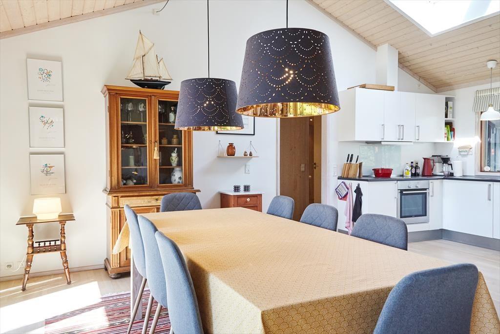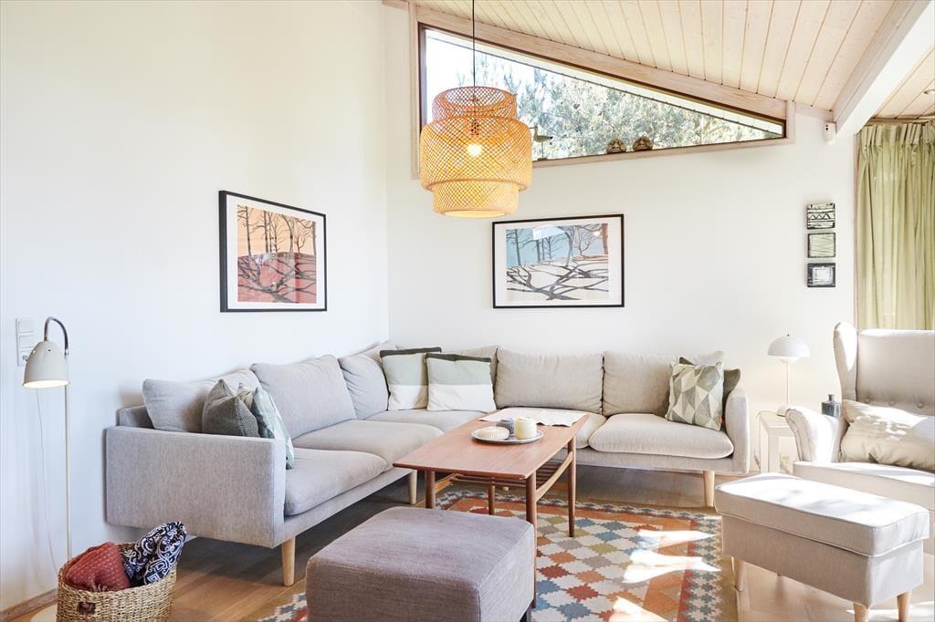 Når du træder ind i sommerhuset, vil du med det samme fornemme stemningen af god kvalitet, kombineret med den skønne afslappede atmosfære. Du vil hurtigt komme ned i gear og mærke at det endelig er ferietid. I har her plads til nærvær og afslapning med hinanden. Den skønne stue i forbindelse med det åbne køkken er rammen om hyggelige samtaler over frokosten eller fantastiske aftener i brændeovnens skær, med udsigt til havet. Hvis du vil forkæle din ven eller partner, så tænd et par stearinlys og åben en flaske bobler, mens du fylder vand i spabadet, så det er klar til brug.