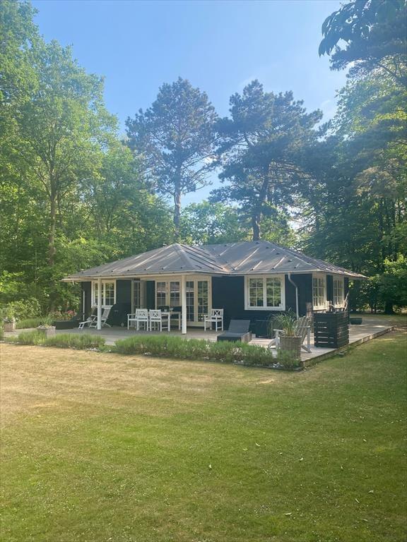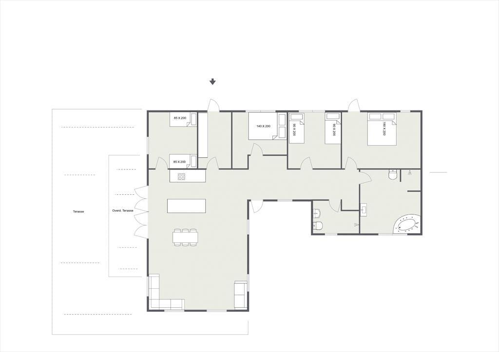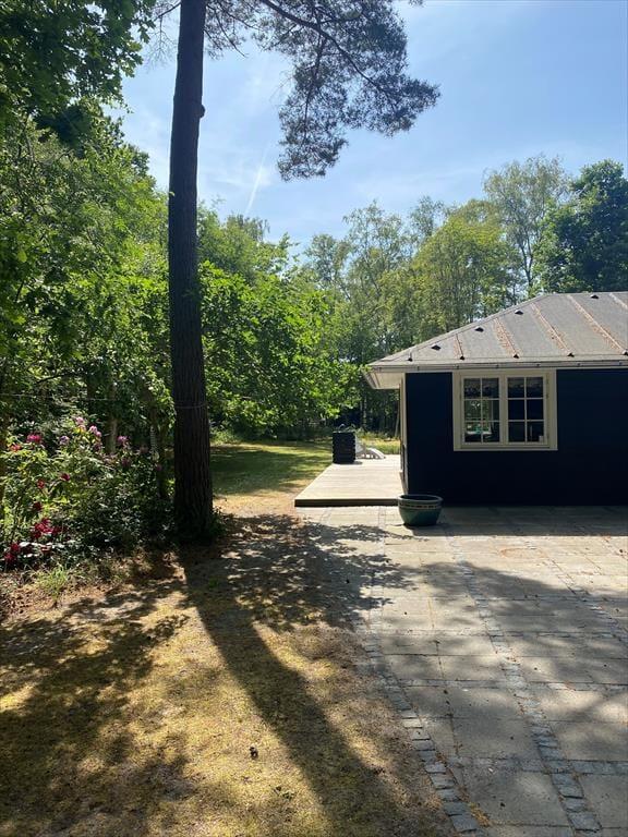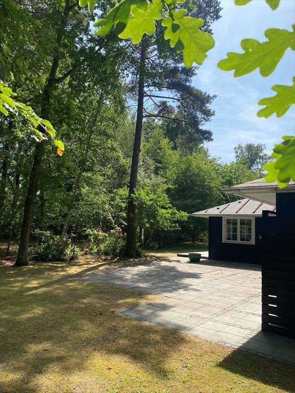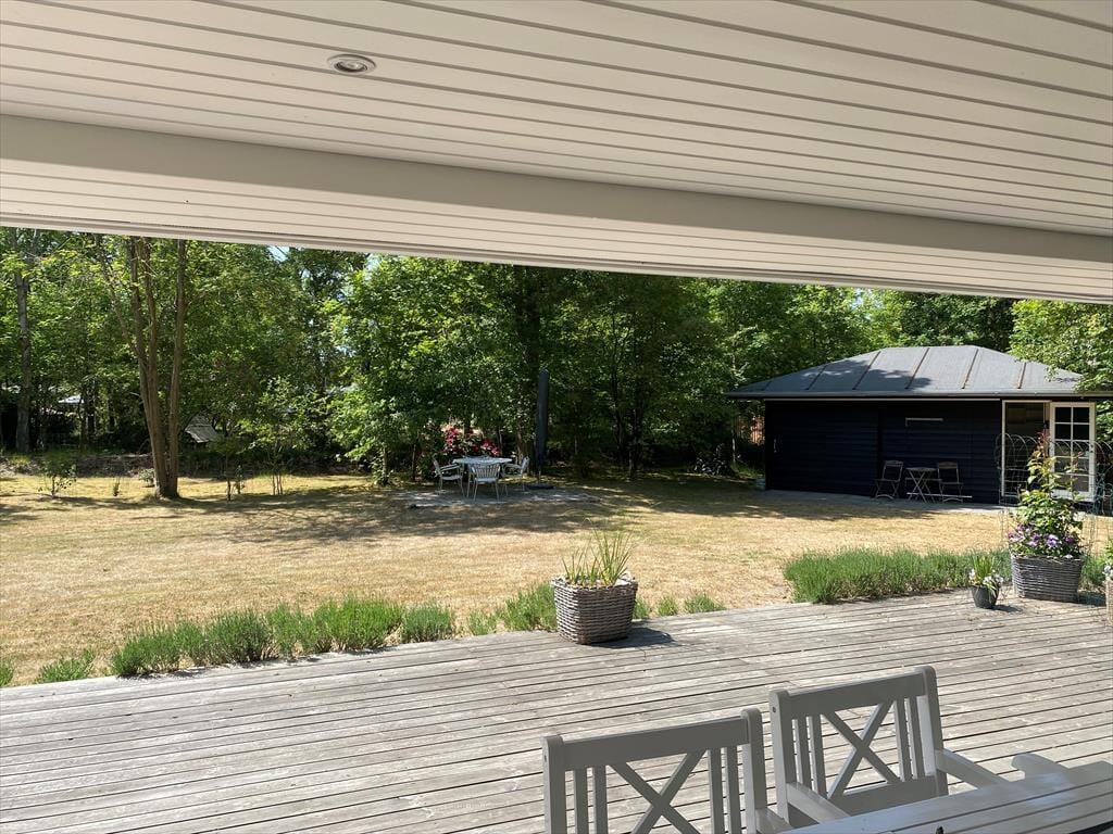 Husk at benytte husets helt ekstraordinære skønne terrasse, der også indeholder udekøkken, på terrassen er der mulighed for at du kan nyde solen fra morgen til aften og betragte et rådyr der går forbi. Stor dejlig grund, med mulighed for både boldspil og leg. Efter en dejlig dag på sandstranden kan du bruse dig under den udvendige bruser.