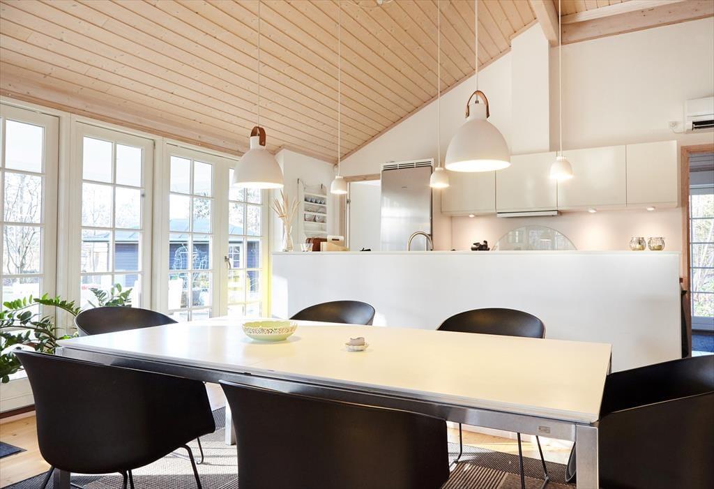 Sommerhuset er indrettet med et dejligt åbent køkken. Skøn stue med fantastisk lysindfald og kombineret spise -og opholdsafdeling, her kan I spille et slag kort eller du kan fordybe dig i en god bog. Der tilhører to skønne badeværelser, det største med spabad. Der er hele fire dejlige soveværelser, bl.a. et skønt master bedroom. Alt i huset fremstår lyst og meget lækkert.