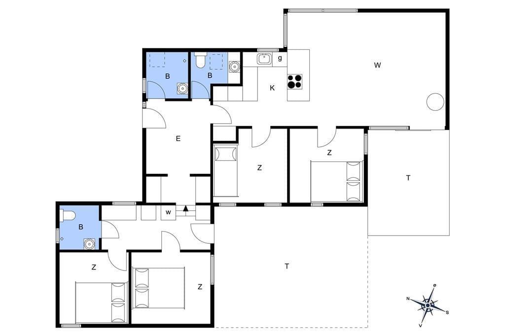 Det lyse og rummelige sommerhus har plads til den store familie eller flere familier, og der er gode soveværelser med plads til alle. Stuen med det åbne køkken er det naturlige samlingspunkt. Her kan I sidde ved spisebordet og spille kort eller brætspil eller ved sofabordet og hygge sammen og samtale, mens brændeovnen giver varmen på en kold dag. Du kan også læse en god bog fra reolen i stuen eller låne en fra det lille lokale bibliotek i Rørvig.