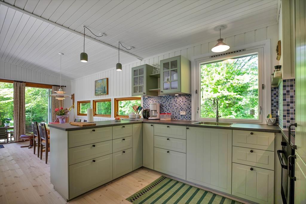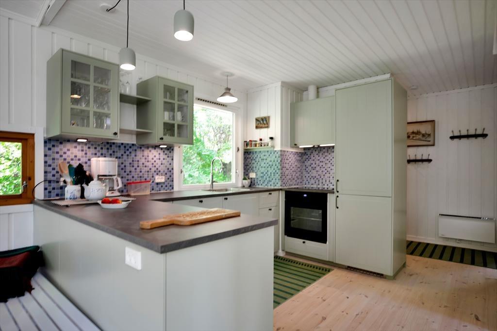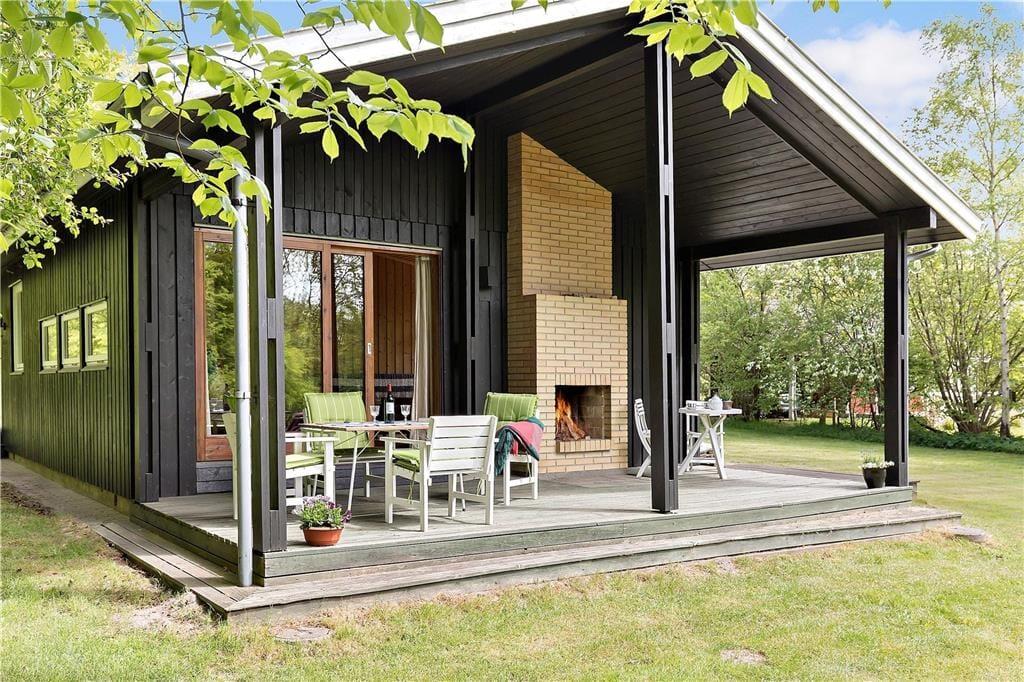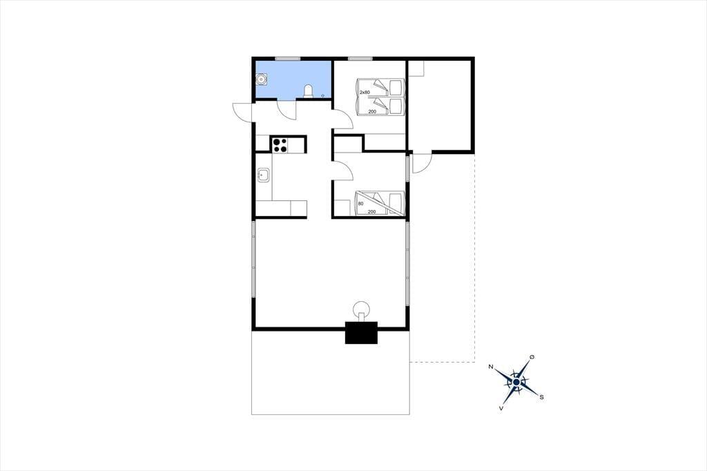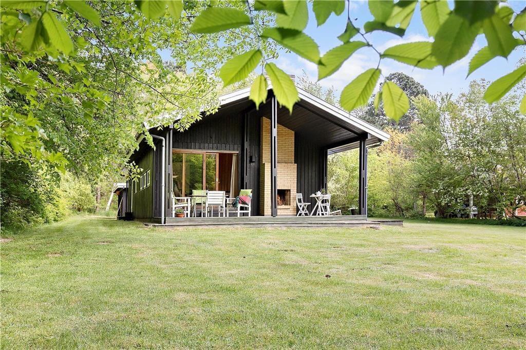 Huset indeholder hyggelig stue med sovesofa brændeovn samt spiseplads. Derudover er der åbent køkken og 2 soveværelser med henholdsvis dobbeltseng og køjeseng. Badeværelse med brus. Fra stuen er der udgang til den overdækkede terrasse med åben pejs hvor du kan nyde din grillede fisk og et glas koldt hvidvin samt udsigten til haven hvor rådyrene krydser jævnligt.