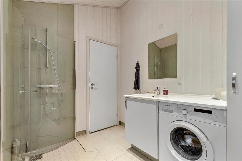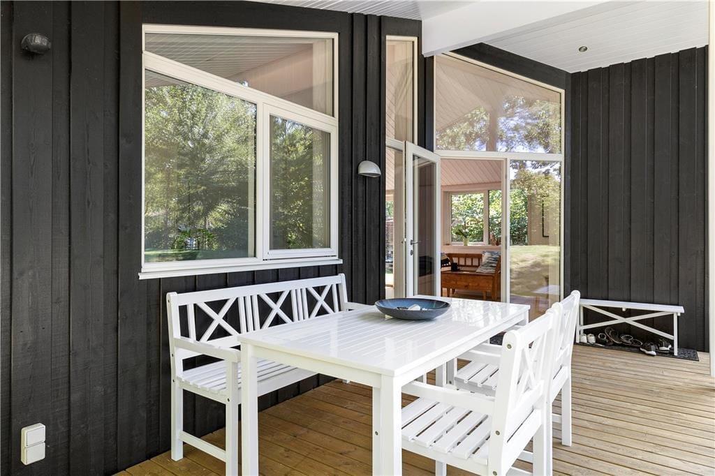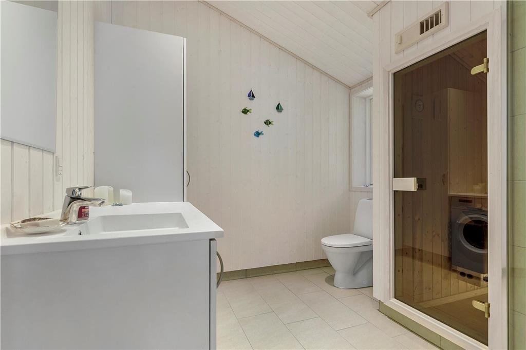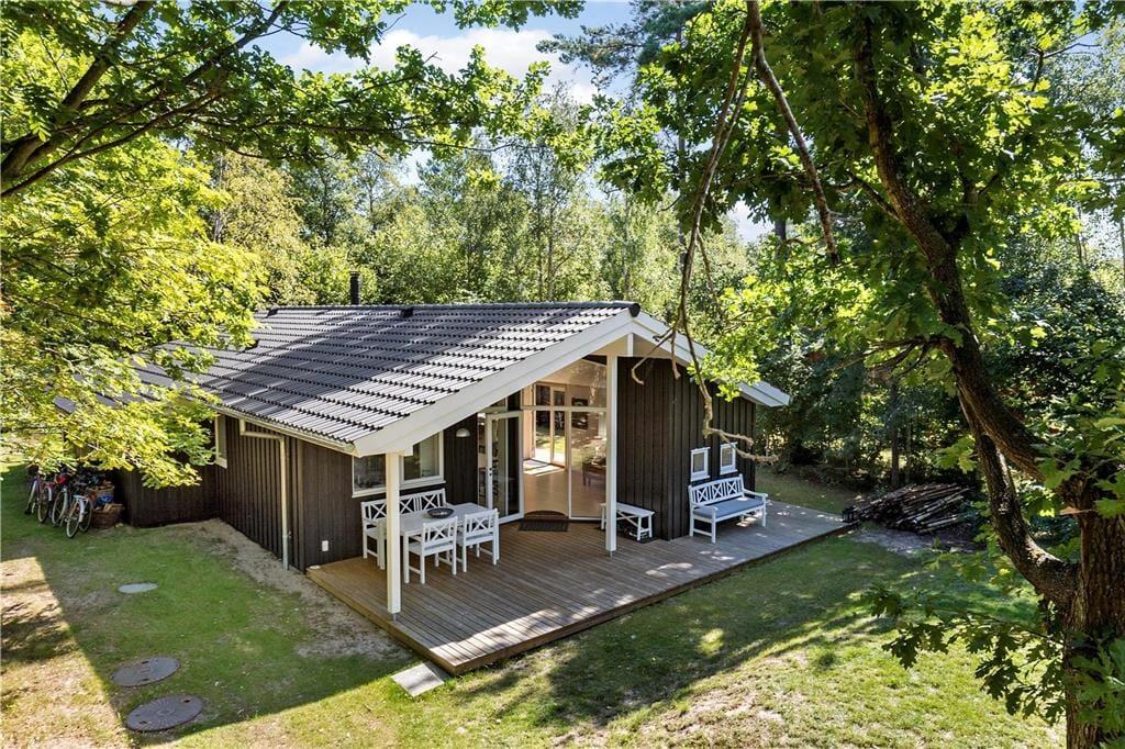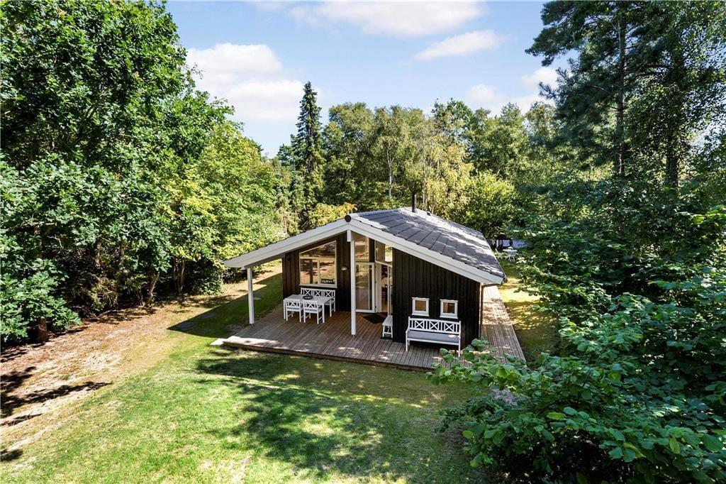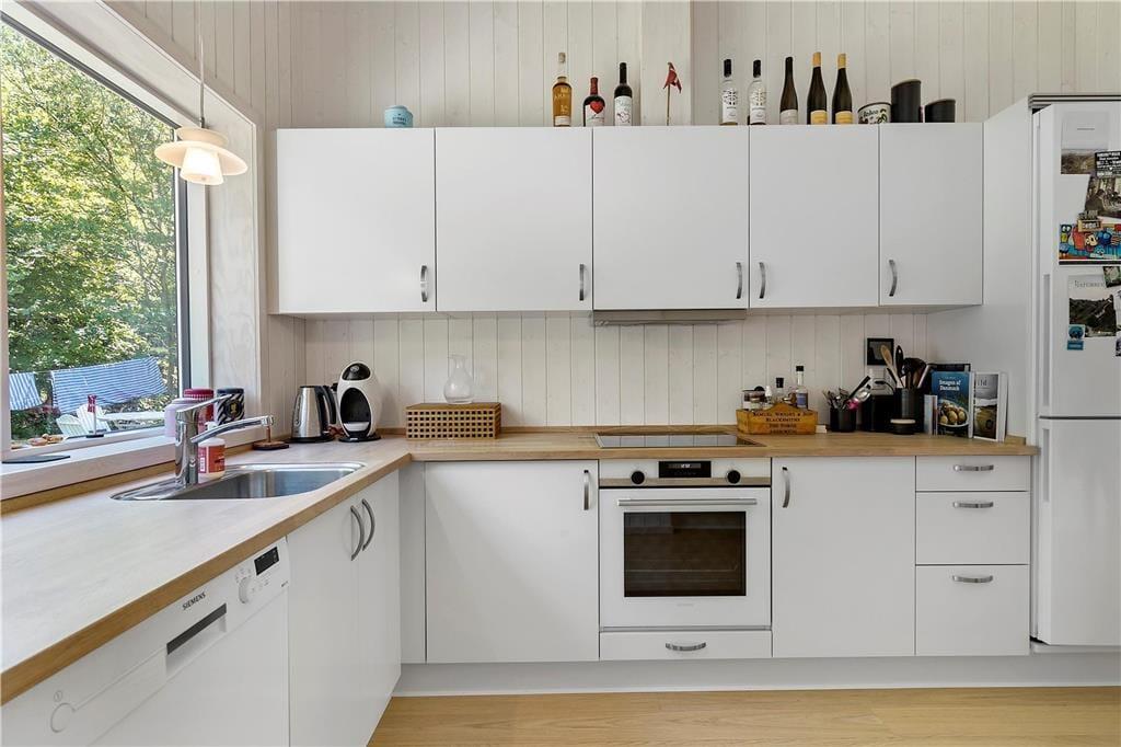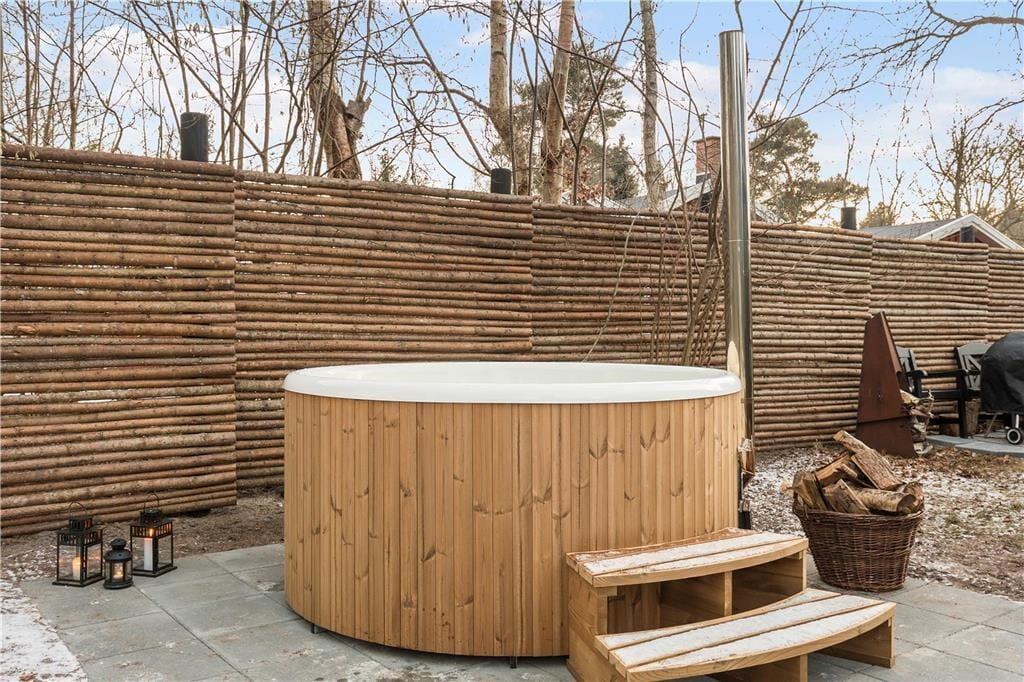 Moderne hus med 4 gode soveværelser, hvoraf de 3 har dobbeltsenge og det ene en enkeltseng. Huset er smagfuldt indrettet. Stuen indeholder brændeovn, varmepumpe, TV samt alkove med seng og har udsigt og udgang til den forreste terrasse. Det åbne og lyse køkken har opvaskemaskine og udgang til bagvendt terrasse. Der er badeværelse med brus samt lækker sauna, hvorfor også de kolde vinteraftener kan nydes i dette pragtfulde hus. Udendørsbruseren er med varmt vand og kun åben i sommerperioden fra maj-oktober. På den omgivende træterrasse kan I nyde solen dagen lang og i den ugenerte have krydser rådyrene jævnligt. Det dejlige vildmarksbad med plads til 5-7 personer, gør huset oplagt til ferier året rundt. Forestil dig at sidde midt i naturen en vinteraften og nyde det varme vand og et glas vin.