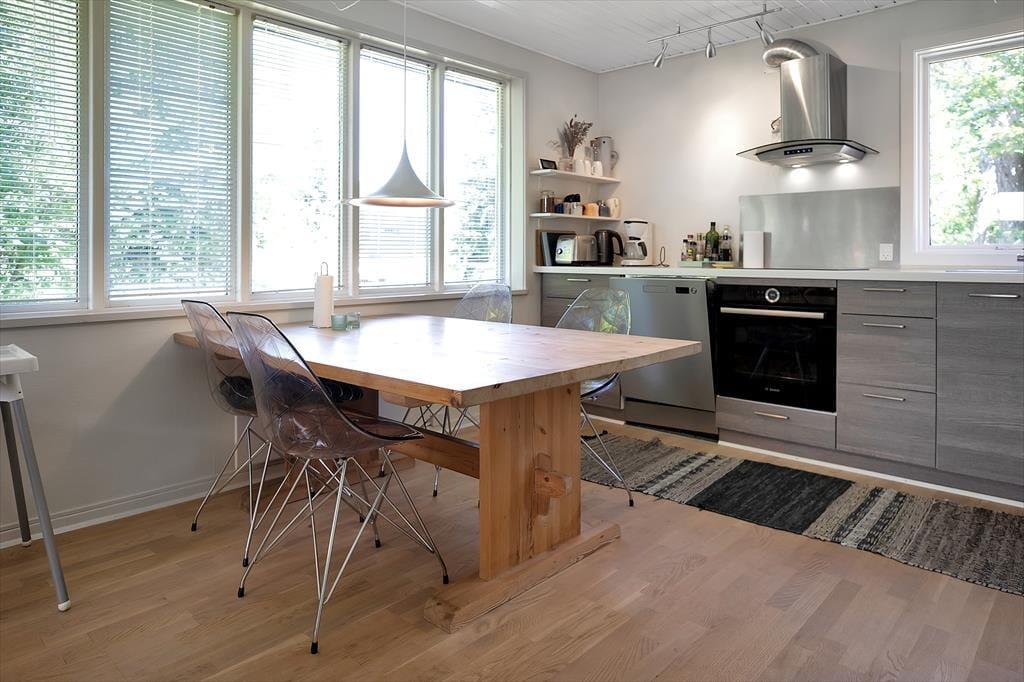 Huset indeholder en dejlig stue, hvor du både kan fordybe dig i en god bog eller nyde en god kaffe. I forbindelse med stuen er der et fint køkken bl.a. med opvaskemaskine. Der er 3 gode soveværelser og et dejligt badeværelse med brus. Fra stuen er der udgang til en solrig terrasse med markise, opdelt i flere afdelinger, så her er alle muligheder for at nyde solen fra morgen til aften. Din hund er også velkommen her.