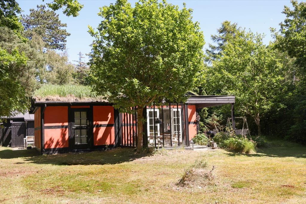 Af de tre terrasser, er den ene overdækket og der er både liggestole, bål fad og gynge i haven. Alt i alt et rigtigt bohemehus, der indbyder til hygge og afslapning i originalt miljø. Husk også at benytte husets udebruser efter en dejlig dag på stranden.