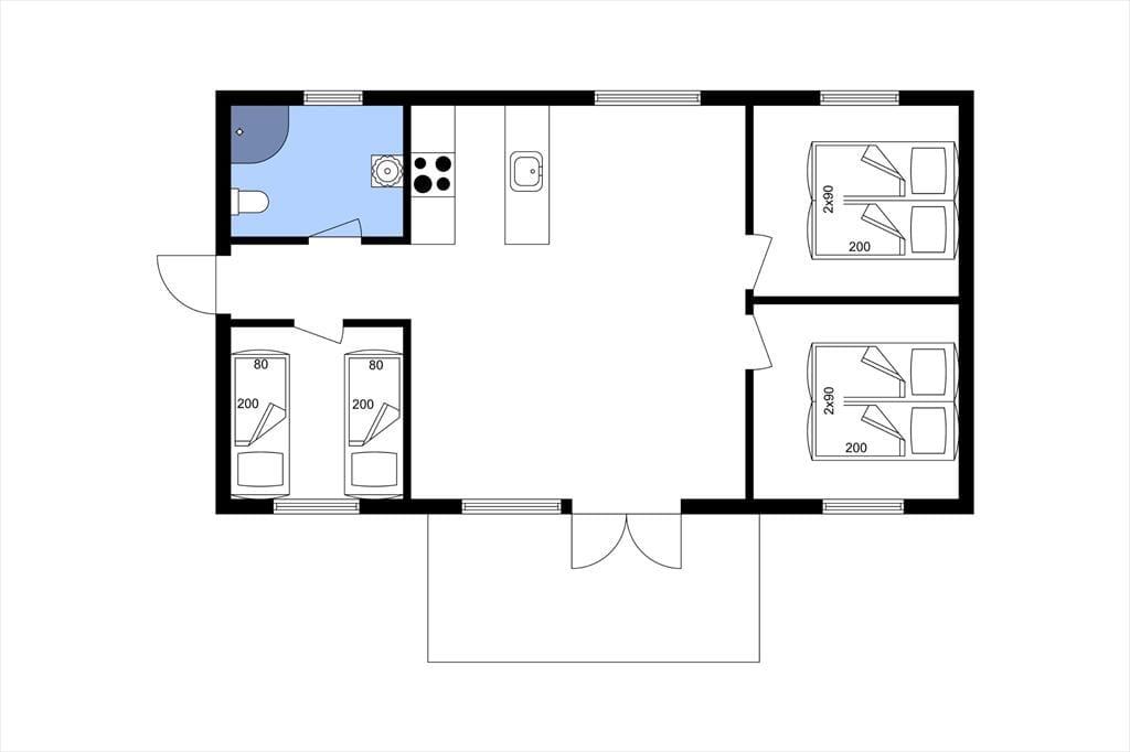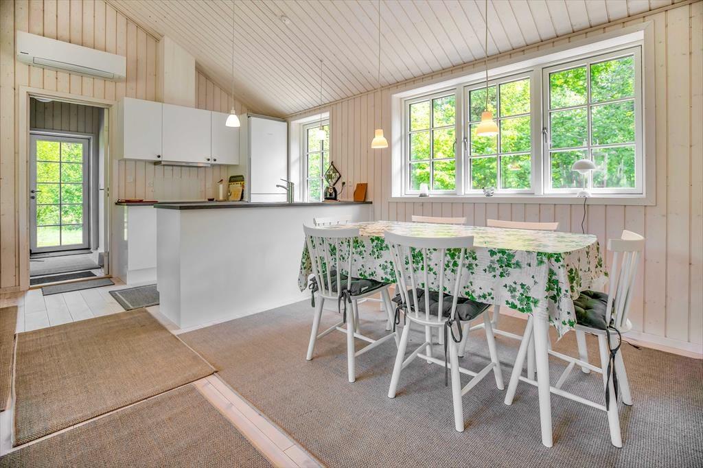 Sommerhuset er indrettet med dejligt åbent køkken. Stuen er både flot meget lys og rummelig med loft til kip, perfekt til hyggelige stunder. Der er et fint badeværelse med brus samt tre skønne soveværelser.
