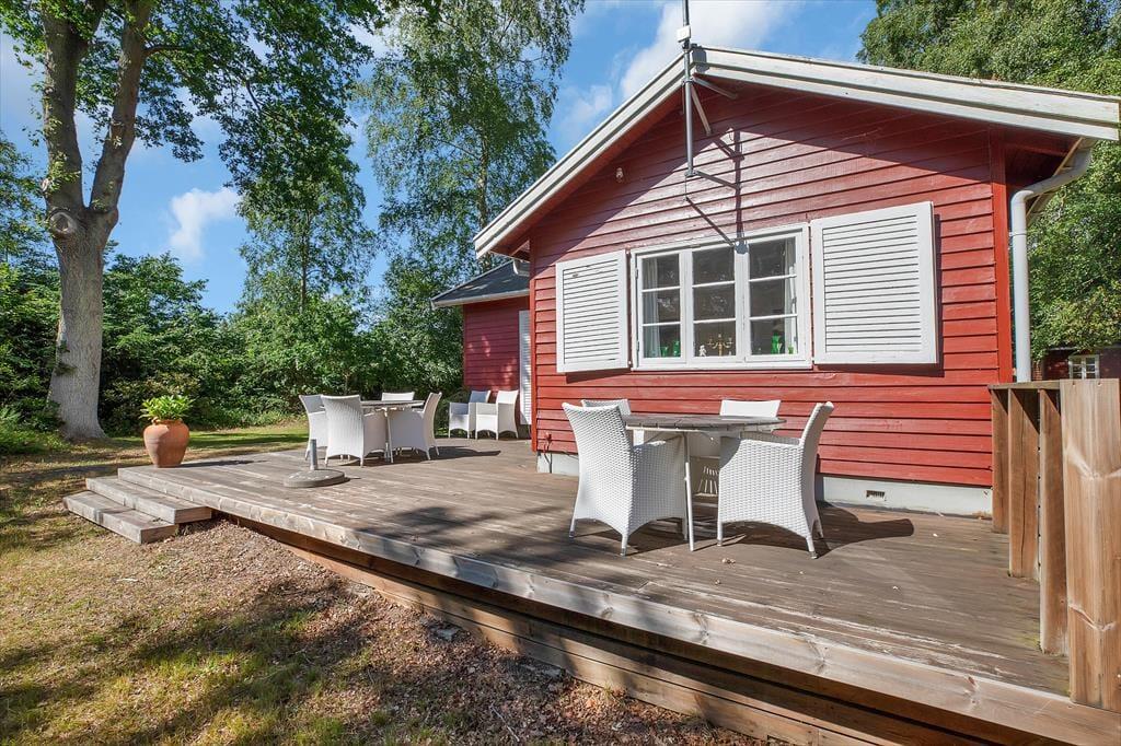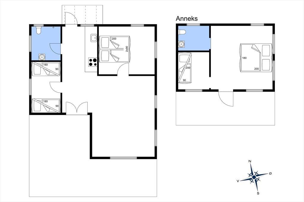 Dejlig stue med dansk TV (samt 1 svensk, 1 norsk og 1 tysk kanal) og hyggelig bænkeplads, her er der plads nok til at alle kan samles og få et spil kort eller en kaffelatte. To soveværelser, køkken og dejligt badeværelse. I det tilhørende anneks, hvor der er mulighed for at se DVD og TV er der også to soveværelser samt gæstetoilet. Fra både stuen, køkkenet og annekset, er der adgang til dejlige terrasser, her kan du dase eller fordybe dig i en god bog mens børnene leger i haven. Der er både udekøkken og udebruser til rådighed. Ønsker du at benytte vildmarksspa, gasgrill og terrassevarmer, skal du selv købe/medbringe gas.