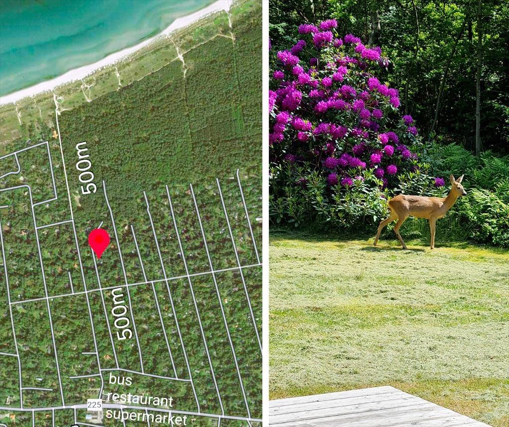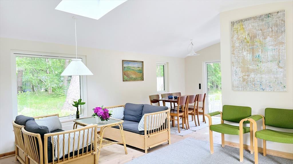 Beliggende kun 300 meter fra stranden tilbyder dette hus et fredeligt tilflugtssted, omgivet af skov med en stor privat have. Den ideelle placering sikrer ro og privatliv, mens alle nødvendige faciliteter er lige i nærheden.