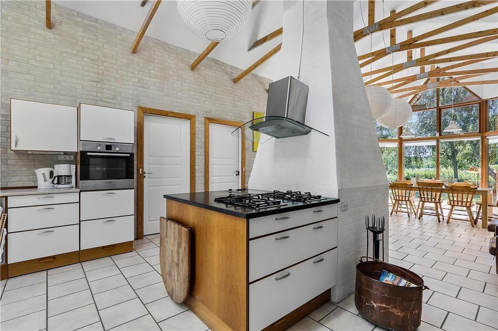 I den store stue med højt til loftet og store vinduespartier mod syd føler du dig nærmest i et med udelivet og naturen. Det åbne køkken er nærmest et kapitel for sig selv med både gaskomfur og lavastens-elgrill og amerikanerkøleskab, så her kan I tilbringe mange timer med kogekunstens glæder. De brede døre med niveaufri adgang er et ekstra plus, hvis du har barnevogn, er kørestolsbruger eller har gangstativ. Udstyret med både brændeovn, solvarme og jordvarme er opvarmningsudgifterne begrænset i vintermånederne.