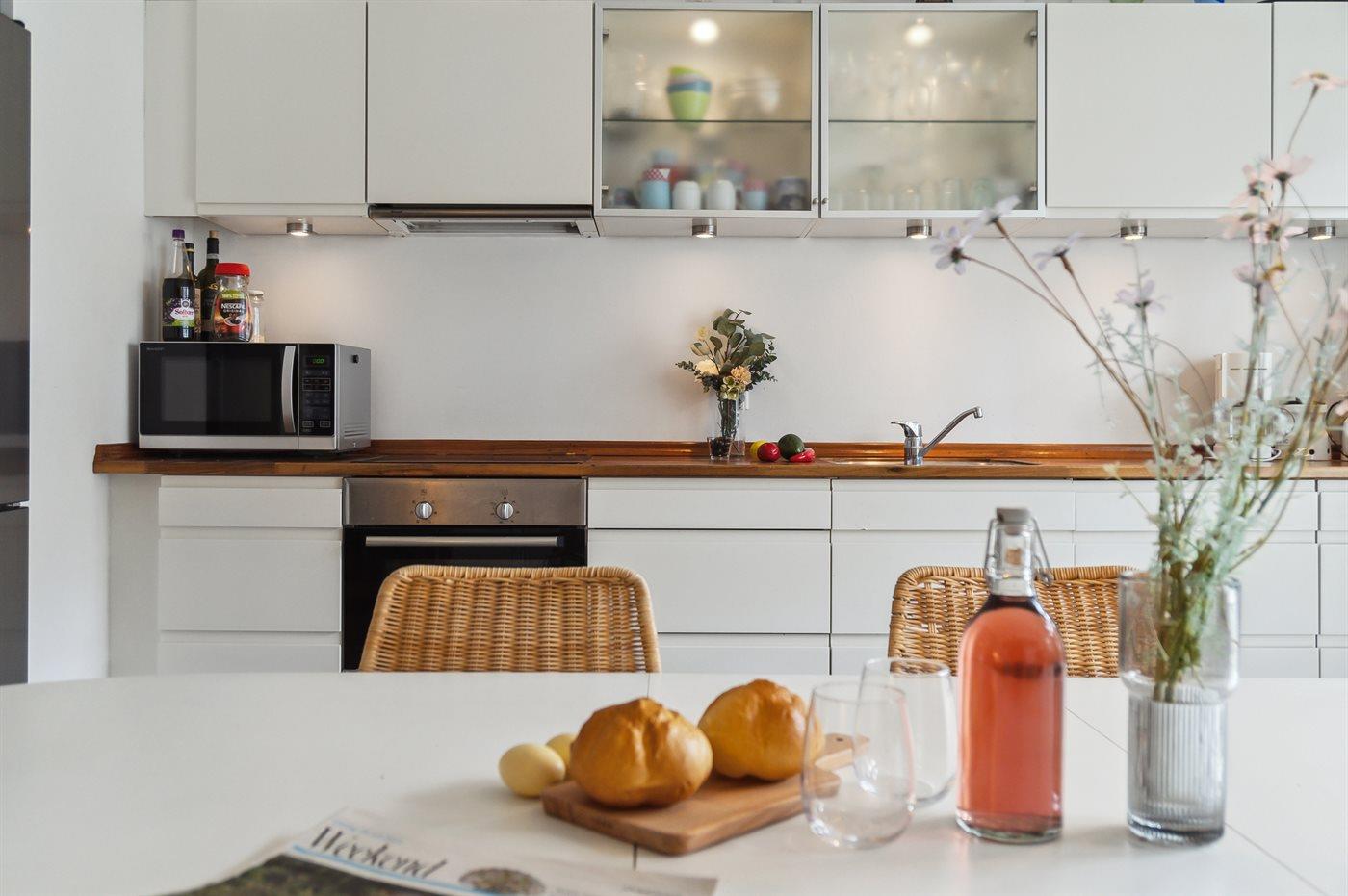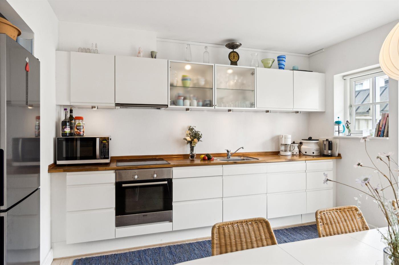 Køkkenet er udstyret med 1 køleskab. Der er 4 keramiske kogeplader, varmluftovn samt opvaskemaskine.