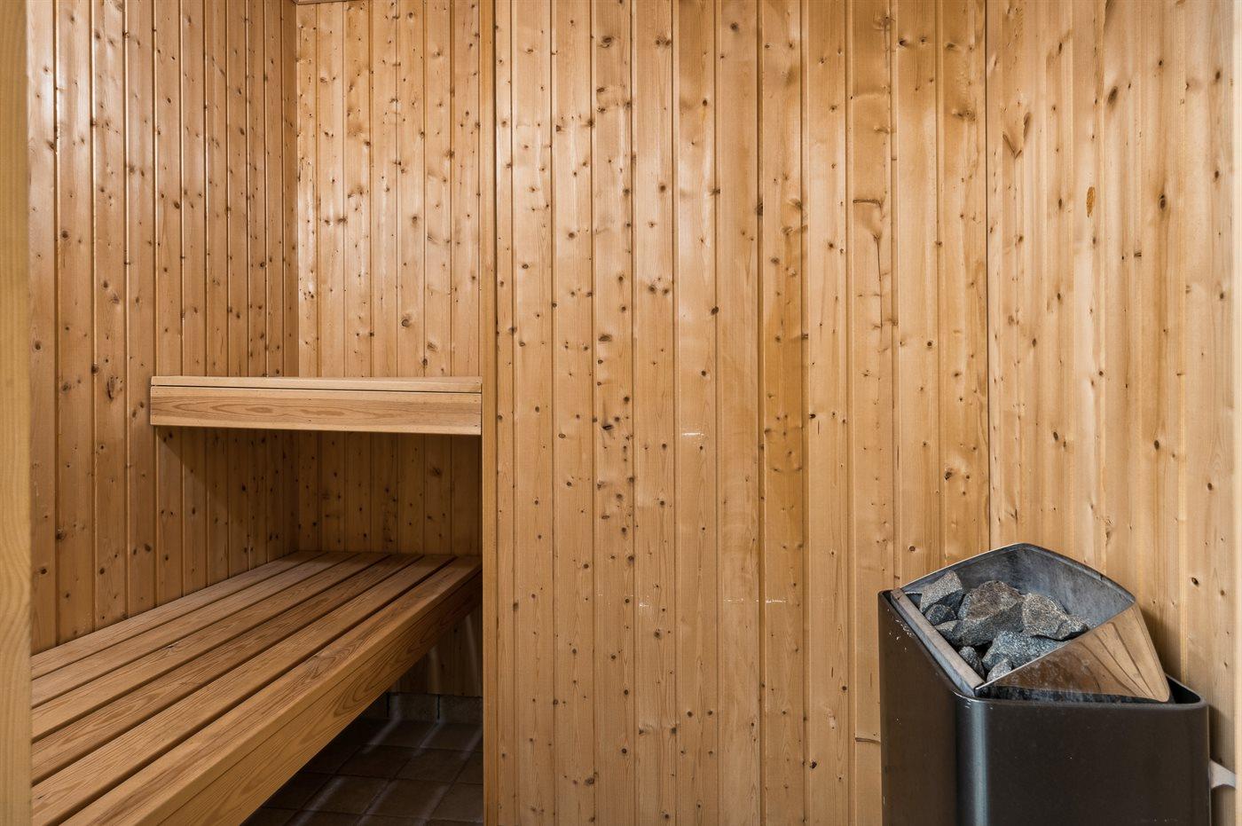 Der er 1 badeværelse med bruser og 2 toiletter, heraf 1 gæstetoilet. Der er gulvvarme på 1 badeværelse. Der er gulvvarme på gæstetoilettet. I saunaen er der mulighed for afslapning.