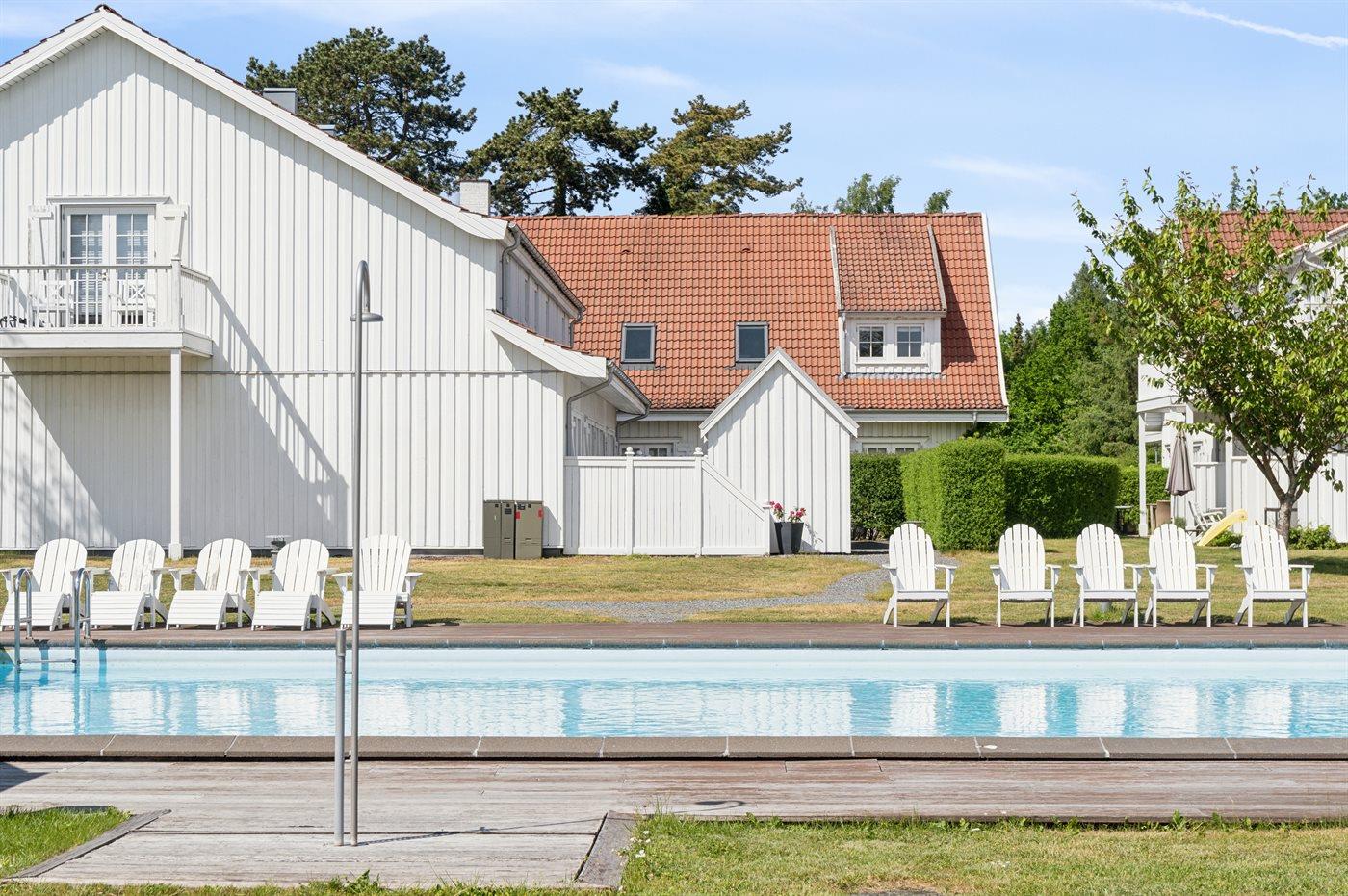 Der er en dejlig terrasse samt en skøn altan ud fra stuen. Endvidere er der fælles swimmingpool (åbent fra påske til og med uge 42), petanquebane, tennisbane og basketball til rådighed.
