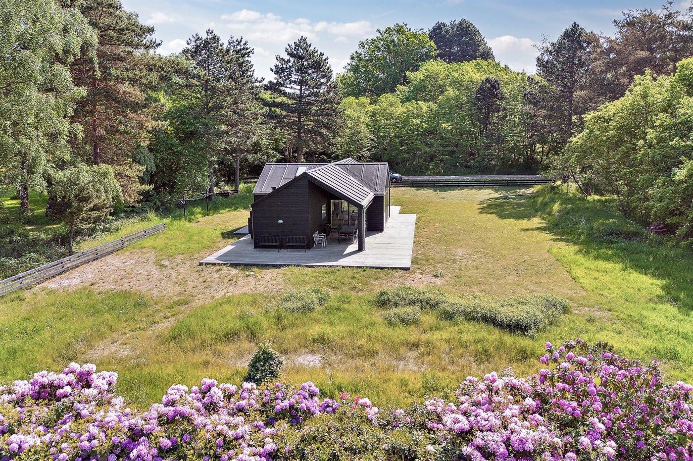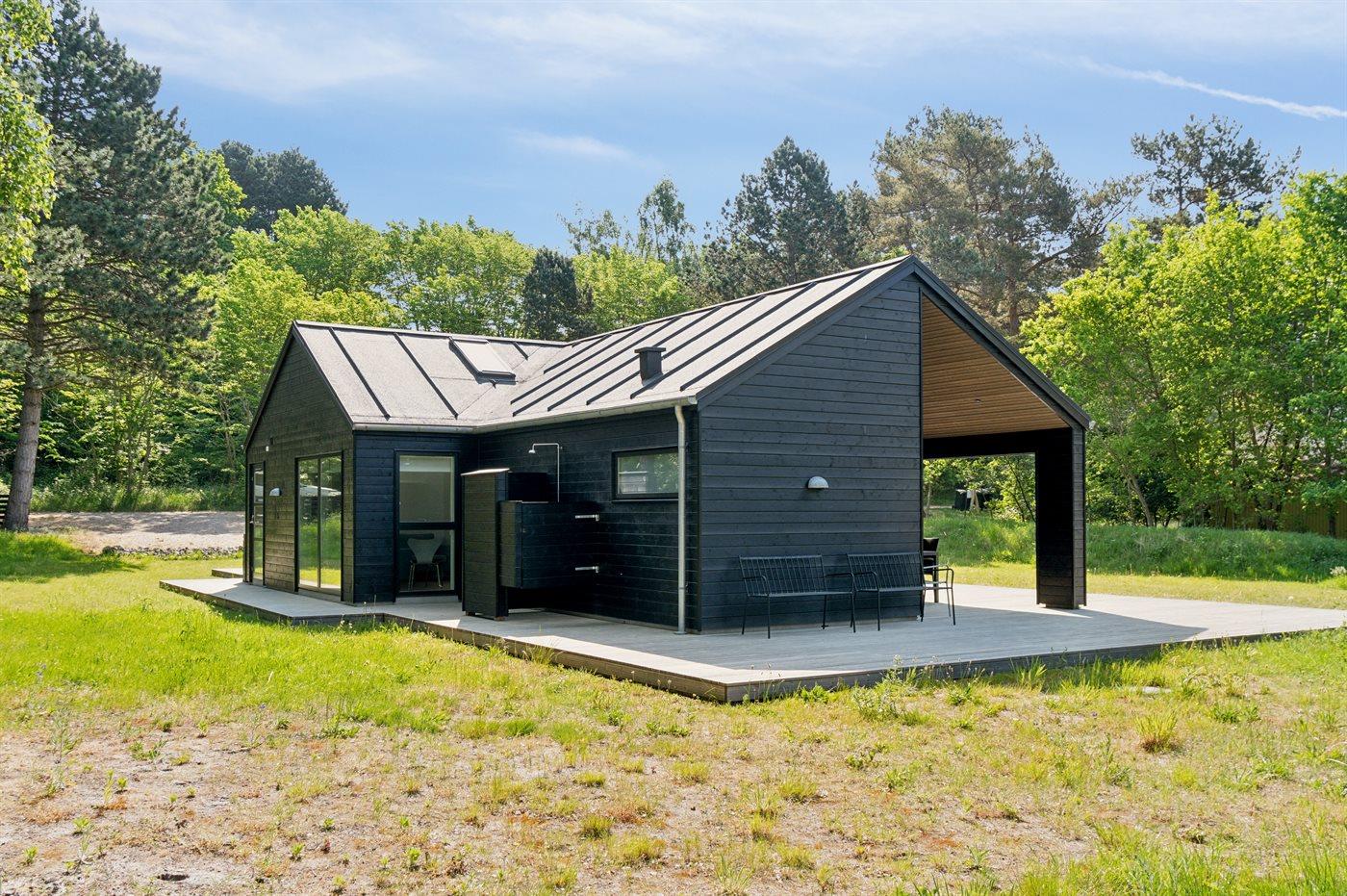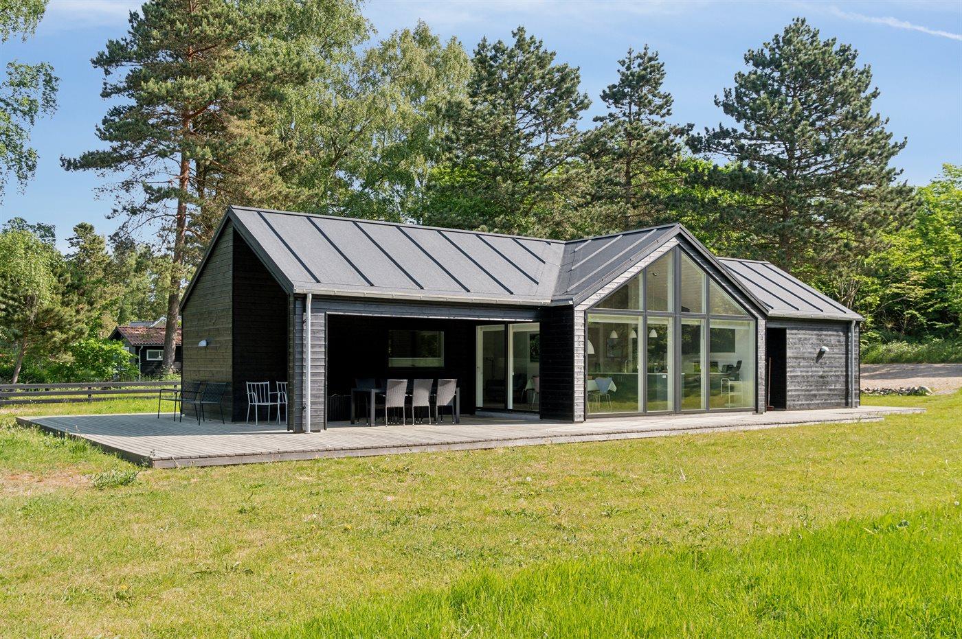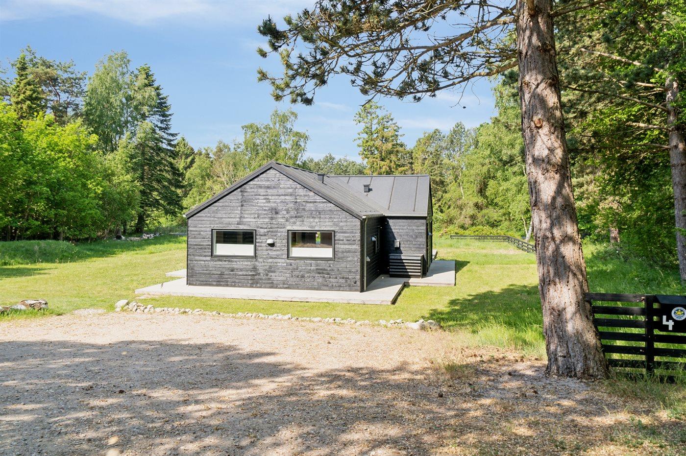 Ferieboligen er beliggende på en 2000 m² stor naturgrund. Der er 1700 m til havet. Der er 1200 m til fjorden. Nærmeste forretning er beliggende i en afstand af 1100 m. Der er en golfbane i en afstand af 8600 m. Til ferieboligen hører åbent terrasseareal. Desuden er der 20 m² overdækket terrasse. Udendørs bruser. Grill til rådighed. Der er installeret stik til opladning af elbil. CEE stik. Med 11 kW ladeeffekt. Parkering ved ferieboligen.