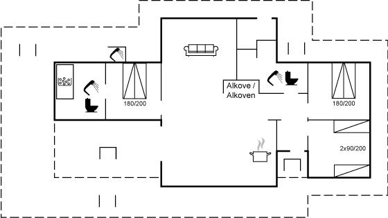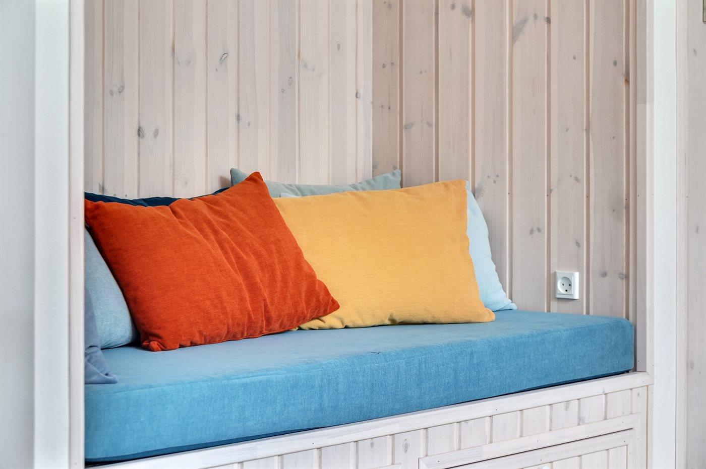 Der er i alt 3 soveværelser. Sovepladserne fordeler sig på: 4 sovepladser i dobbeltsenge. 2 sovepladser i enkeltsenge.