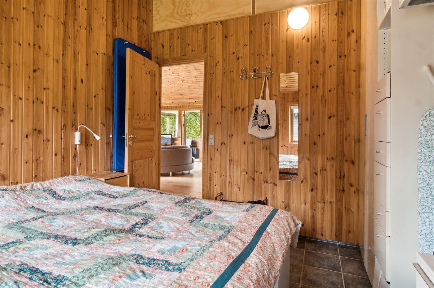 Hjertet i sommerhuset er det store, dejlige køkkenalrum i åben forbindelse med stuen og med udgang til den sydvendte terrasse, hvor en del er overdækket. I huset findes 3 soveværelser. Der er 1 værelse med dobbeltseng, 1 med enkeltseng og 1 med en dobbeltsovesofa. Badeværelset er med bruseniche, gulvvarme og vaskemaskine.