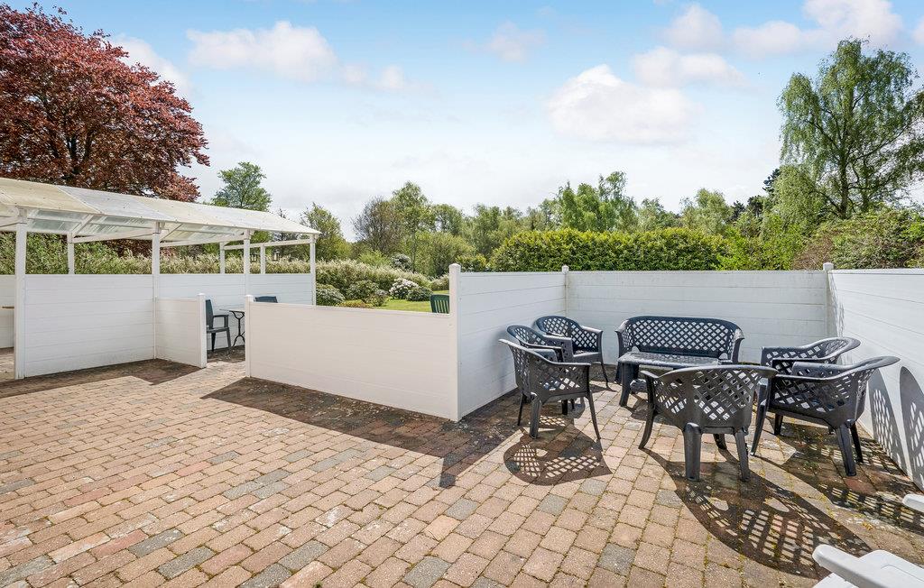 Når solen er fremme, kan I trække udenfor. Her har huset en stor grund med terrasse og bålplads. Læn jer tilbage i liggestolene, tilbered lækre grillretter eller nyd solen.