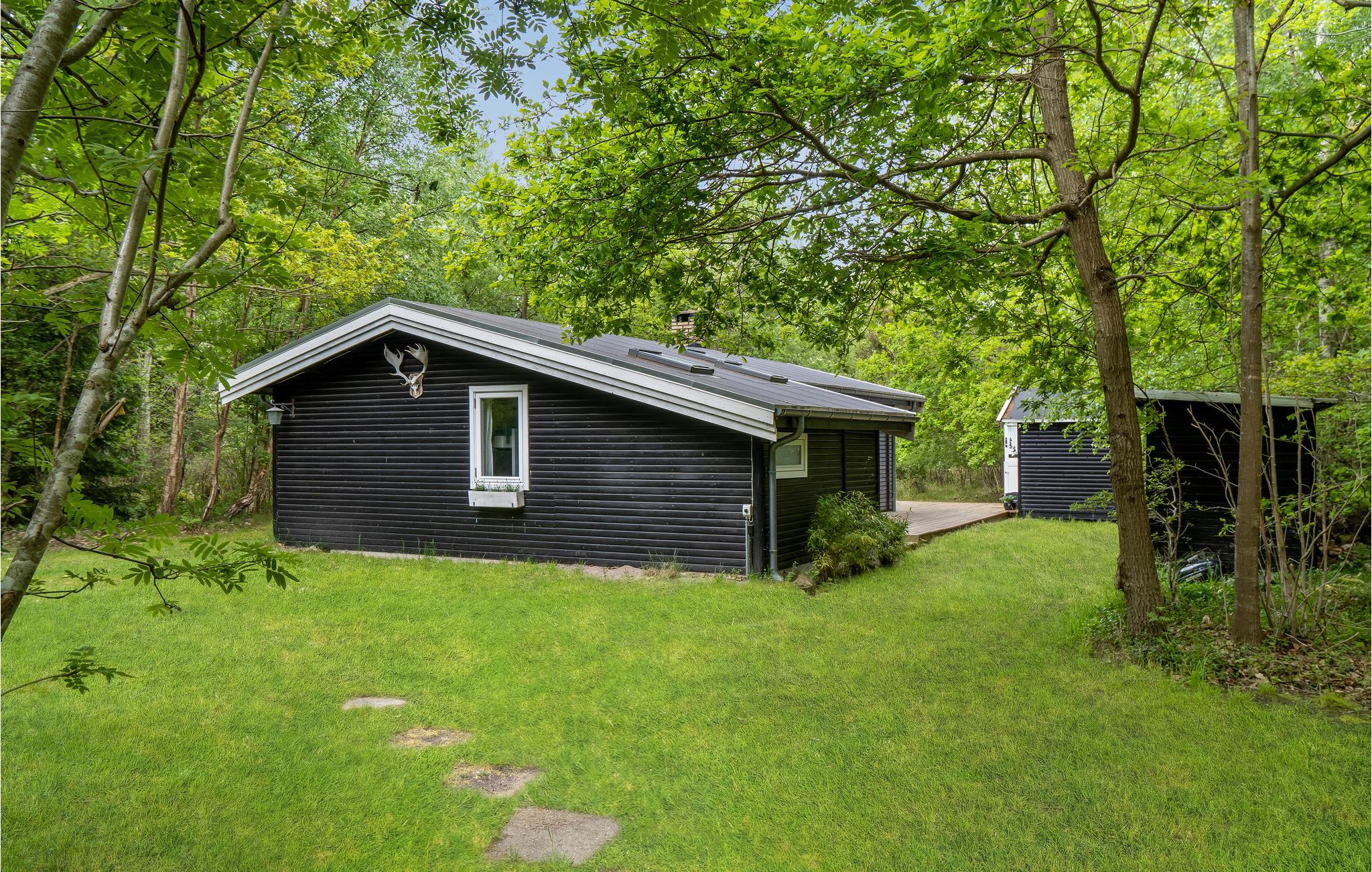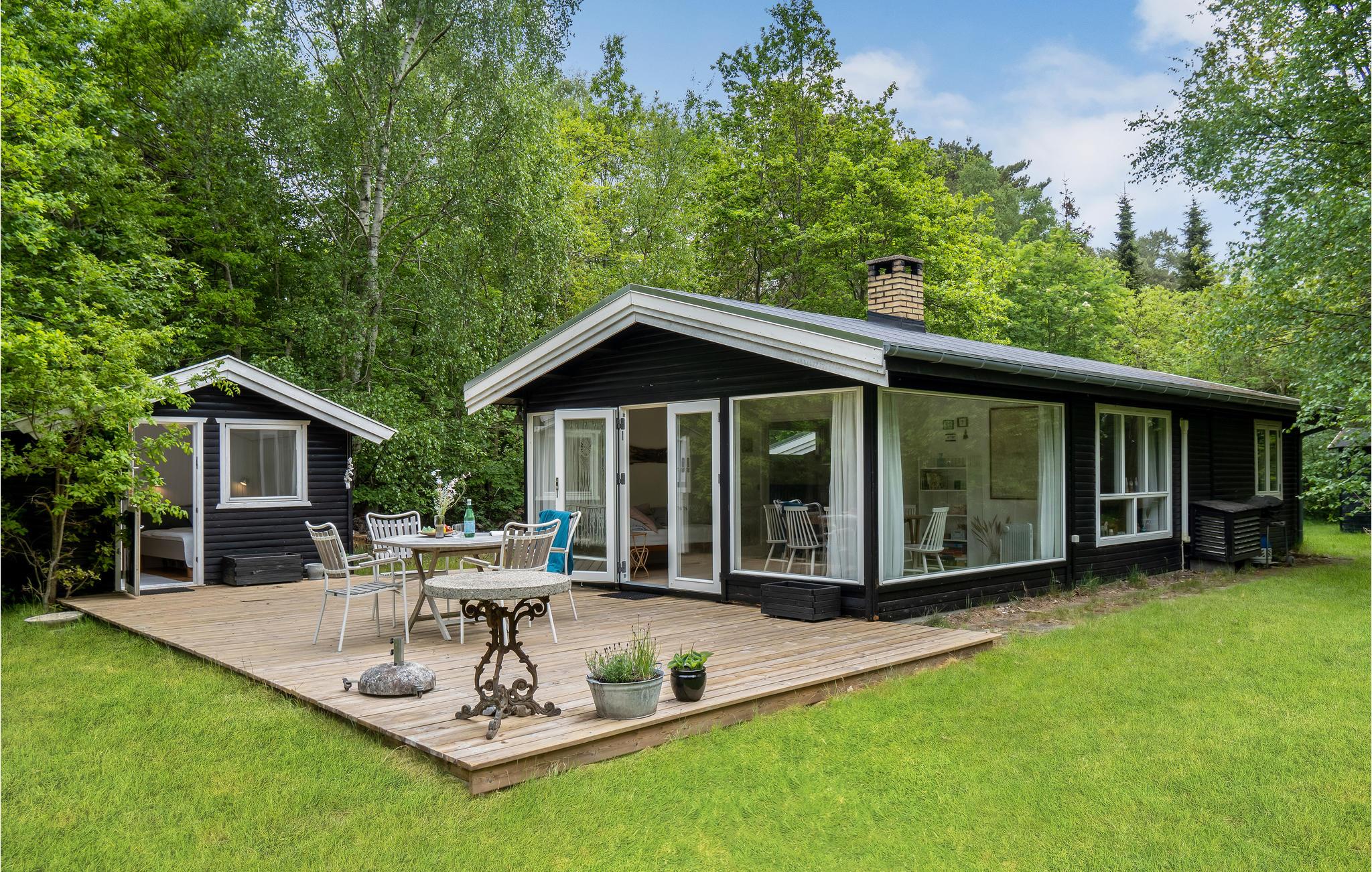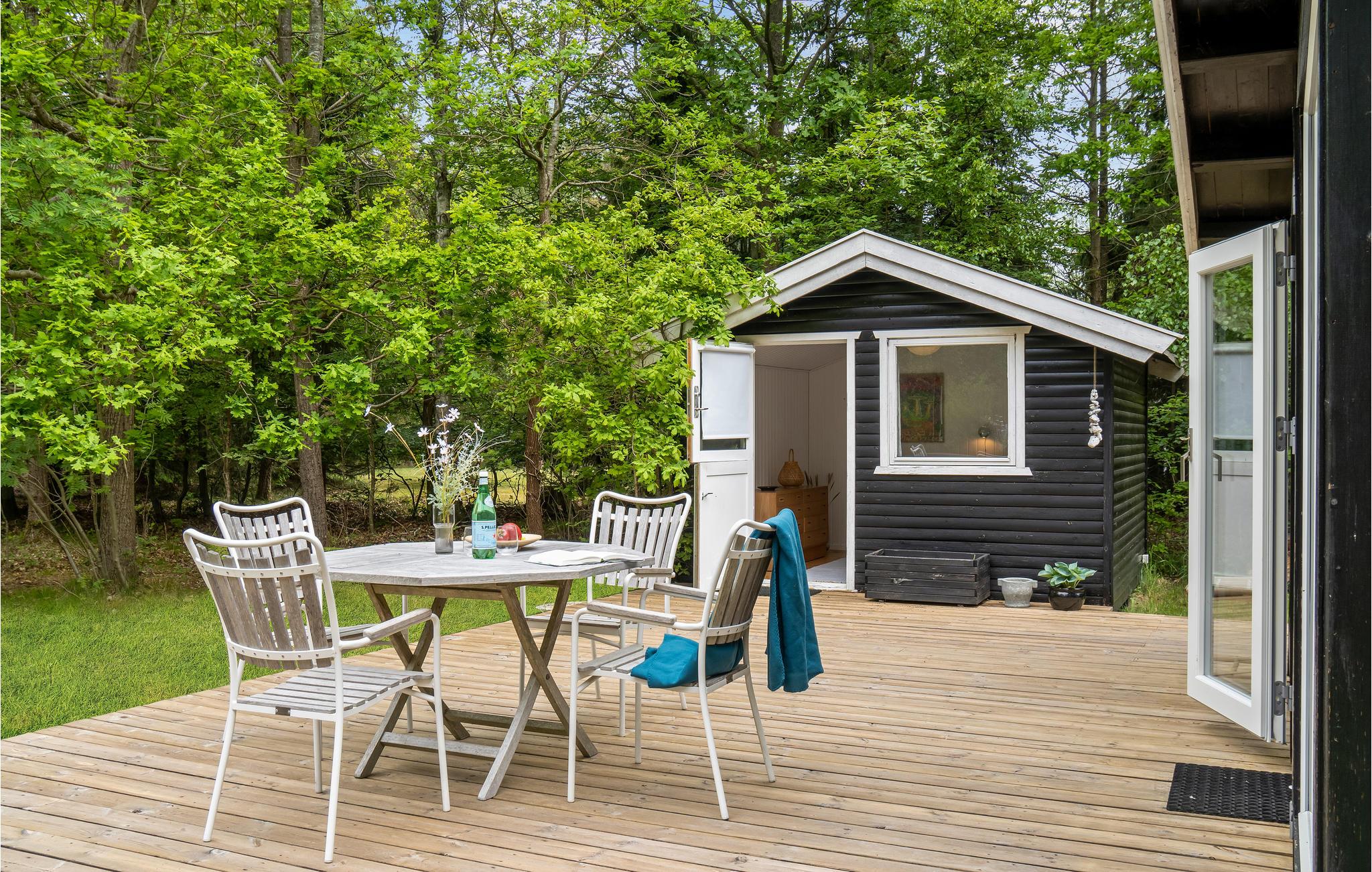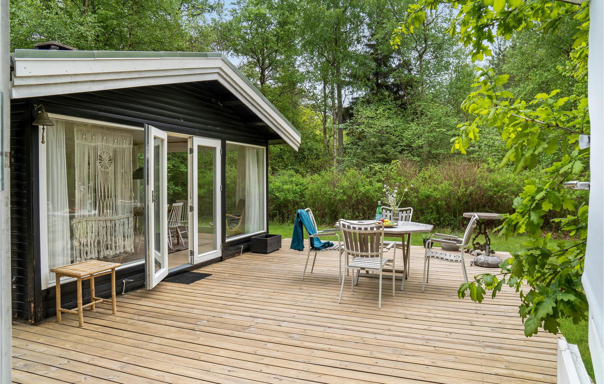 Hyggeligt træhus i Rørvig med skovgrund, terrasse og natur tæt på stranden.
