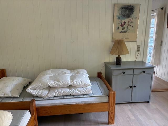 Huset har 4 soveværelser. Et soveværelse med en dobbeltseng + en enkeltseng og et dejligt, stort skab og direkte udgang til haven. Et soveværelse med en dobbeltseng. Et soveværelse med to, adskilte enkeltsenge og endelig et soveværelse med en enkeltseng.