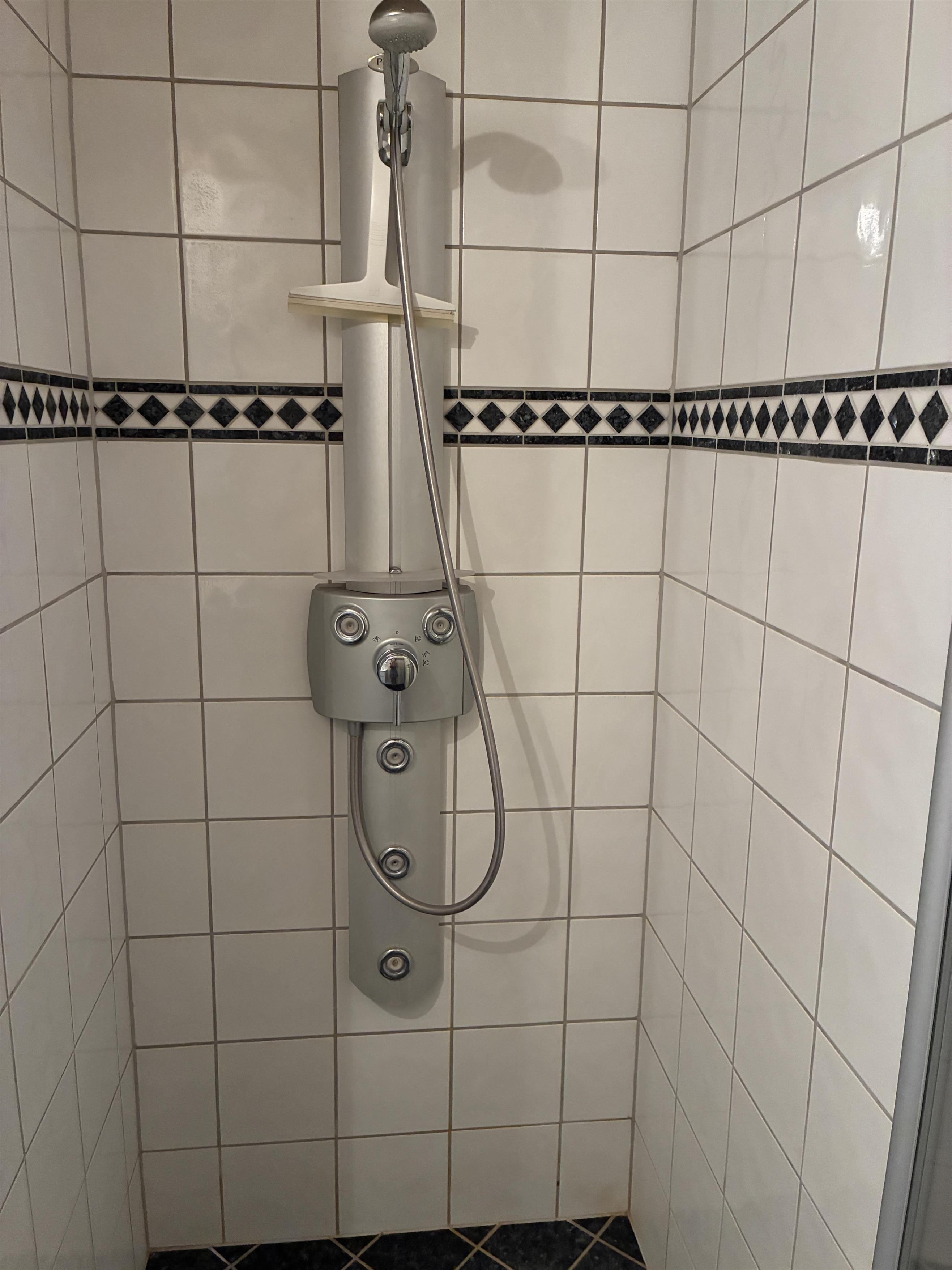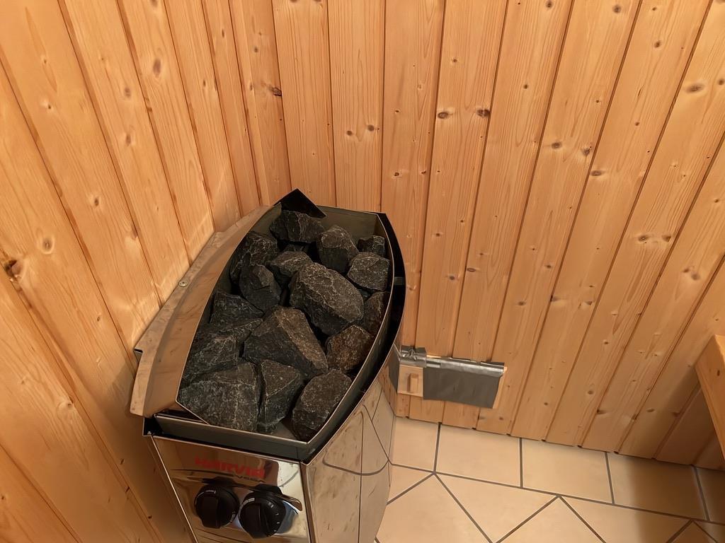 Huset har to flisebadeværelser med brusebad, toilet og varme i gulvet. Sauna med god plads og saunaovn. Her er også vaskemaskine.