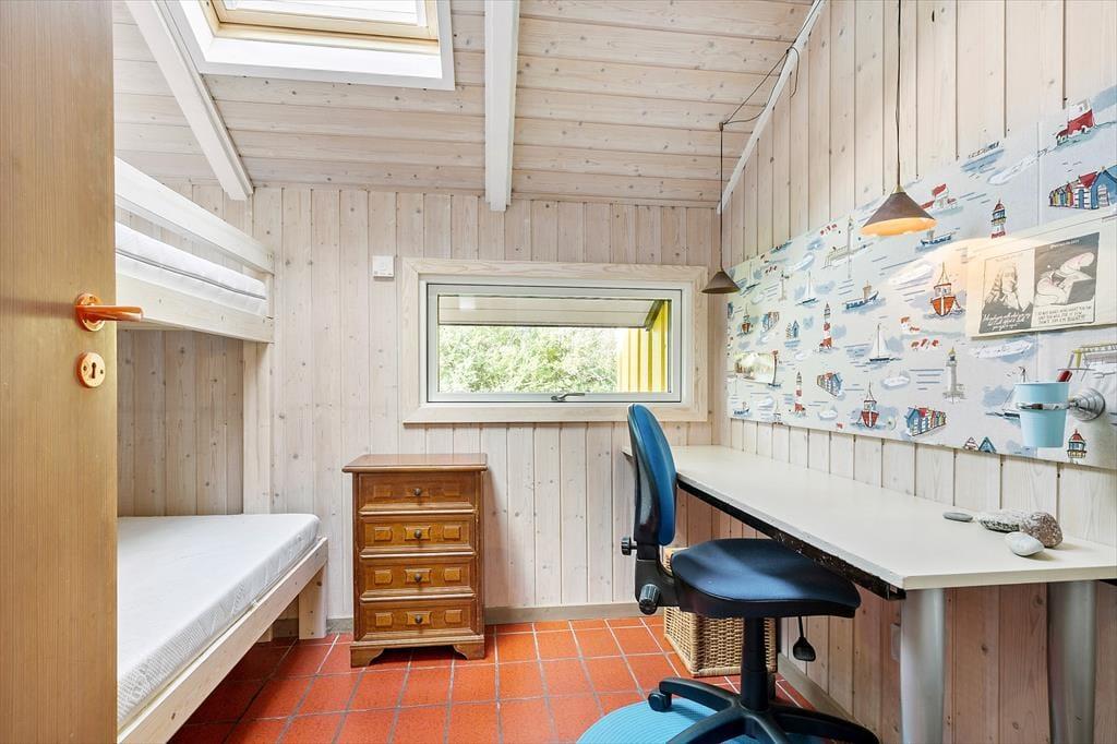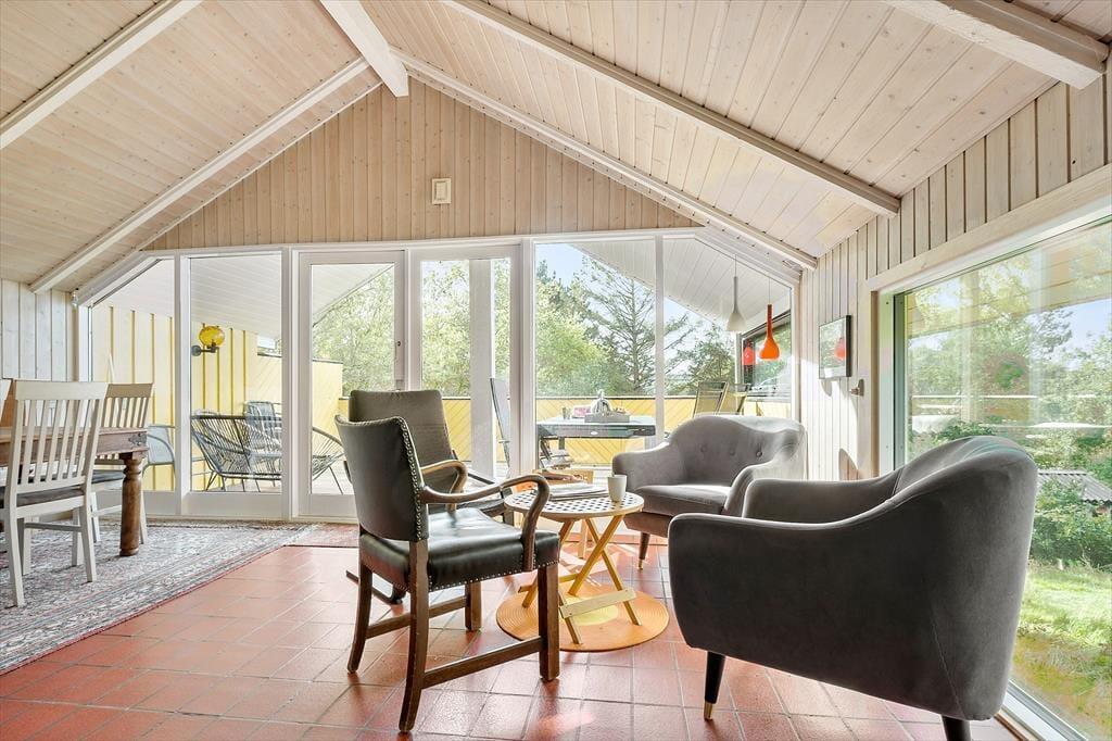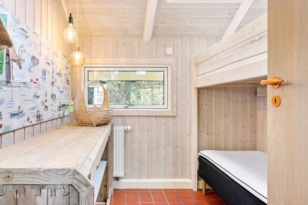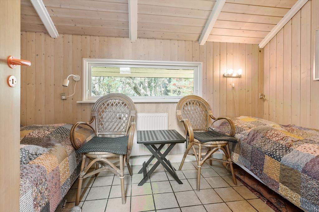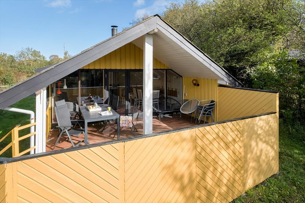 Feriehuset er opført i 1976. I 2004 blev der lavet en tilbygning med en opholdsstue, soveværelse med adgang til badeværelse. Huset indeholder separat køkken alrum med en hyggelig spisestue, brændeovn og hyggekrog med lænestole. Der er udgang til en delvis overdækket træterrasse. Køkken med indbygget ovn,kogeplader, opvaskemaskine, køleskab, mikroovn, elkedel og kander til stempelkaffe. Dejlig opholdsstue med store vinduespartier, som giver masser af lys i rummet. Der er sofaer og lænestol, TV med Waoo Flex TV-pakke. To badeværelse med brusenicher. Fire soverum, et værelse med dobbeltseng (To enkeltsenge som er sat sammen), et med to enkeltsenge, et med en enkeltsenge og et med køjeseng, hor underkøjen er 100x200 og overkøjen er 80x200. Udhus med vaskemaskine. Huset opvarmes med luft til vand varmepumpe og brændeovn.