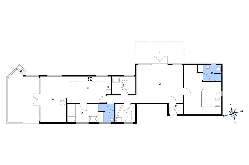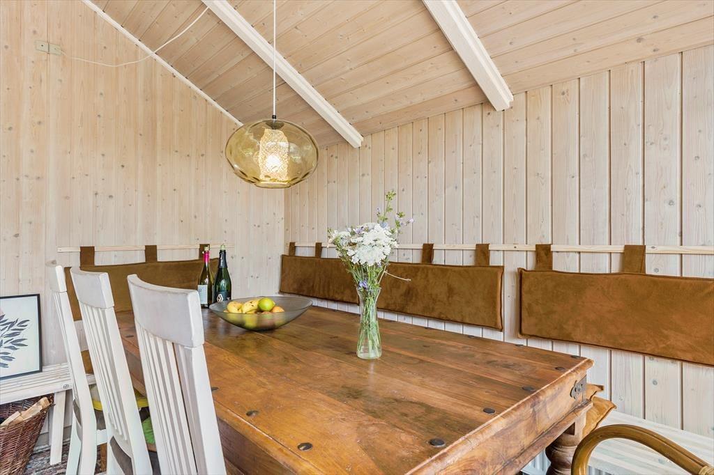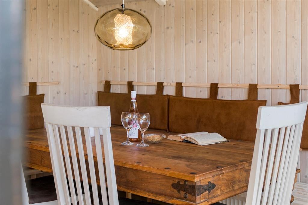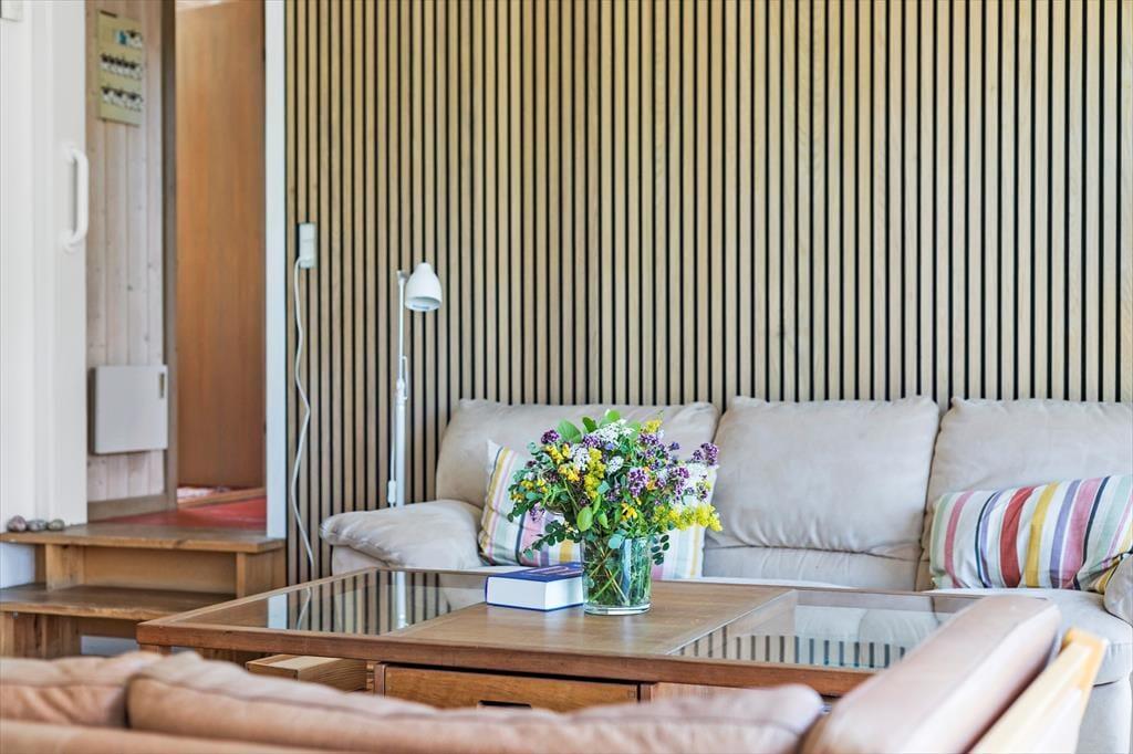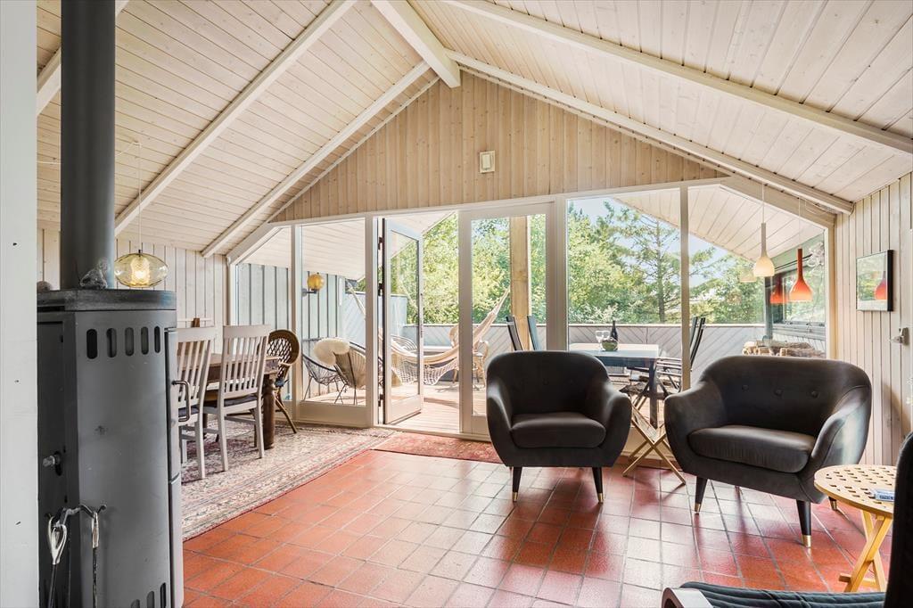 Feriehuset er opført i 1976. I 2004 blev der lavet en tilbygning med en opholdsstue, soveværelse med adgang til badeværelse. Huset indeholder separat køkken alrum med en hyggelig spisestue, brændeovn og hyggekrog med lænestole. Der er udgang til en delvis overdækket træterrasse. Køkken med indbygget ovn,kogeplader, opvaskemaskine, køleskab, mikroovn, elkedel og kander til stempelkaffe. Dejlig opholdsstue med store vinduespartier, som giver masser af lys i rummet. Der er sofaer og lænestol, TV med Waoo Flex TV-pakke. To badeværelse med brusenicher. Fire soverum, et værelse med dobbeltseng (To enkeltsenge som er sat sammen), et med to enkeltsenge, et med en enkeltsenge og et med køjeseng, hor underkøjen er 100x200 og overkøjen er 80x200. Udhus med vaskemaskine. Huset opvarmes med luft til vand varmepumpe og brændeovn.