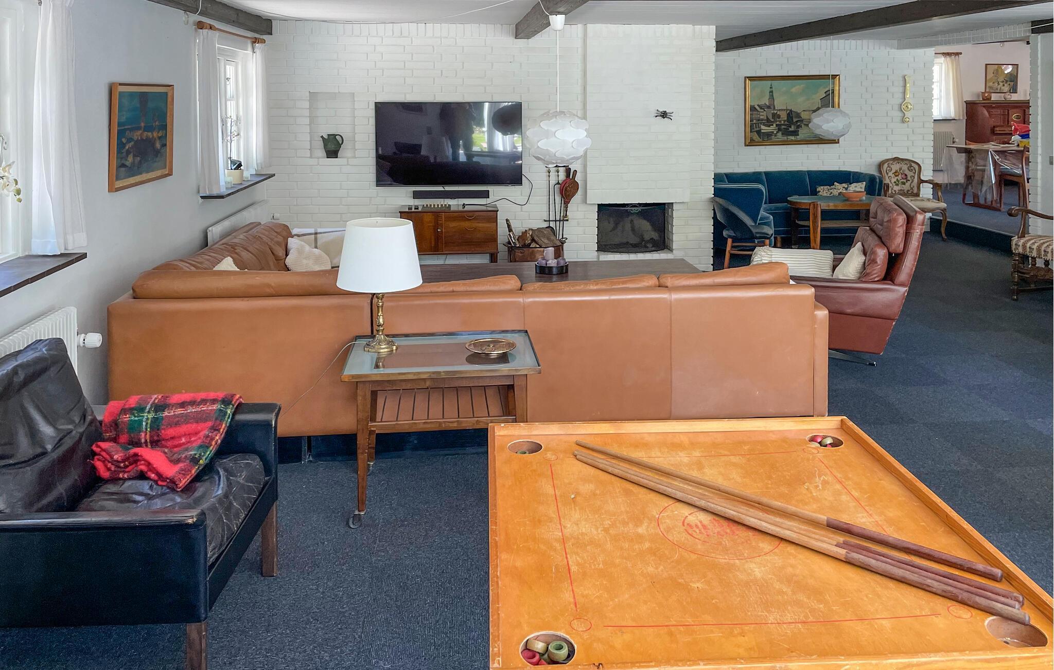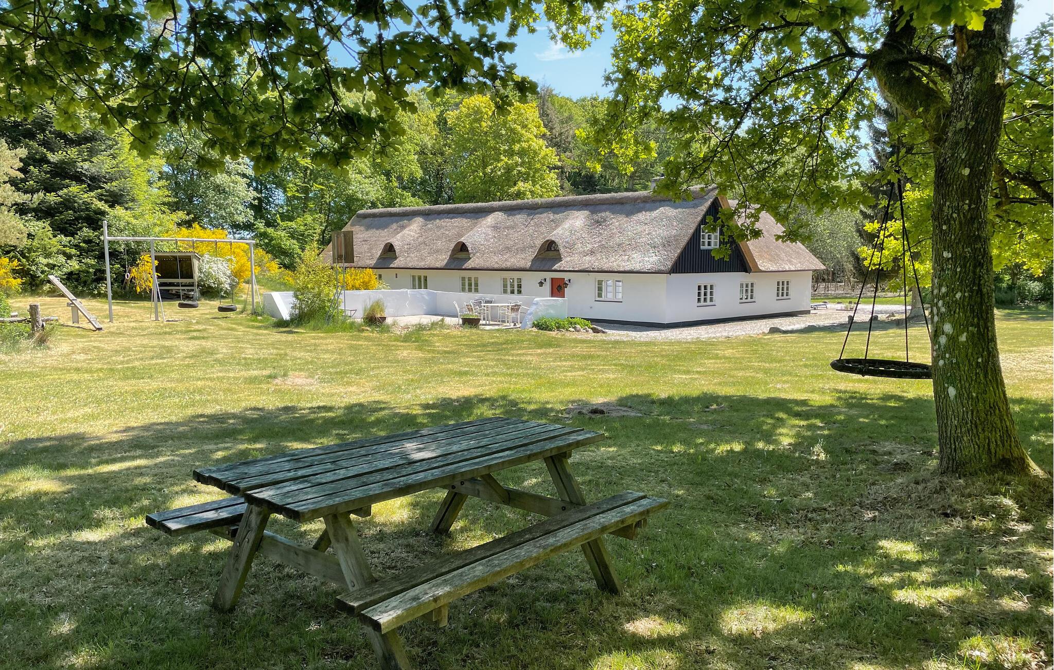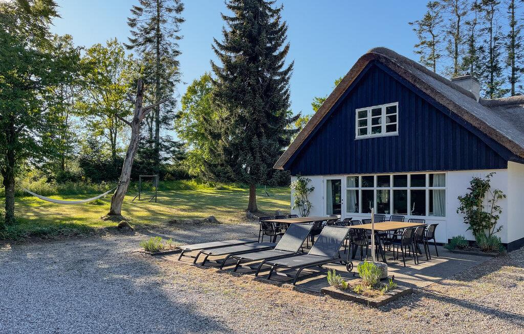 Dette idylliske landsted ligger tilbagetrukket i landskabet på Djursland og tilbyder en fredelig oase med plads til flere familier eller en større rejsegruppe. Spis sammen i den rummelige spisestue, hvor der er plads til alle, mens den hyggelige dagligstue med pejs, brætspil og smart-TV indbyder til afslapning. I aktivitetsrummet kan I afholde en sjov bordtennisturnering.