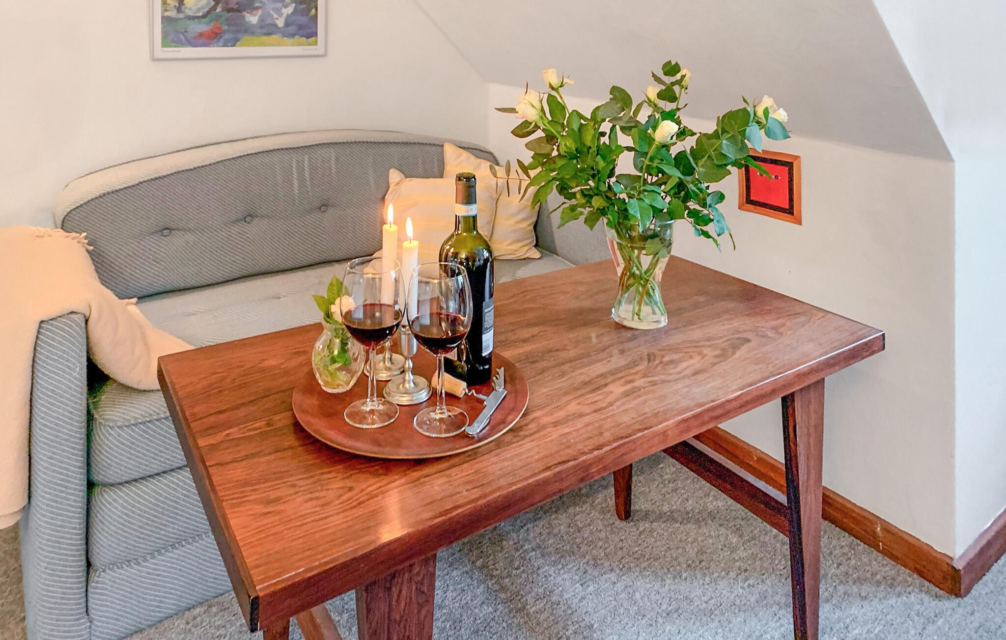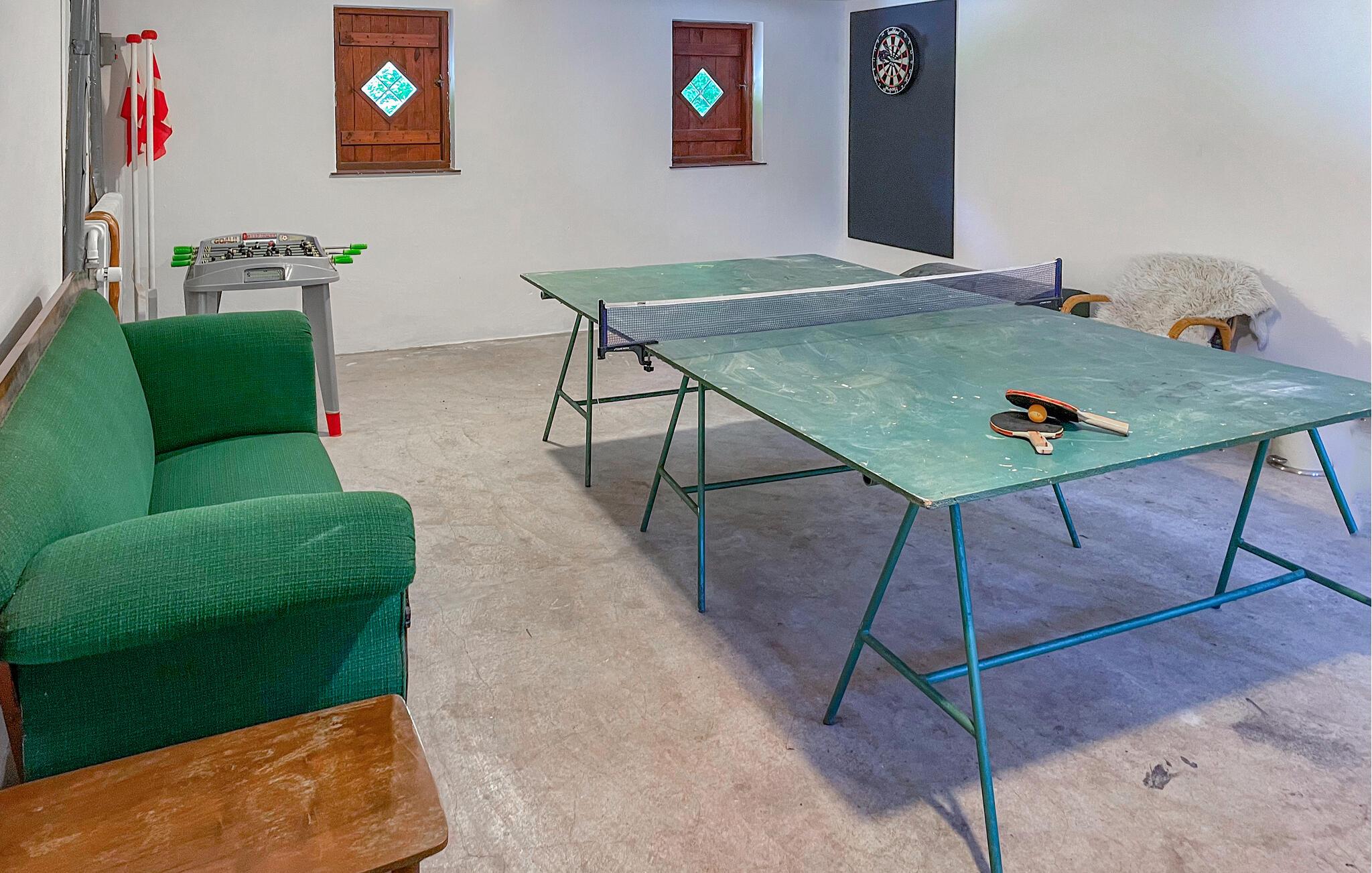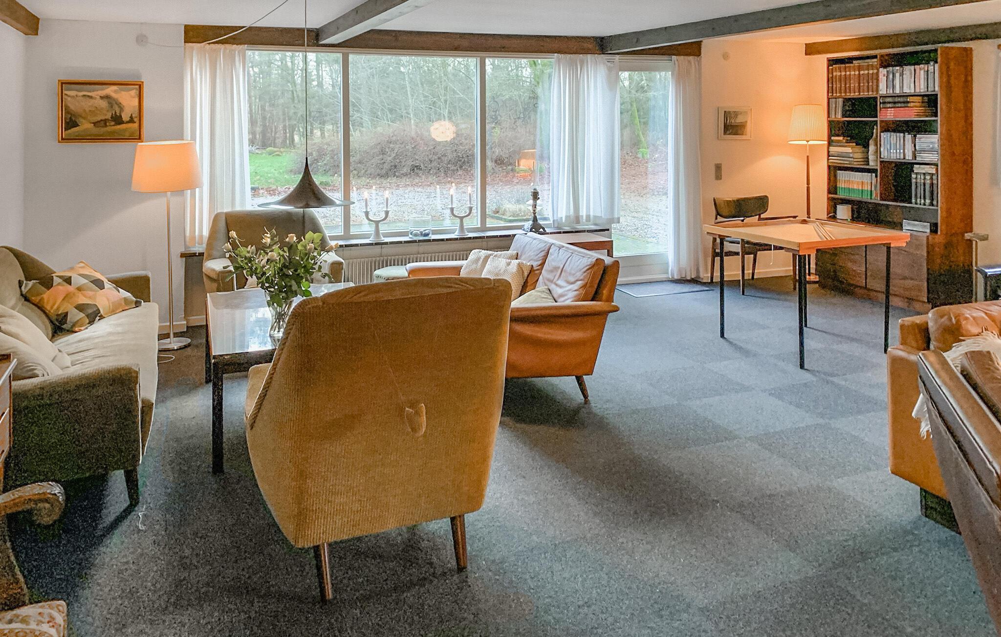 Dette idylliske landsted ligger tilbagetrukket i landskabet på Djursland og tilbyder en fredelig oase med plads til flere familier eller en større rejsegruppe. Spis sammen i den rummelige spisestue, hvor der er plads til alle, mens den hyggelige dagligstue med pejs, brætspil og smart-TV indbyder til afslapning. I aktivitetsrummet kan I afholde en sjov bordtennisturnering.