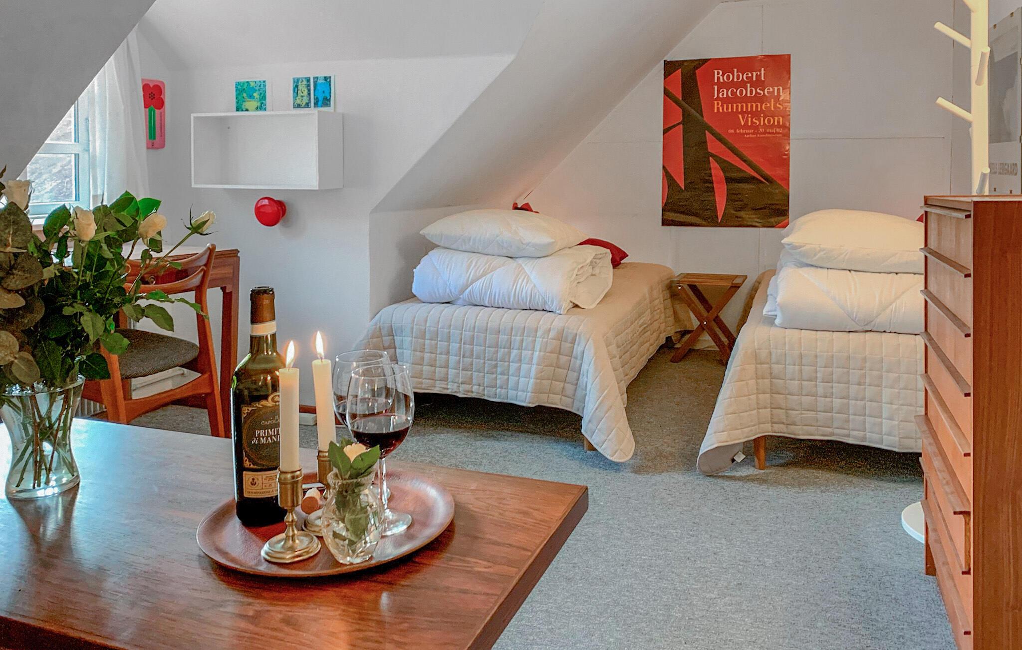 Soveværelse (nr. 5) - 1 Soveplads. (Enkeltseng(e)). 2 Sovepladser. (Dobbeltseng(e)).
