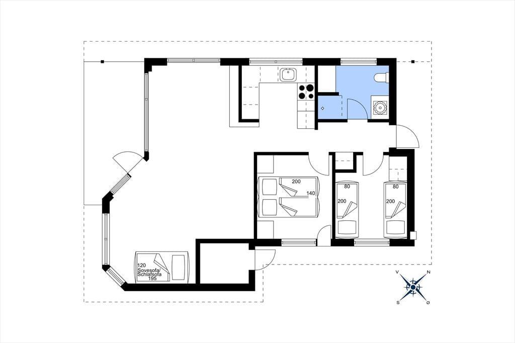 Nyere velholdt EBK sommerhus fra 2007 som fremstår lyst og indbydende med loft til kip og stort vinduesparti, som giver et godt lysindfald i huset. Huset er indrettet med kombineret køkken og opholdsstue. Køkken med indbygget ovn, kogeplader, opvaskemaskine, mikroovn og køleskab med fryser. Opholdsstue med udgang til delvis overdækket terrasse, sofa, lænestole, hyggelig spiseplads og tv med danske, svenske, norske og tyske kanaler. Badeværelse med bruseniche. To soveværelser, et med en dobbeltseng og et med en dobbelt sovesofa. Der er desuden to sovepladser på en dobbelt sovesofa i opholdsstuen. Huset opvarmes med varmepumpe og elvarme.