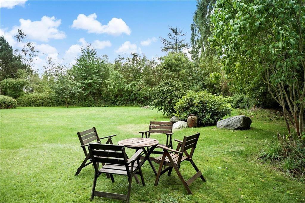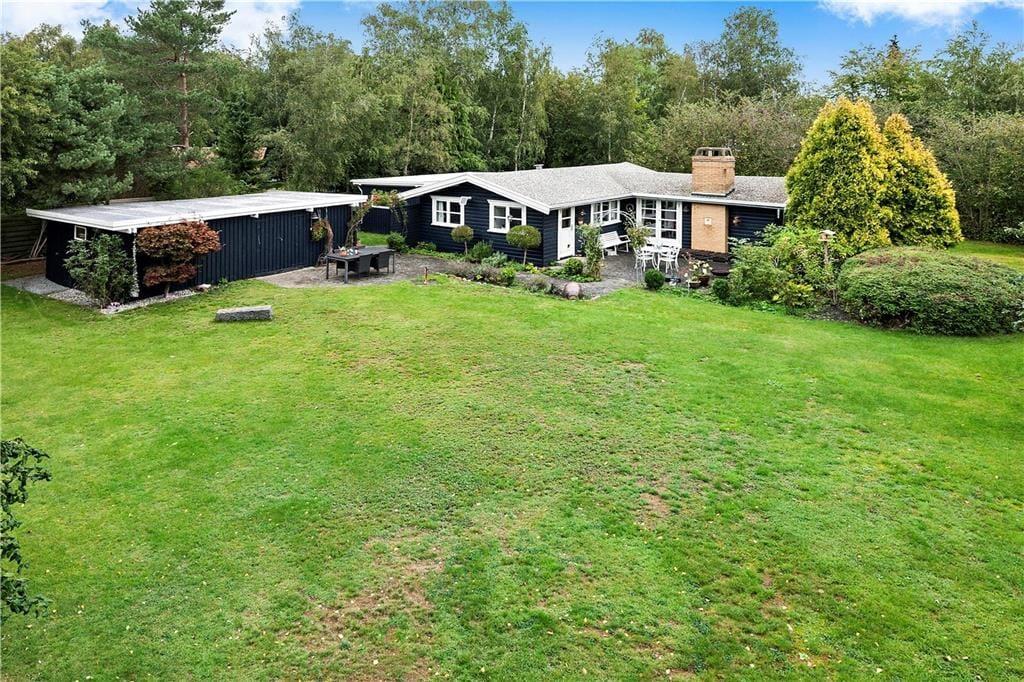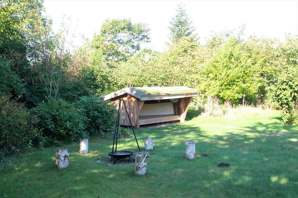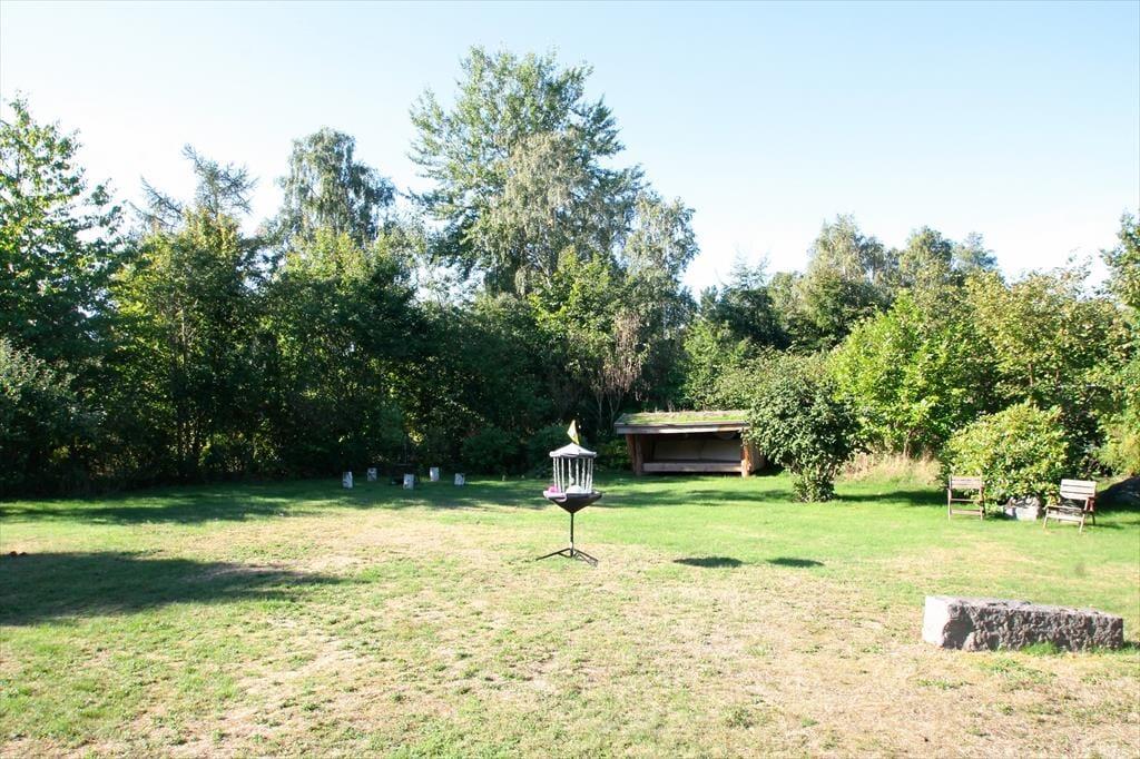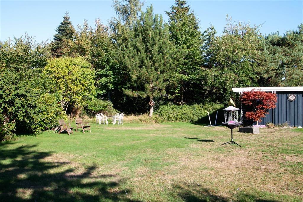 Huset ligger på en 1.527 kvadratmeter lukket grund og have. I den gode store have med masser af plads til afslapning. Der er to terrasseområder som inviterer til grillaftener og hygge. Ved huset er der havemøbler, parasol, shelter, bålsted, grill, udendørs bruser og fiskerensebord