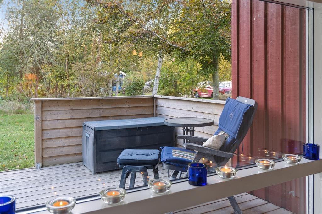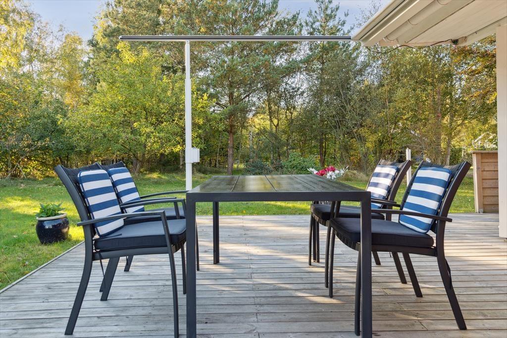 Nyd livet udenfor: Huset er beliggende i grønne omgivelser. Træd ud på det hyggelige store terrasseområde og den veltilrettelagte have. Her kan du nyde solen, roen og slappe helt af. Huset ligger i første række til fuglereservatet, foldene med kreaturer og ikke mindst vandområdet Vejlen. Udsigten er med andre ord fænomenal. På den vestlige side af grunden er der beplantet tæt med høje, gamle træer, der giver en fornemmelse af at være omgivet af skov. På grunden står desuden gavmilde frugttræer med æbler, pærer og blommer.
