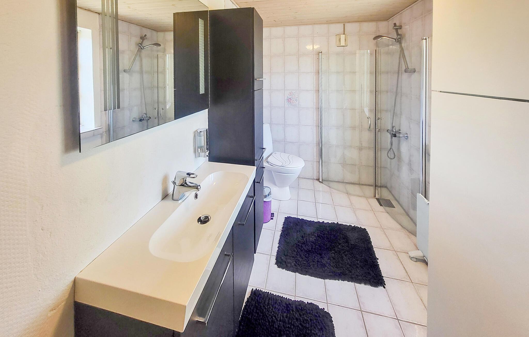 Velkommen til dette store og hjemlige feriehus, der tilbyder jeres store familie den ideelle feriebolig. Nyd jeres privatliv i soveværelserne i stueetagen eller lav mad sammen i køkkenet. På 1. sal byder en indbydende stue velkommen, hvor I kan hygge jer, se film eller spille brætspil. Den tilstødende solterrasse er det perfekte sted at slikke sol eller nyde jeres yndlingsretter i det fri med udsigt over fjorden.