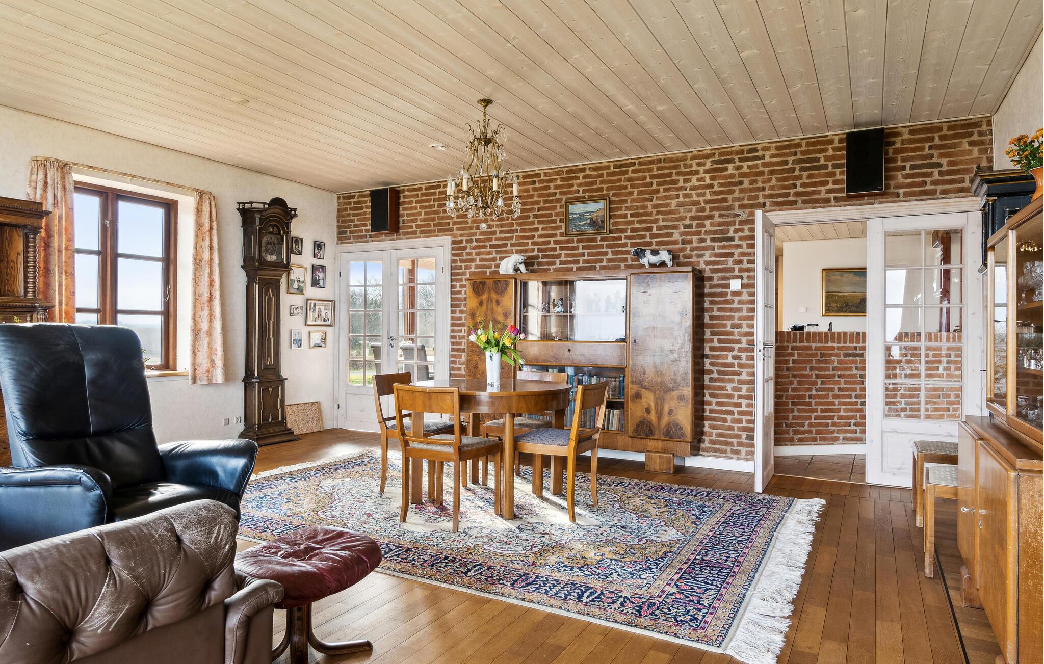 Indendørsområdet i jeres hus virker åbent og indbydende. Brug det lysfyldte opholdsrum med de hyggelige siddegrupper til rolige og afslappede stunder. De to store spiseområder giver rigelig plads til fælles måltider med udsigt over Limfjorden. Tilbered jeres mad i det smukt indrettede køkken, hvor der er plads til både store og små familiekokke. Derefter er det måske tid til en omgang bordtennis eller dart.