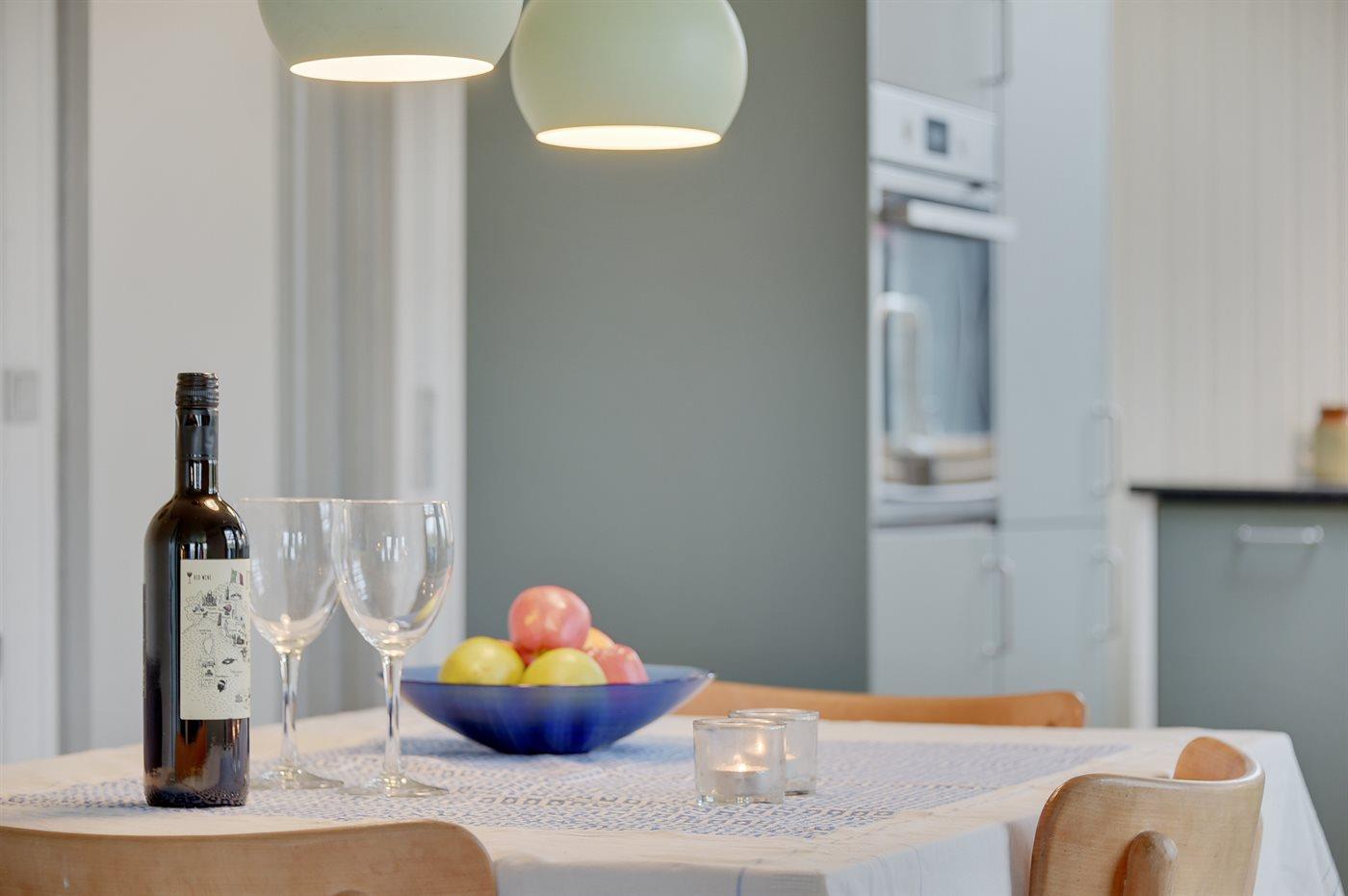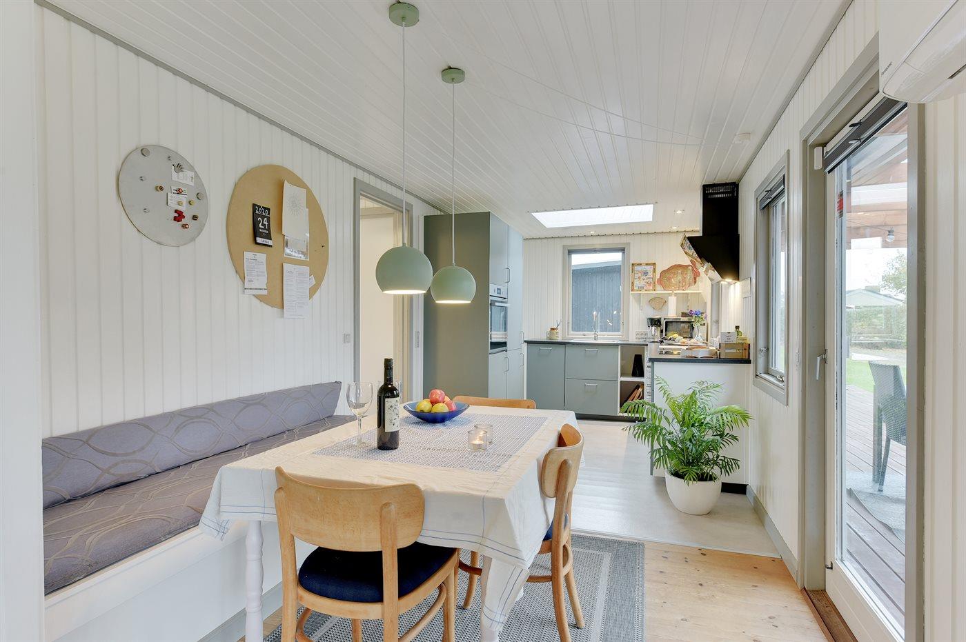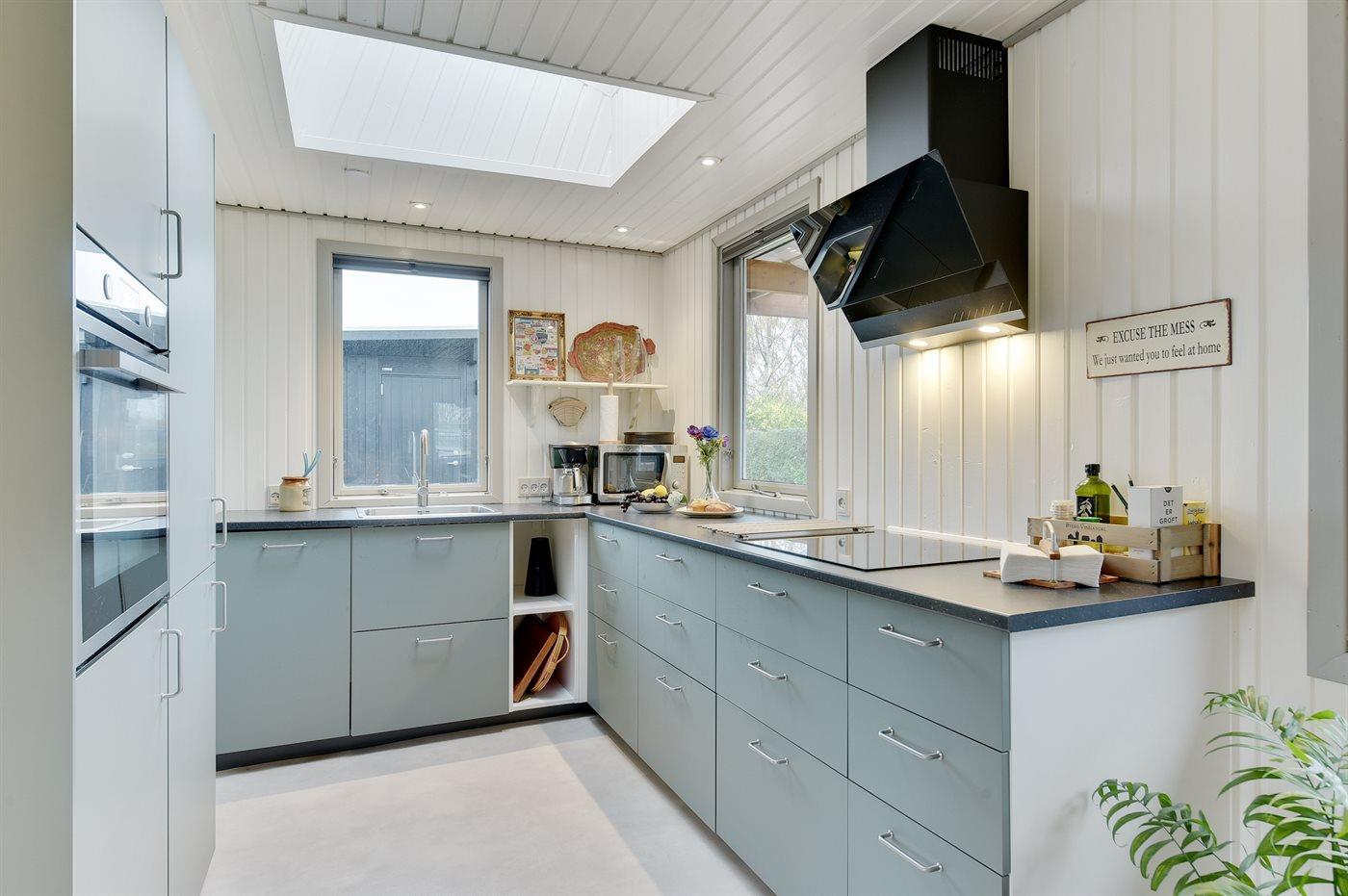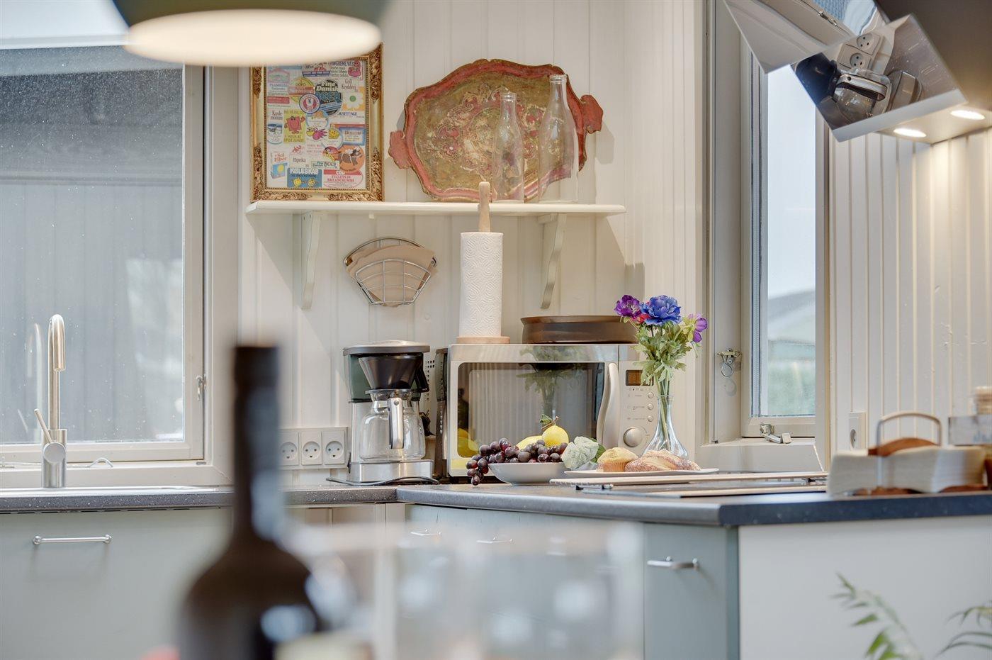 Køkkenet er fra 2020 med glaskeramisk induktion, ovn, mikrobølgeovn, køleskab med 20 liters fryserum samt opvaskemaskine.