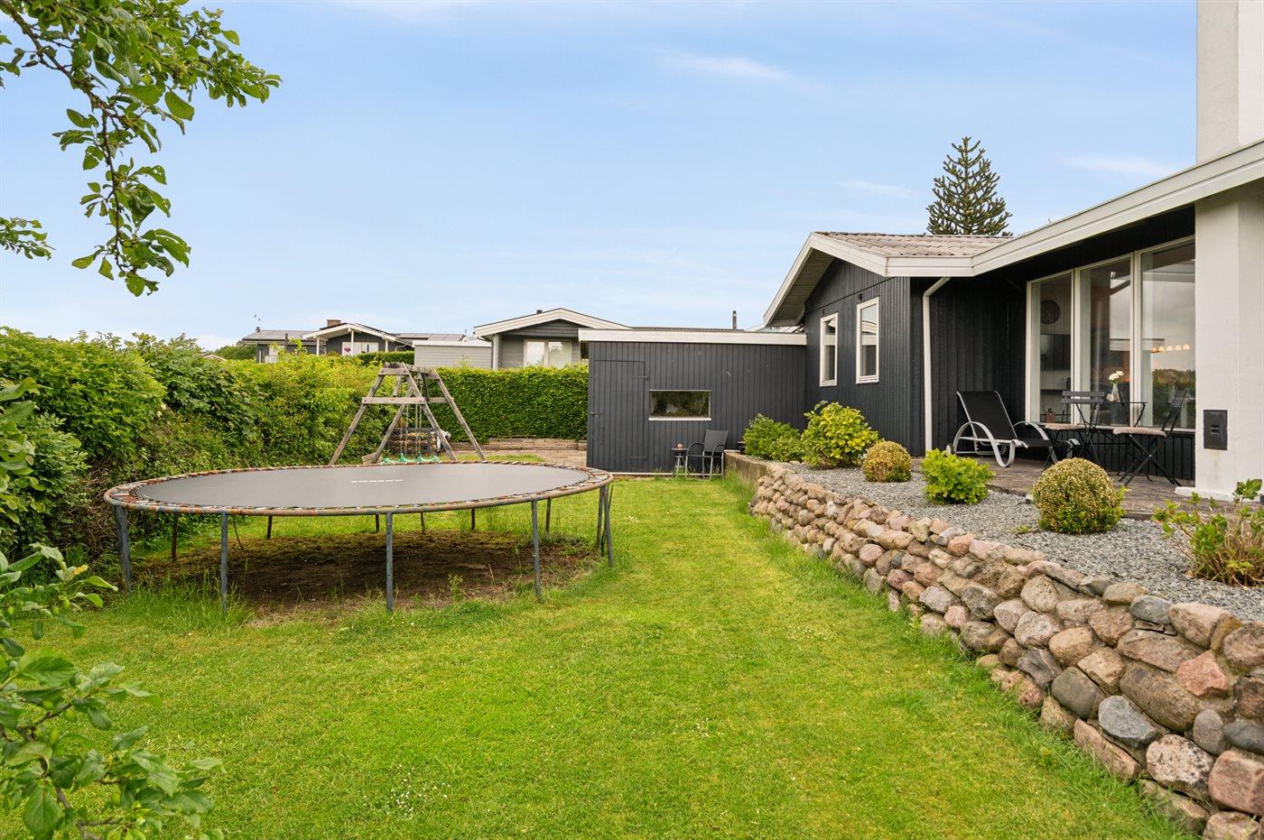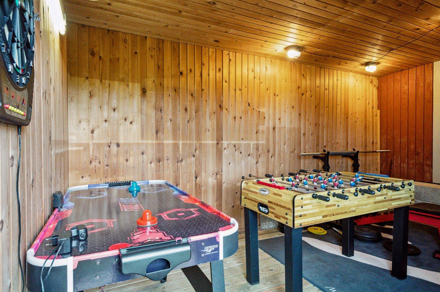 Til børnene er der to gynger, en sandkasse og en trampolin. I udstyrsrummet finder du bordfodbold, airhockey, dart og en vægtbænk.