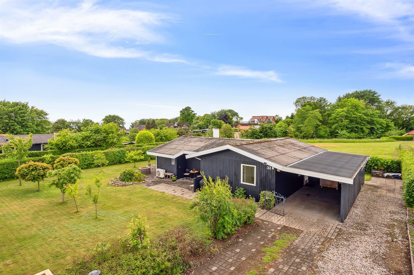 Feriehuset ligger på en 805 m² stor havegrund. Flensborg Fjord ligger kun 400 m væk, hvor der er badebro og en lille strand.