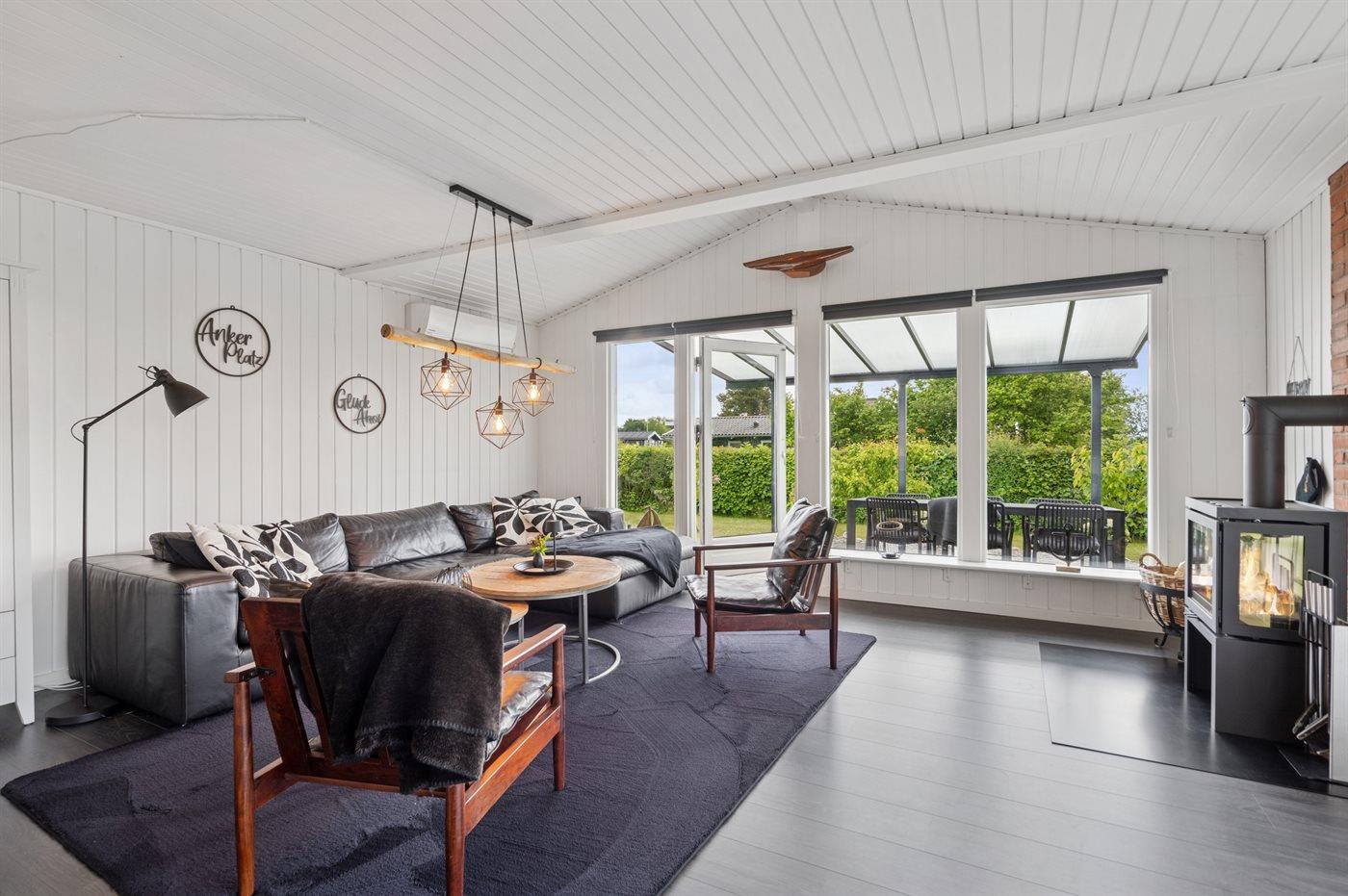 Sommerhuset er udstyret med en energirigtig og økonomisk luft-til-luft varmepumpe, og der er desuden en brændeovn, der skaber en hyggelig atmosfære.