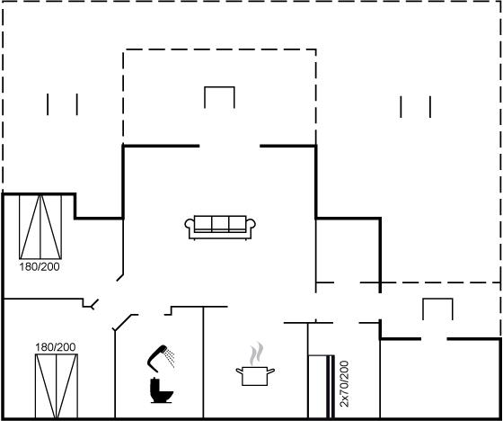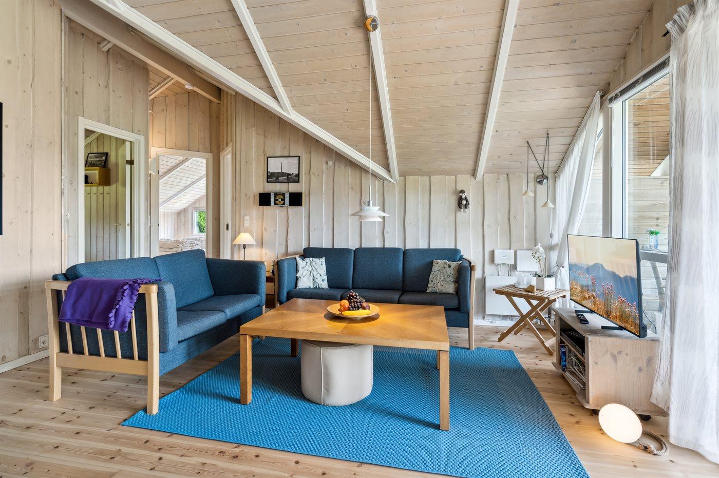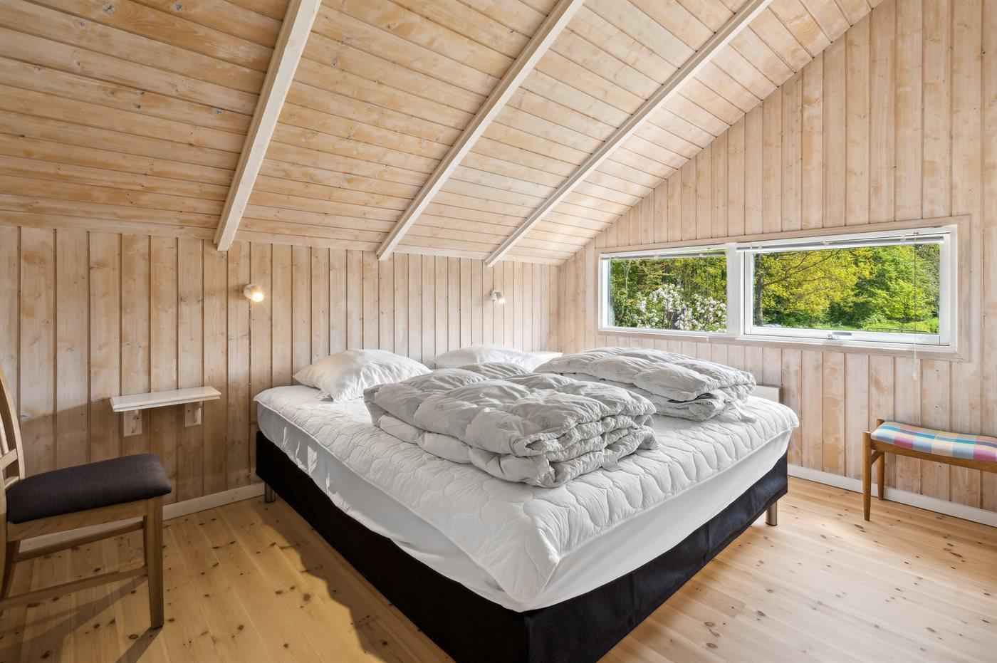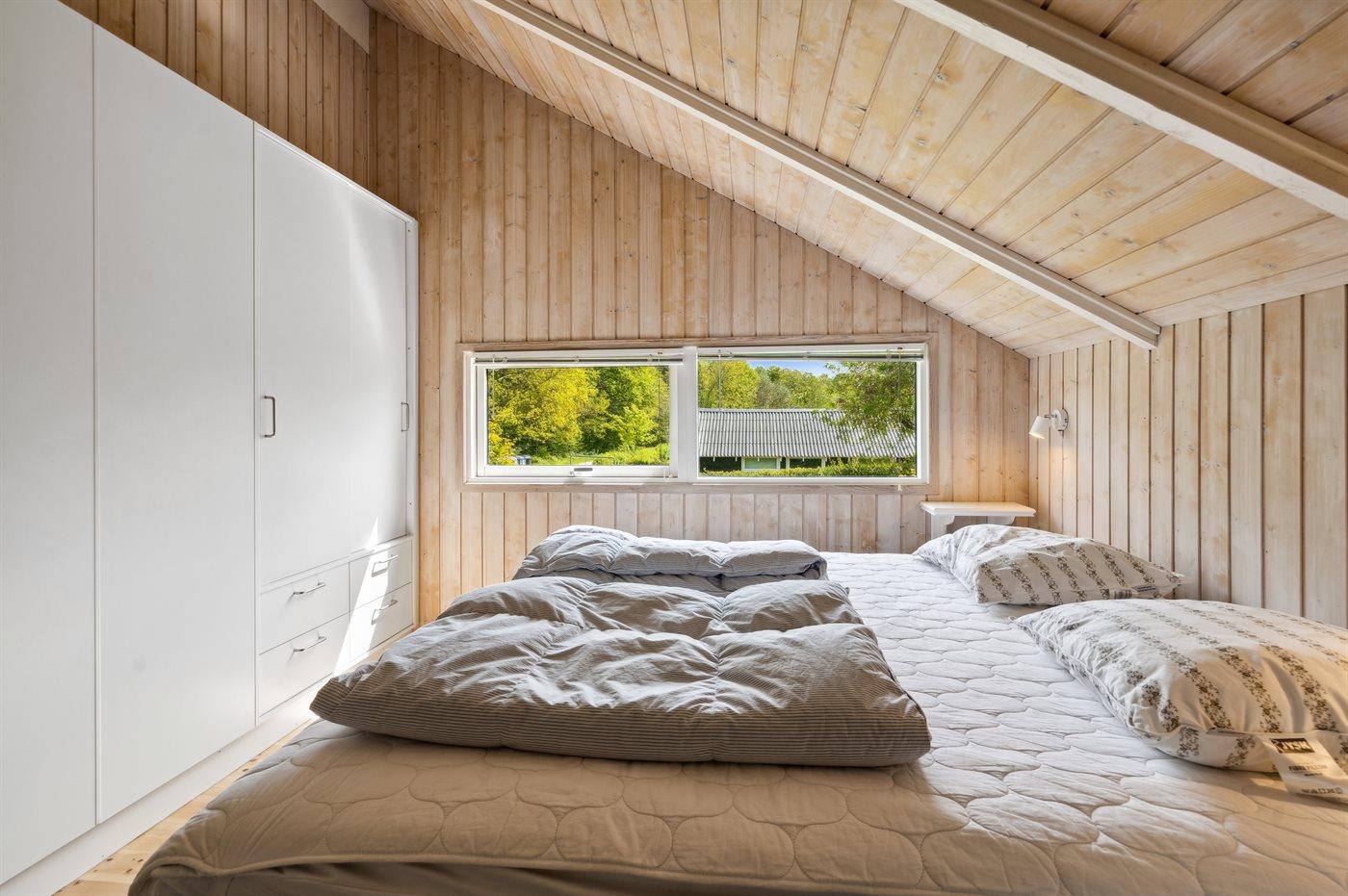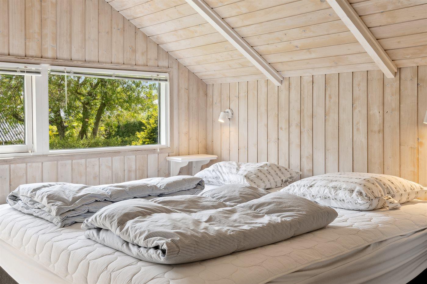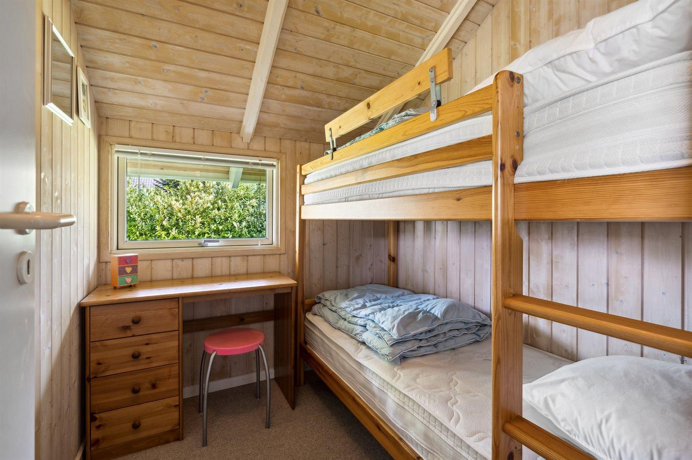 Der er i alt 3 soveværelser. Sovepladserne fordeler sig på: 4 sovepladser i dobbeltsenge. 2 sovepladser i køjeseng. Derudover er der 1 stk. barneseng.