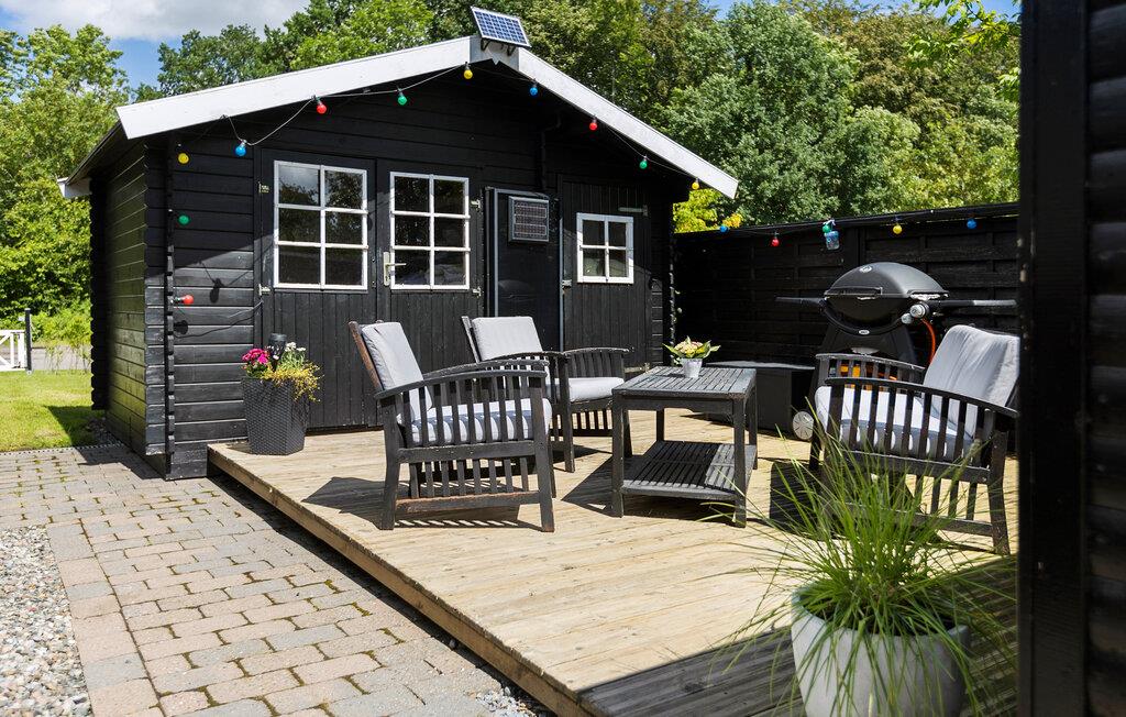 Hyggeligt træhus med terrasse ved Rendbjerg Strand