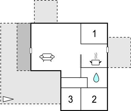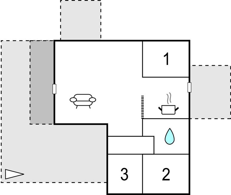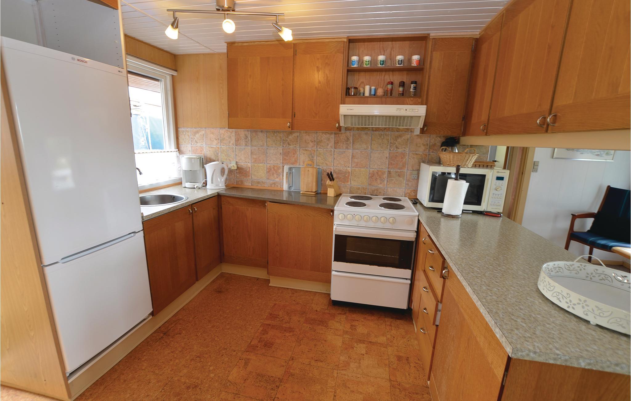 Indretningen af ??Dette sommerhus er enkel, men funktionel og opfylder de basale behov for en afslappende ferie. Inde i huset finder I et køkken-alrum og en tilstødende spise- og opholdsstue. Her er plads til fælles måltider og hyggestunder. Den lyse stue med store vinduespartier byder på masser af siddepladser og lægger op til afslapning. Sluk og nyd varmen fra brændeovnen efter en lang dag i den friske luft.