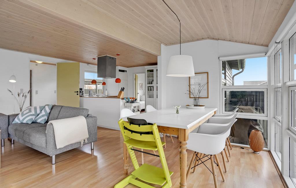 Huset er lyst og moderne indrettet med smagfulde møbler i en enkel, nordisk farveskala. Glæd jer til at nyde alle soltimerne ude på den åbne terrasse, hvor der står en grill klar til sommeraftenerne. Også udendørs tager både hus og have sig flot og velholdt ud, så her får I en skøn base, hvor I kan slappe af mellem jeres oplevelser.