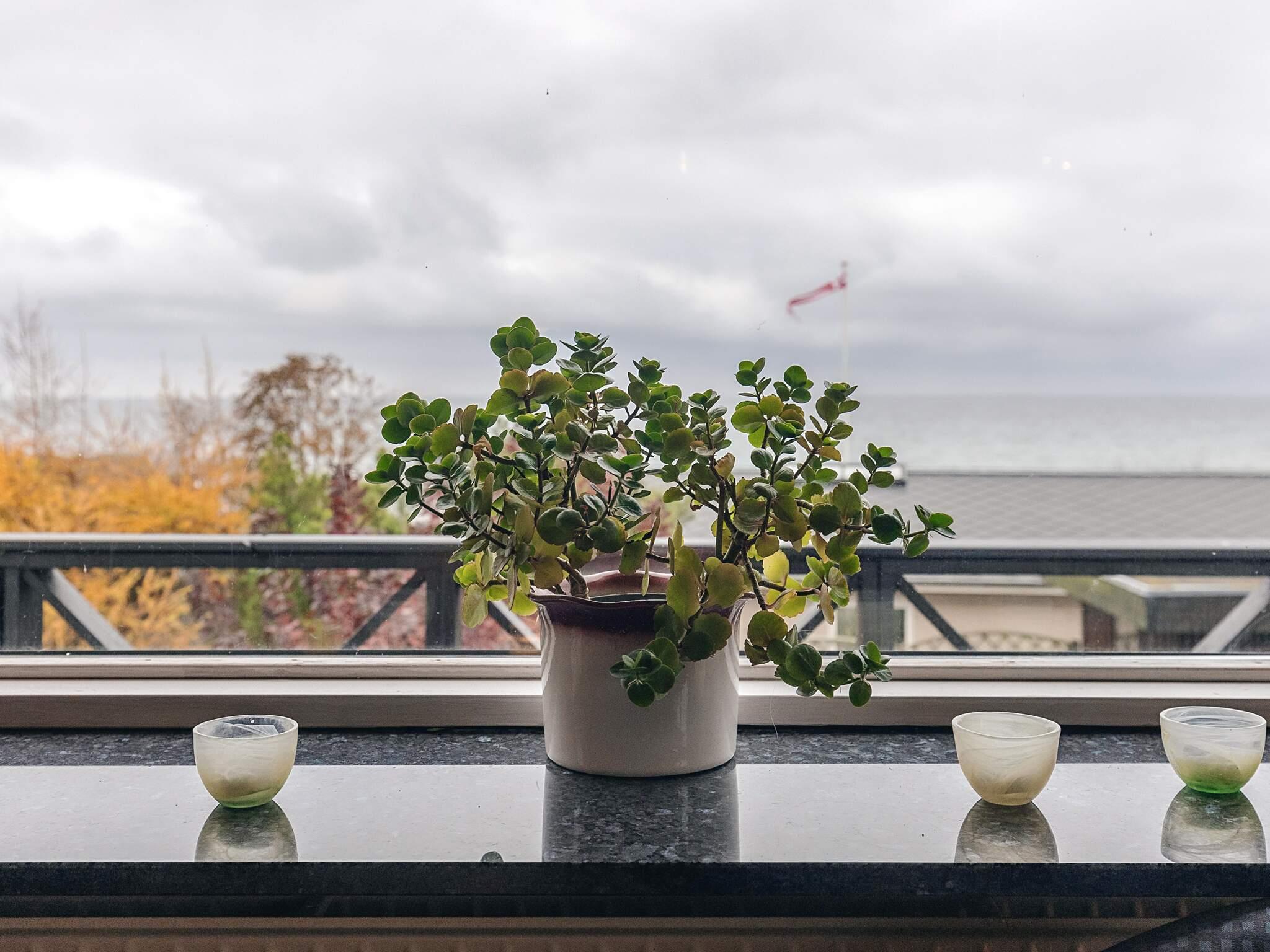 Stuen, soveværelserne, køkkenet og badeværelset har havudsigt.