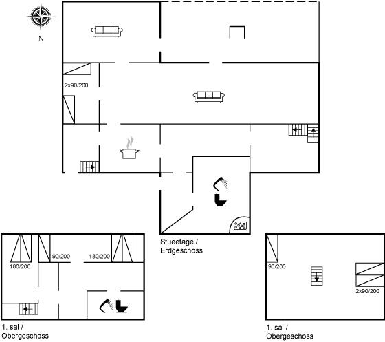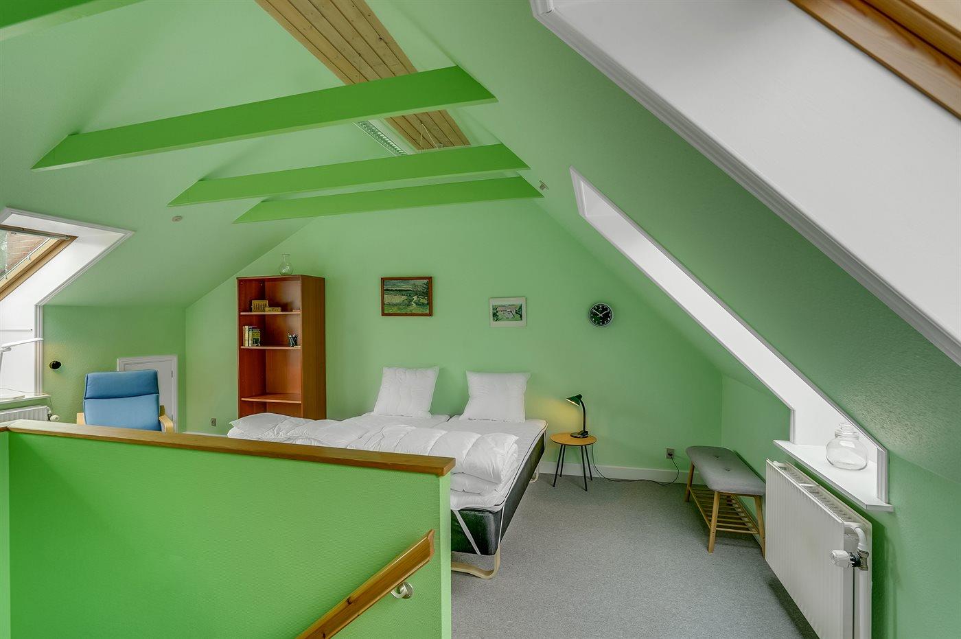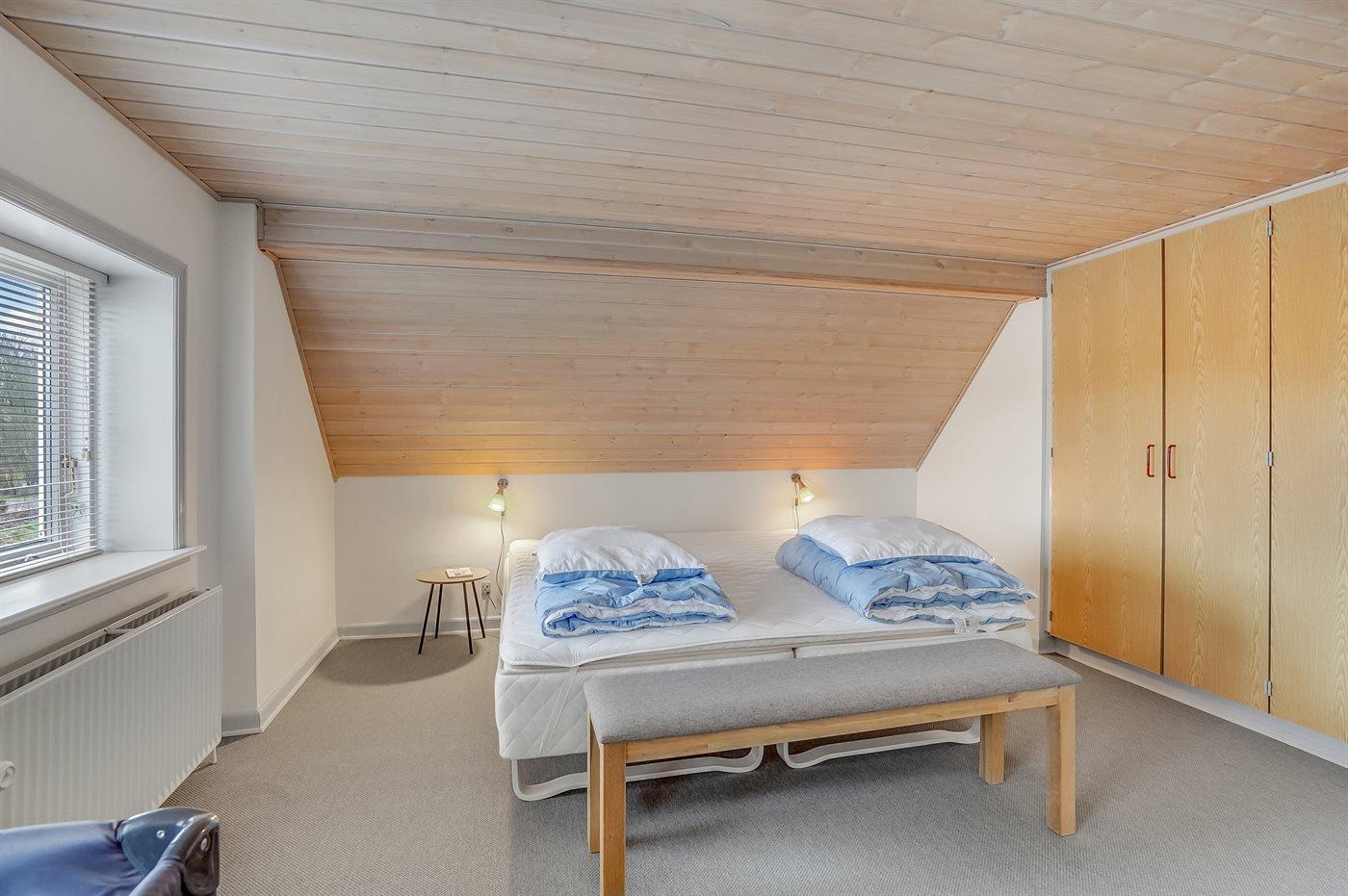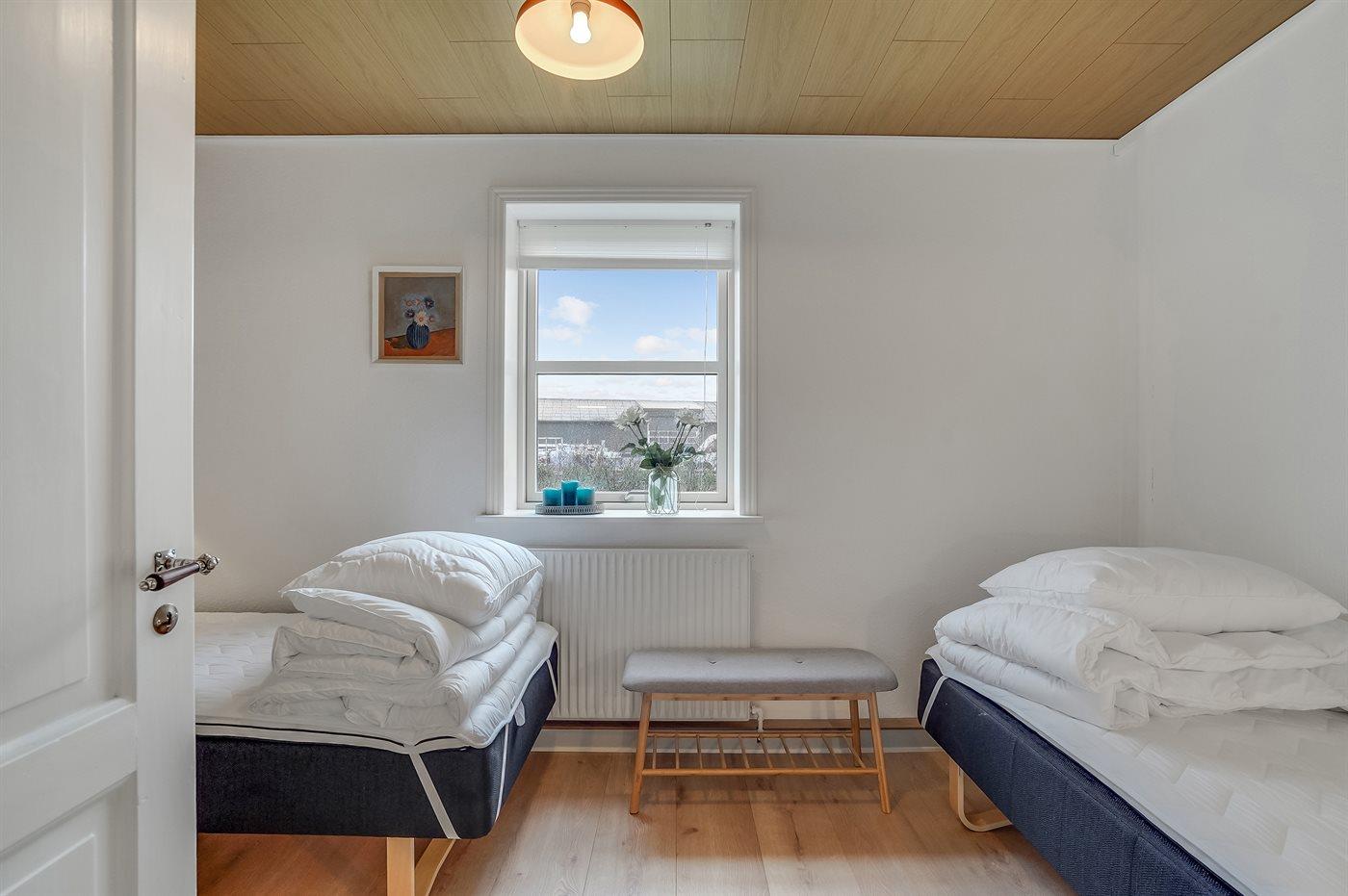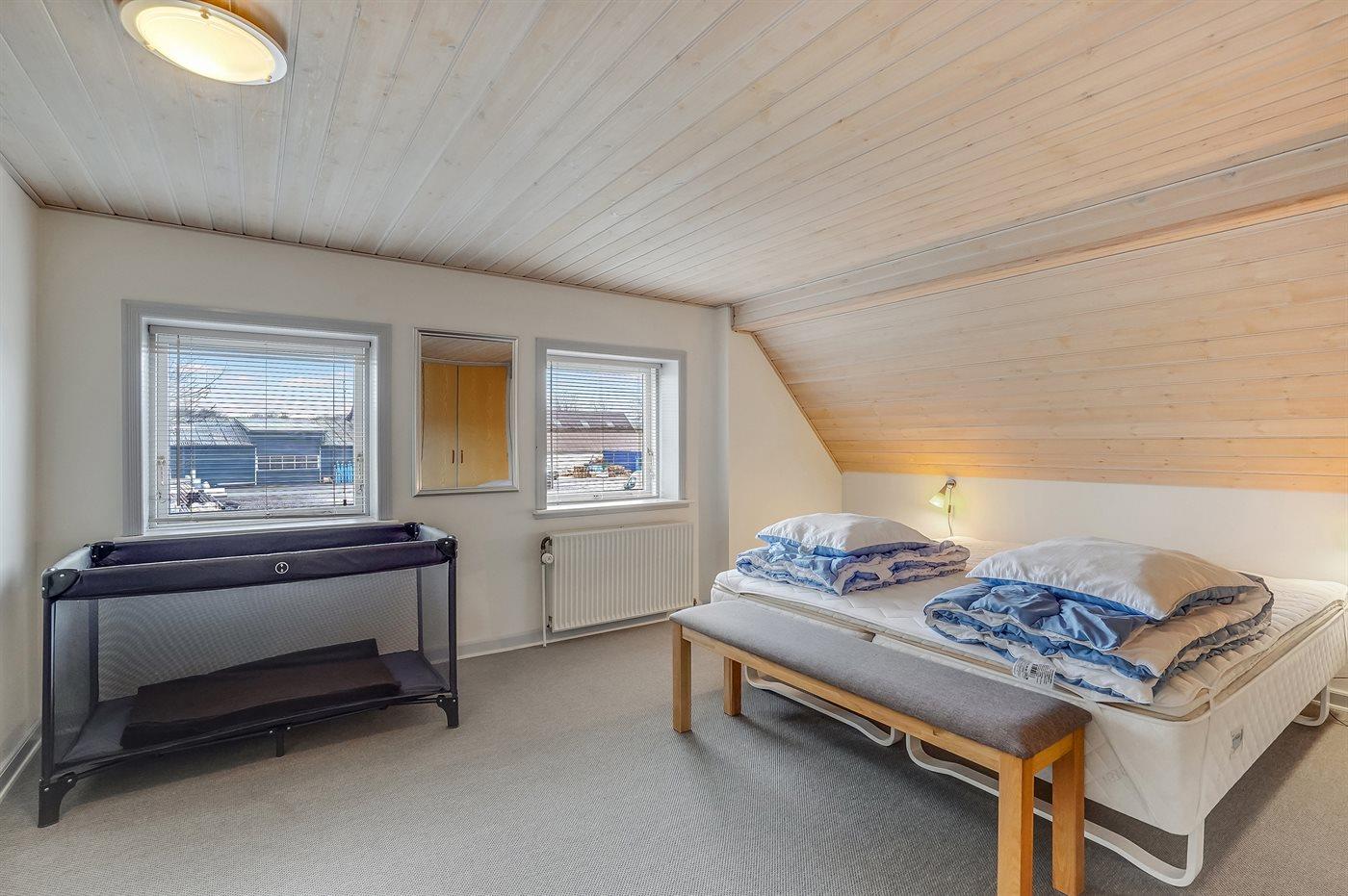 Der er i alt 4 soveværelser. Sovepladserne fordeler sig på: 4 sovepladser i dobbeltsenge. 6 sovepladser i enkeltsenge. Derudover er der 1 stk. barneseng.