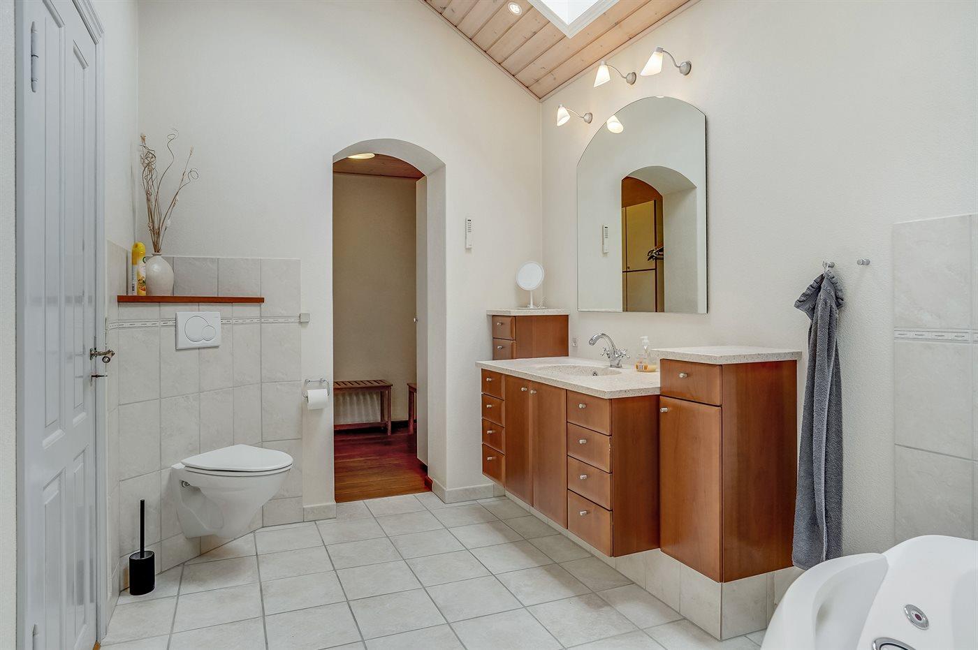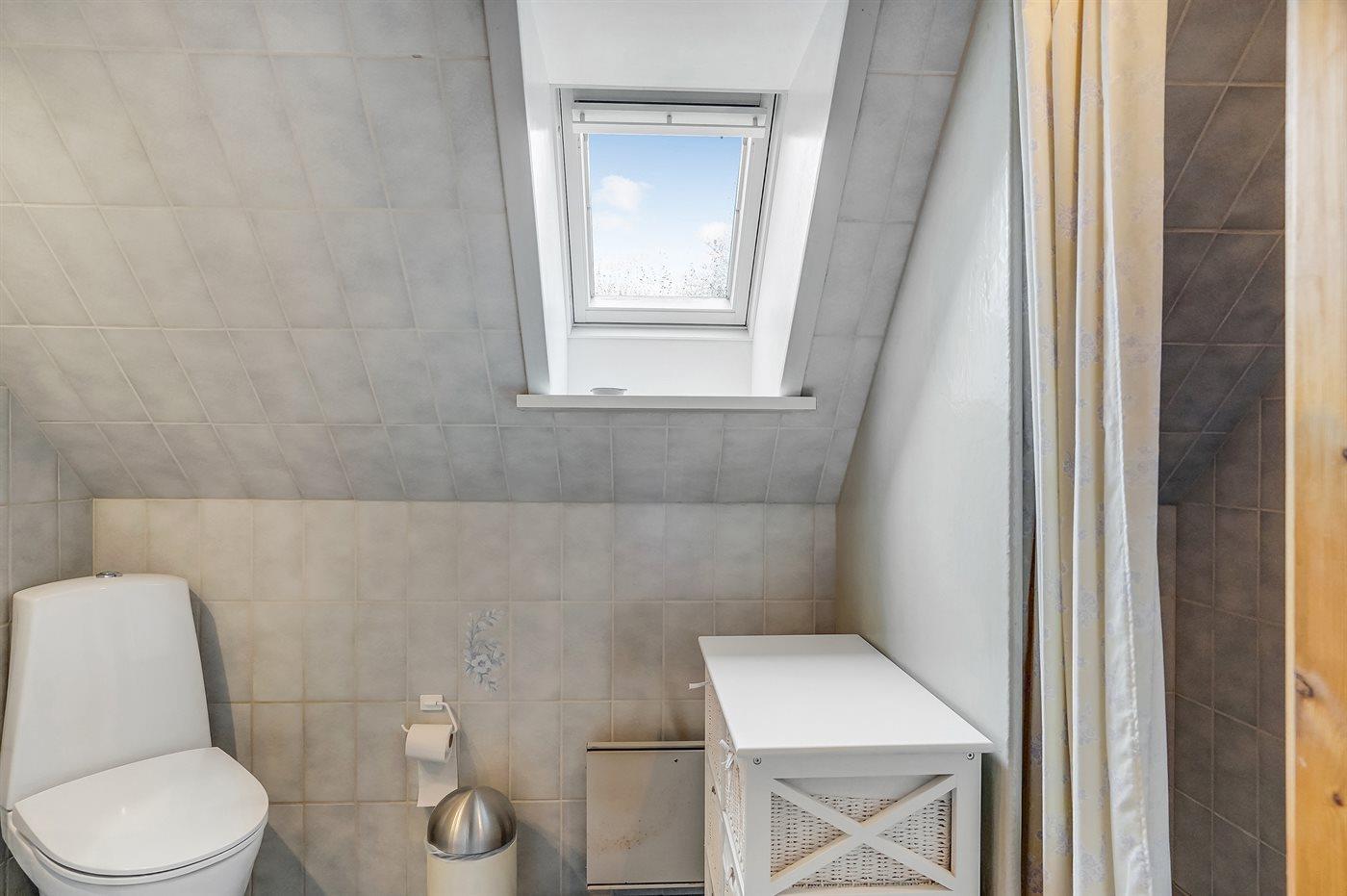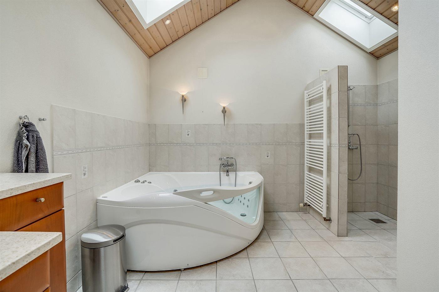 Der er 2 badeværelser med bruseniche og 2 toiletter. Der er gulvvarme på 1 badeværelse.