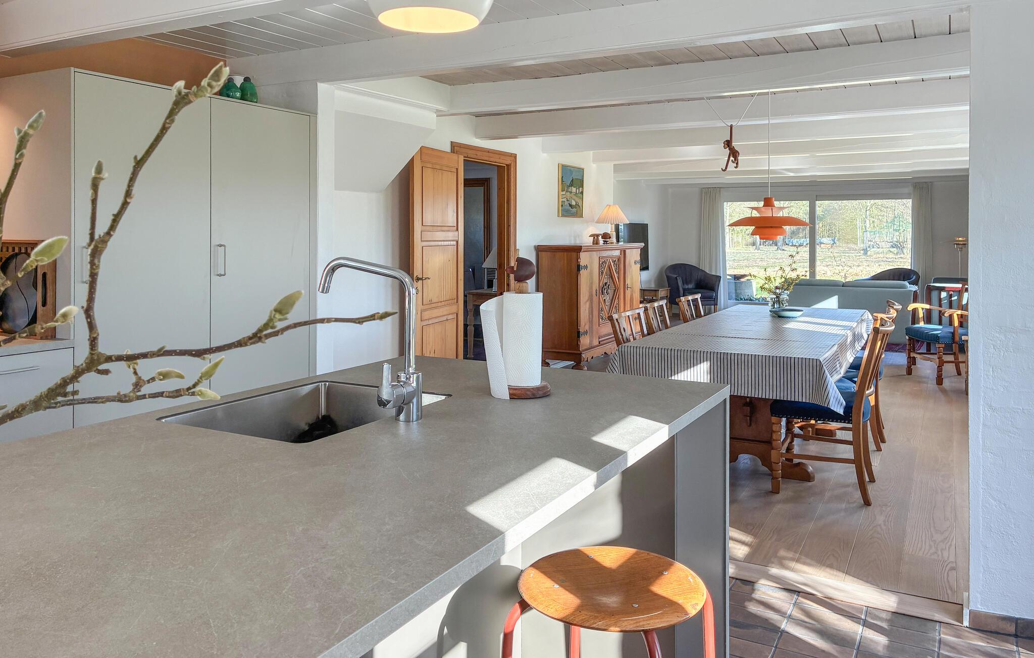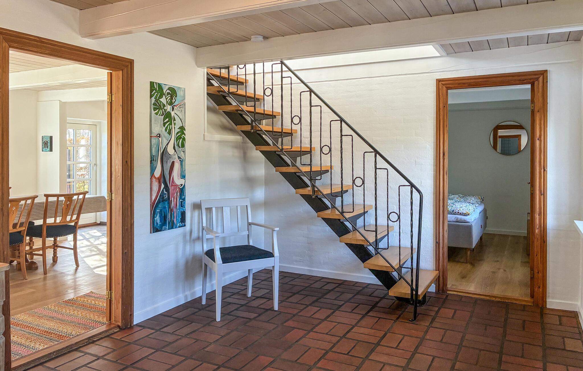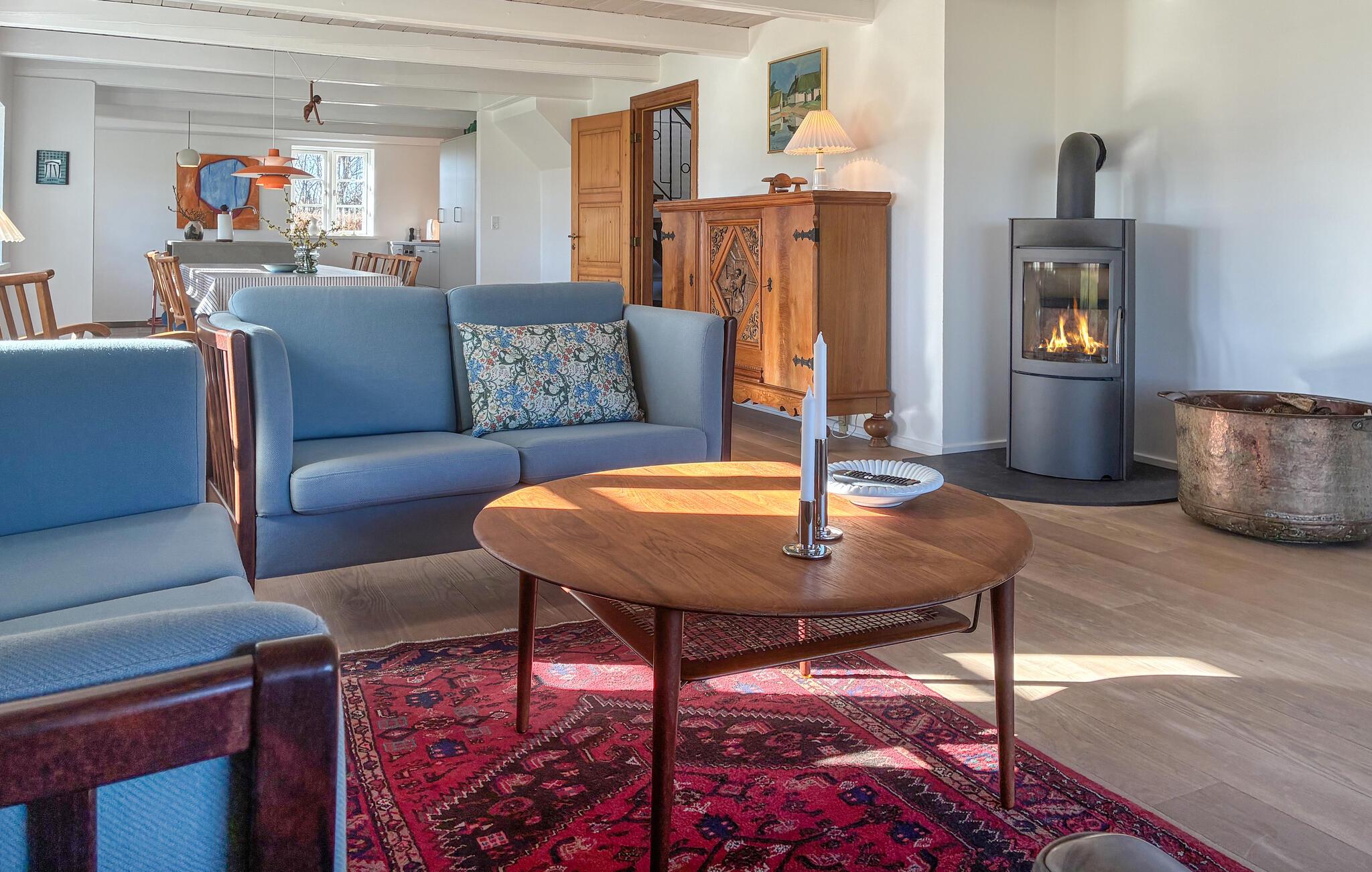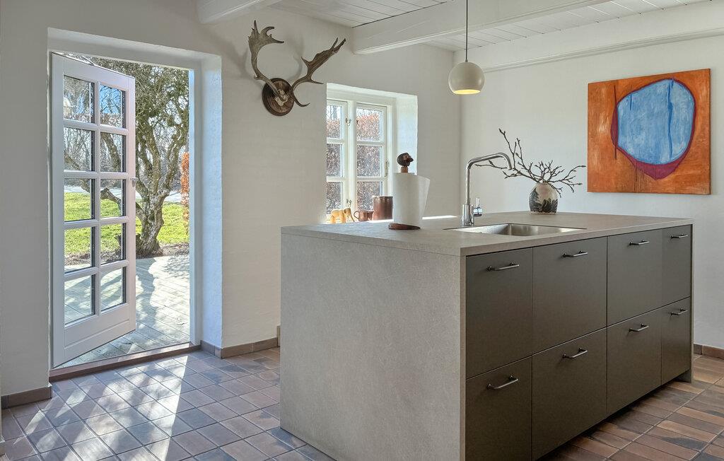 Velkommen til et hus med en lys og varm atmosfære i smukke, landlige rammer. Huset har fine oprindelige detaljer som synlige træbjælker, en brændeovn og småsprossede vinduer. Her er der hyggeligt og rart både inde og ude, så feriestemningen kommer her af sig selv. Fyld dagene med kaffepauser, gode bøger og madlavningsseancer i køkkenet - I sætter selv tempoet for dagen.